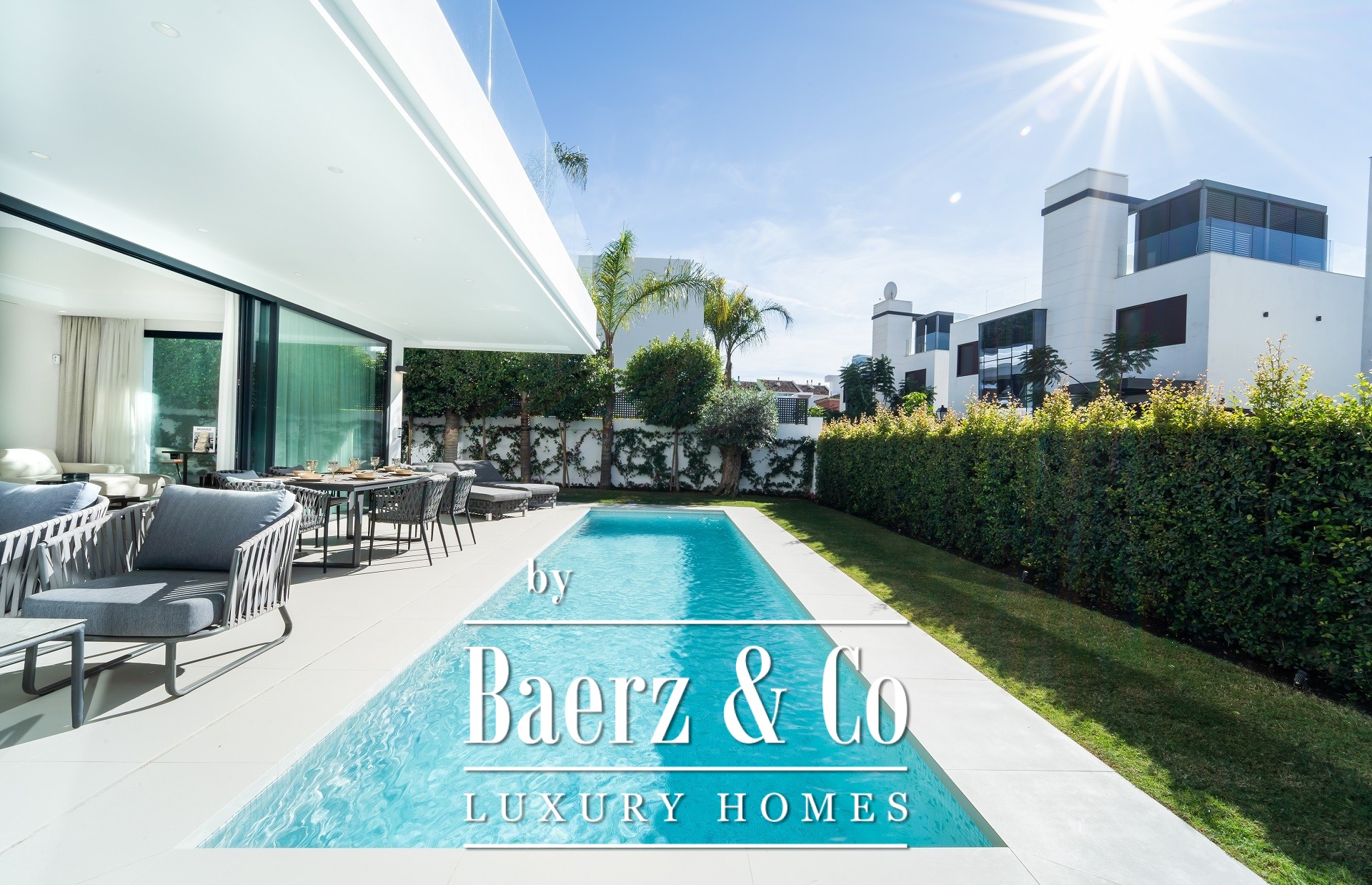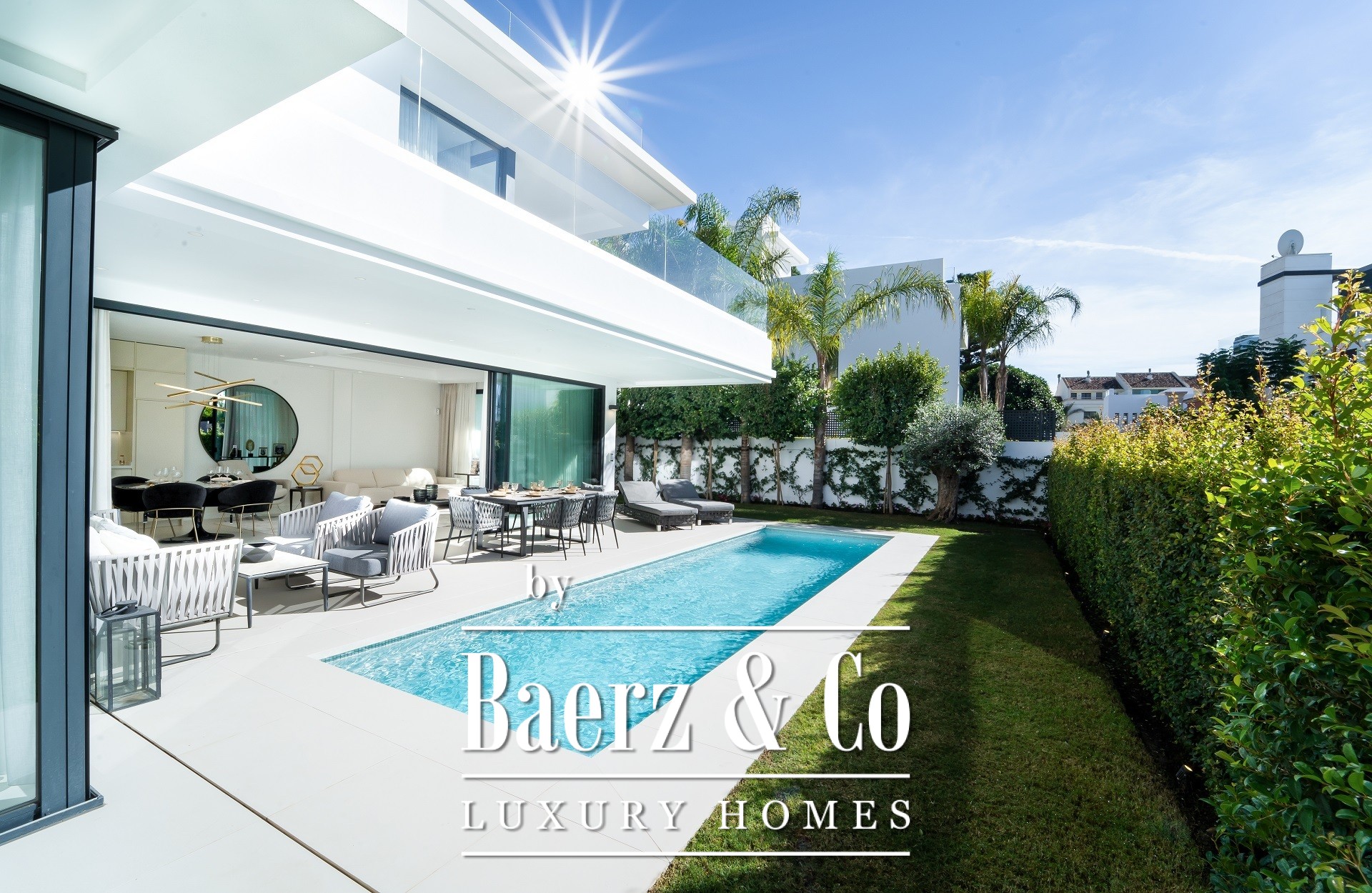 A private swimming pool will bring joy to your whole family throughout long Spanish summer. The villas is in the Golden Mile located close to the beach, three minutes walk away from Puerto Banus and within a walking distance from the supermarkets. The villas offer beautiful sea views and are the perfect choice both as a holiday residence and as a family home.