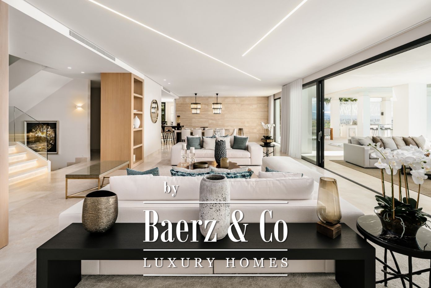 Surrounded by beautiful nature, superb golf courses, and similar luxury properties of the New Golden Mile and Benahavis area, the house enjoys a privileged location. Situated in the Valley of El Paraiso, with the iconic La Concha Mountain backdrop, Sierra Bermeja mountain range to the north, and the Mediterranean Sea to the south, the quiet area of El Paraiso Alto, is a paradise indeed! Its stunning vistas across the scenic Marbella coastline, idyllic Andalusian landscape with an undulating green carpet of golf courses and sparkling sea towards Africa add a new dimension to lounging. You will find family-oriented activities in this established neighbourhood known for its beauty of nature, security and high quality of life. The residence is close to fabulous Puerto Banus (just minutes’ drive), the famous gourmet-village Benahavis, Estepona resort, San Pedro, Golf Valley of Nueva Andalucía and Marbella Center.