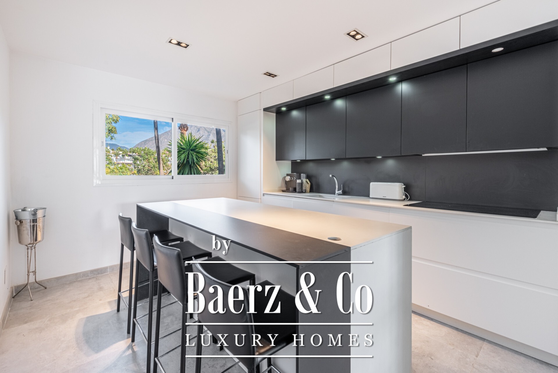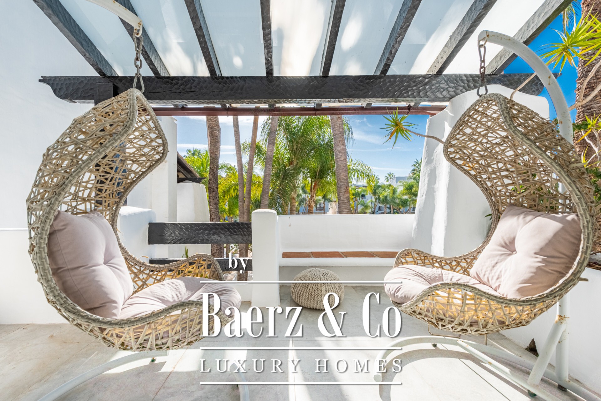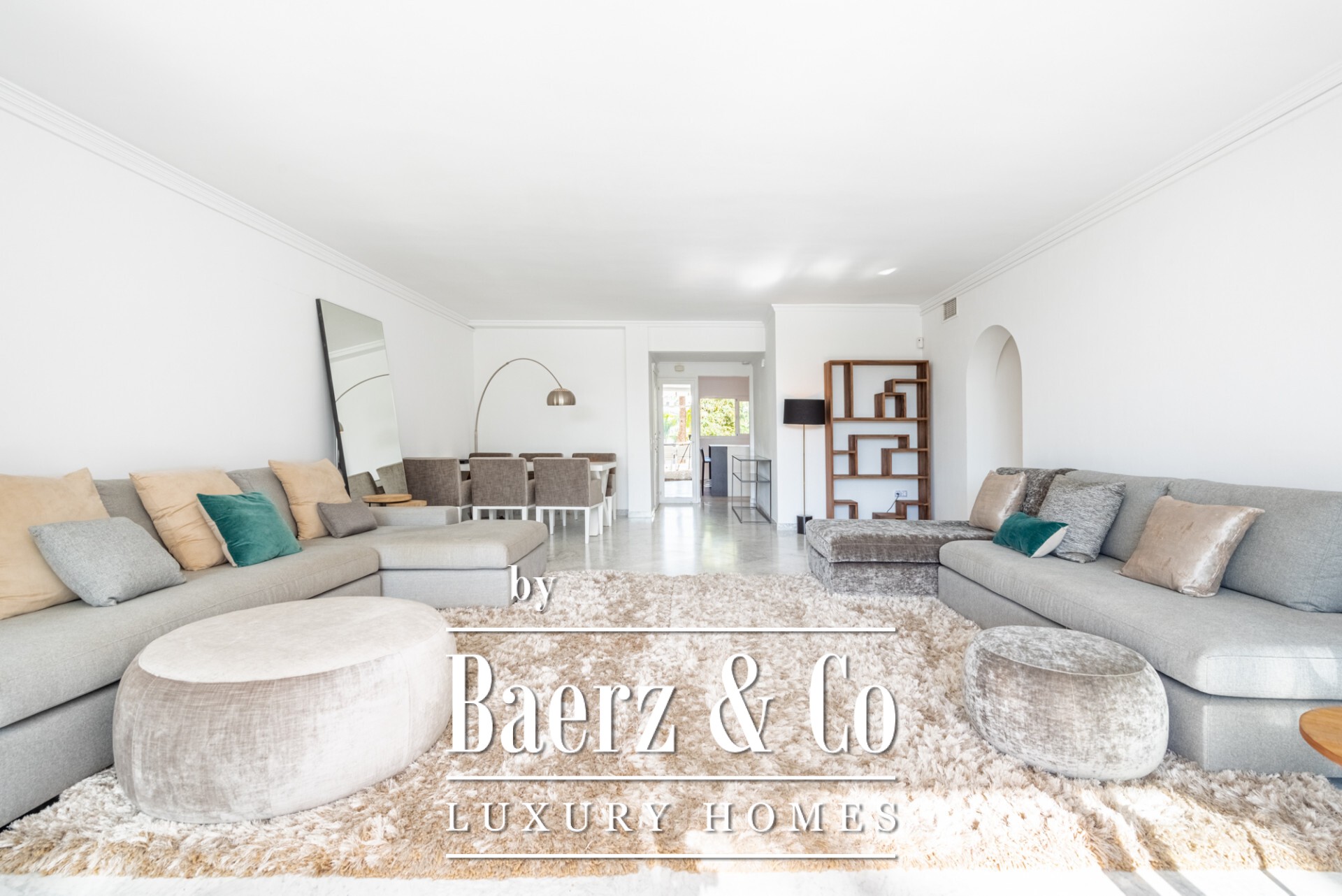 Beachside apartment in the sought-after beachfront complex Jardín Persa, in Marina Puente Romano at the Puente Romano Beach Resort and Spa, with all of its amenities at hand. The apartment has been partly reformed in 2016, is offered fully furnished and features: modern-styled kitchen on the Tennis club side, with fantastic panoramic views towards the tennis club and the La Concha mountain, 3 bedrooms and 2 bathrooms, and two terraces