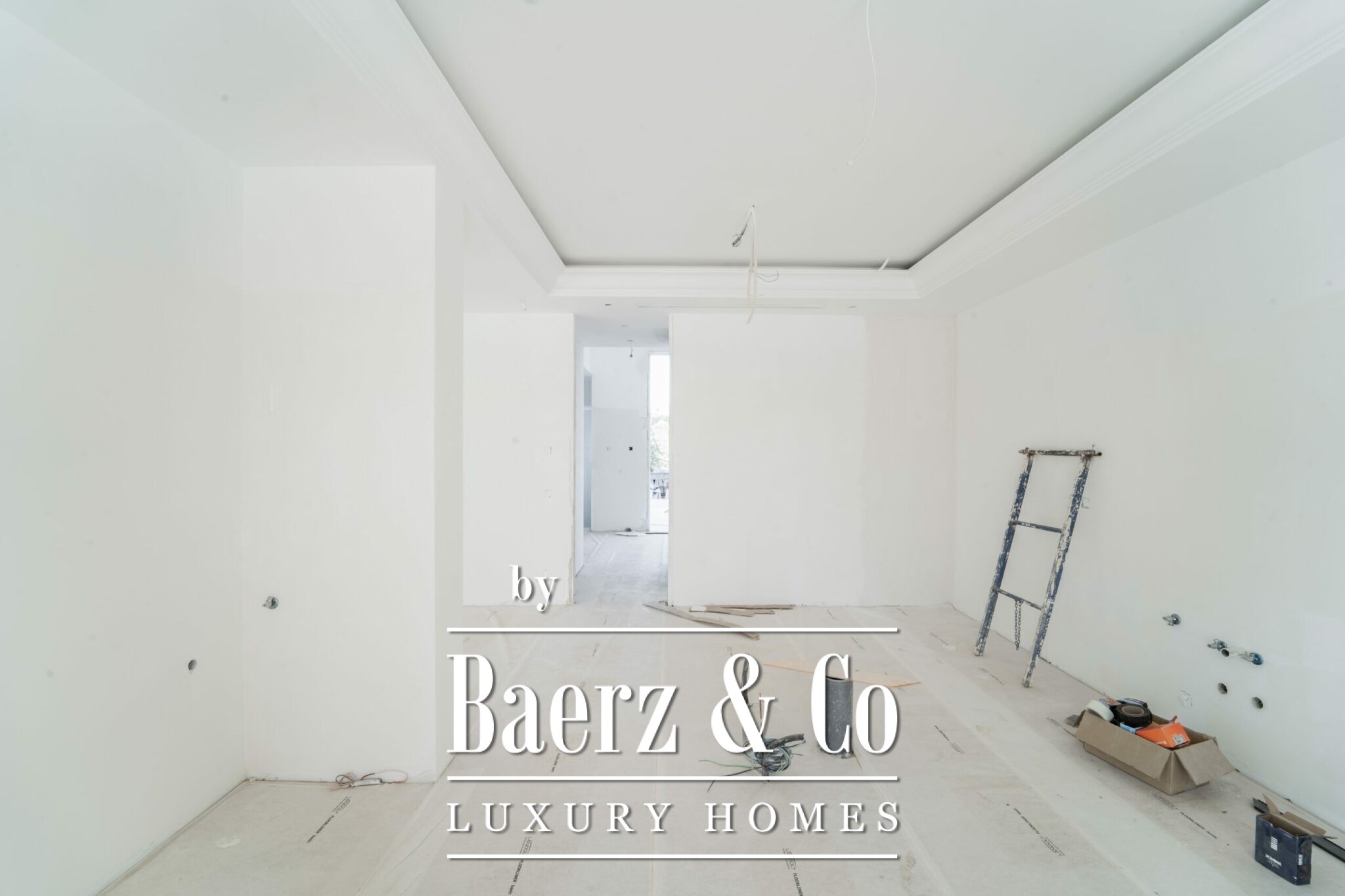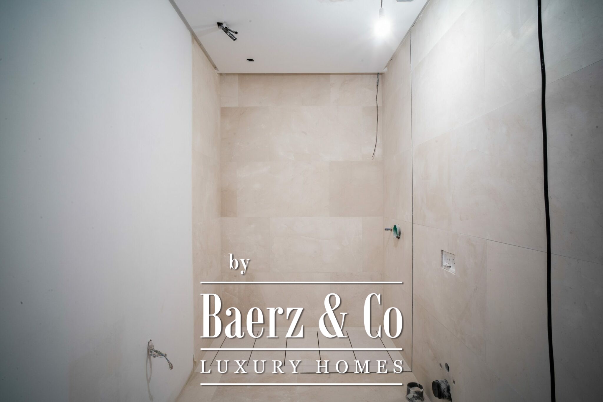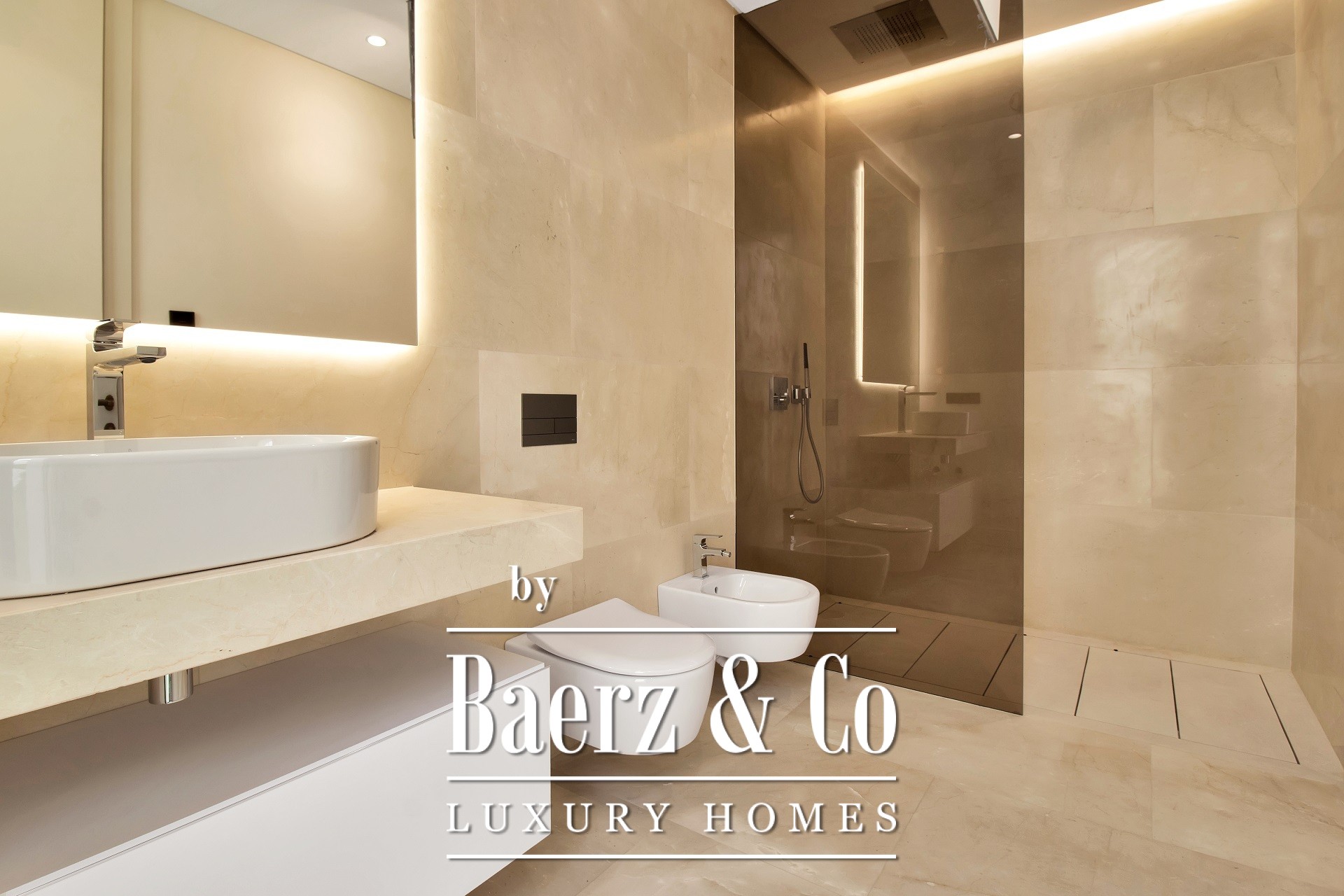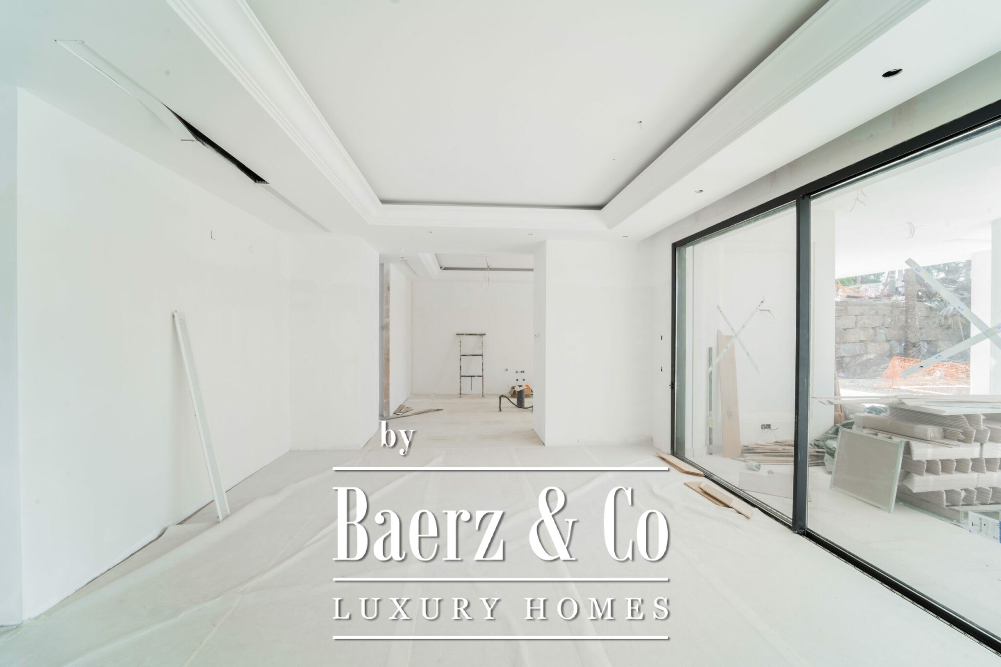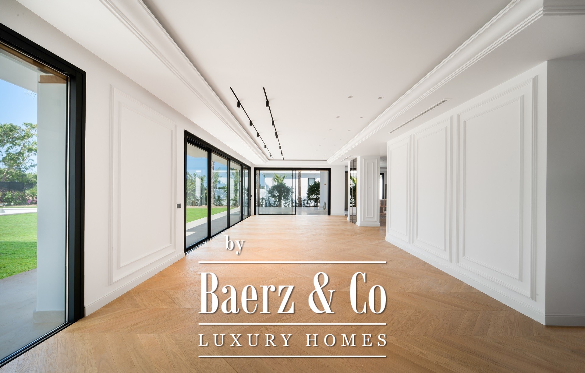The villa is well proportioned in terms of layout, spread over 3 levels and a solarium to create an exquisitely tasteful 5-bedroom residence with multiple entertaining areas. Access to the villa is impressive thanks to its double height ceiling and large contemporary pillars. Entering the villa, the main floor has a large space divided into several areas, one of them with a large fireplace, dining area and living area. The fully equipped kitchen with outstanding appliances has a custom made island. The entire floor has access to the terraces, garden and pool, with areas to relax and have fun.