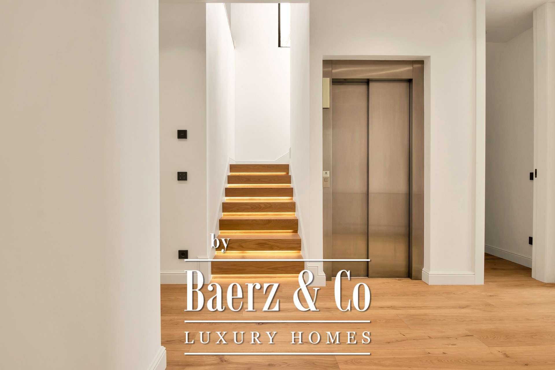 The attractive basement has parking space for 3 cars, a laundry area and a staff apartment with a dirty kitchen and direct elevator access to the kitchen on the main floor. In addition, on this floor there are 2 more bedrooms with natural light, perfect for guests.