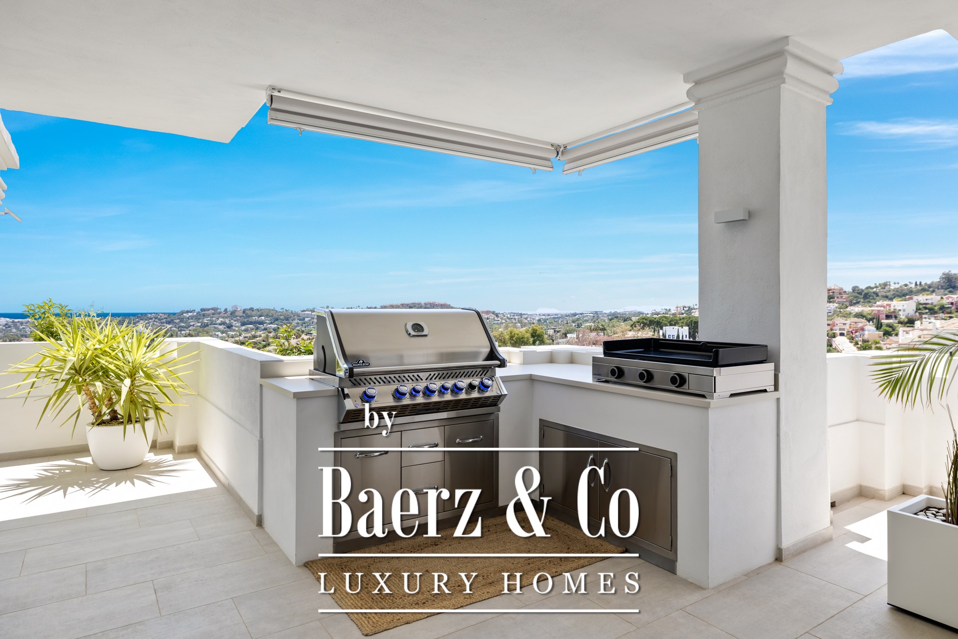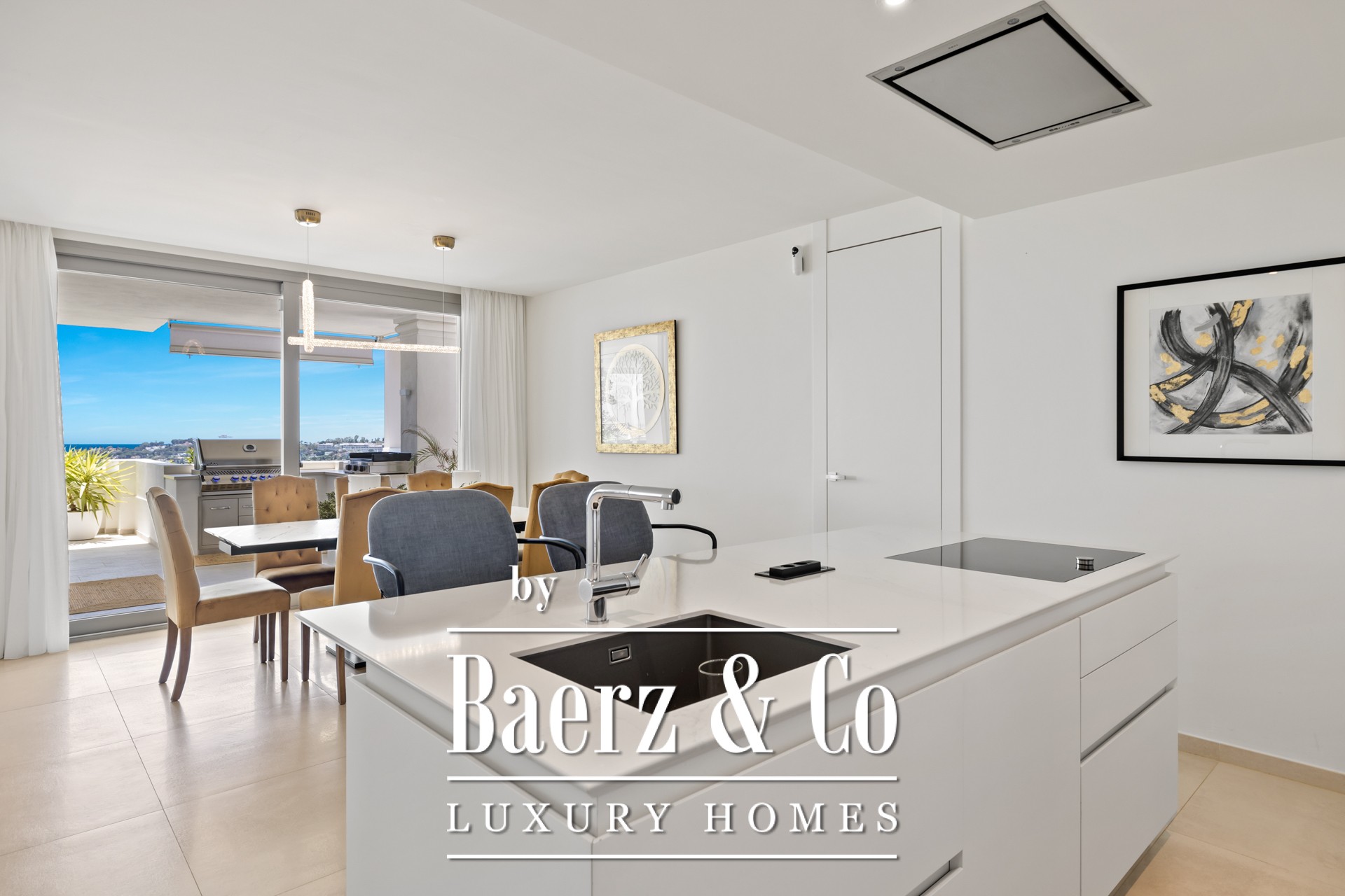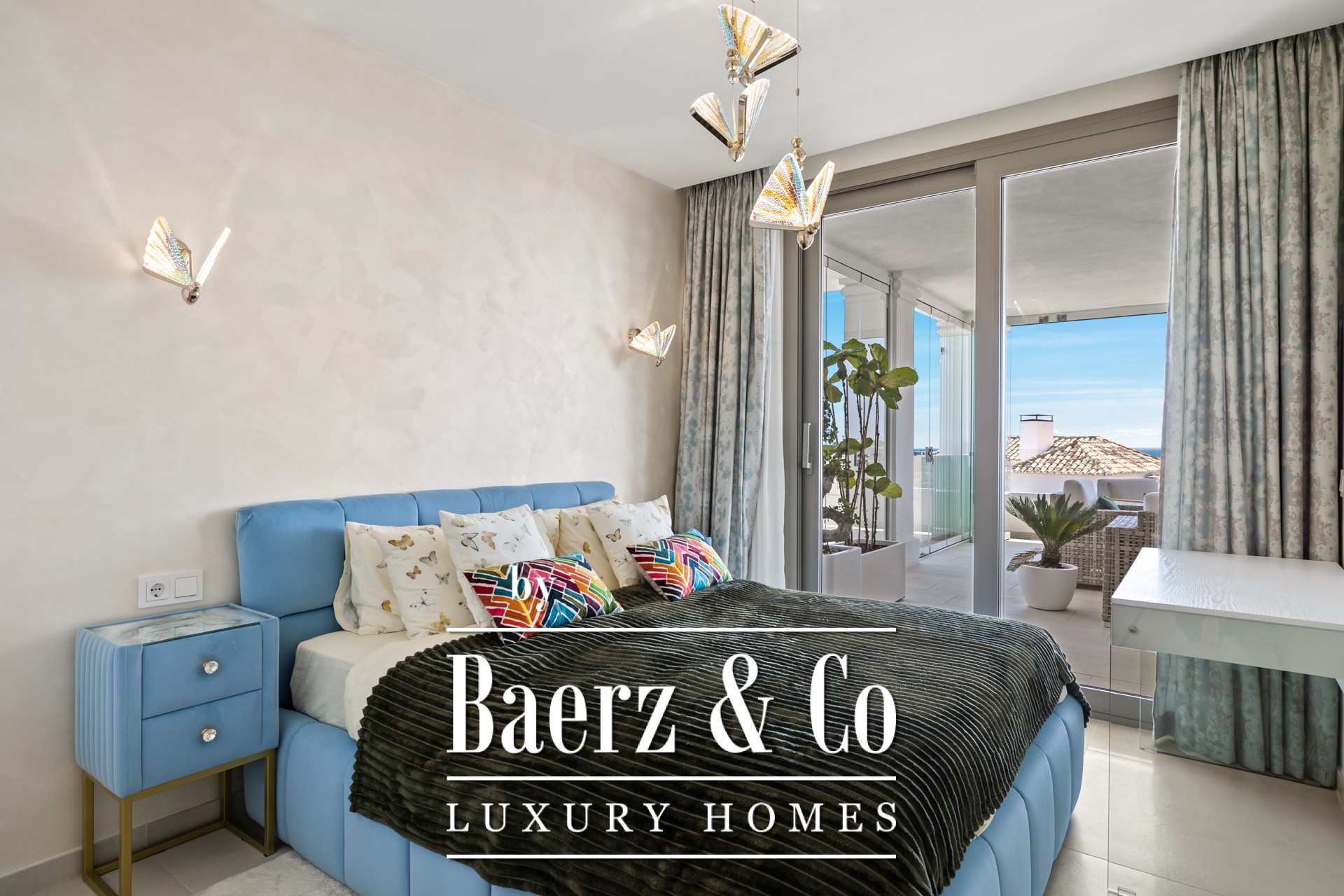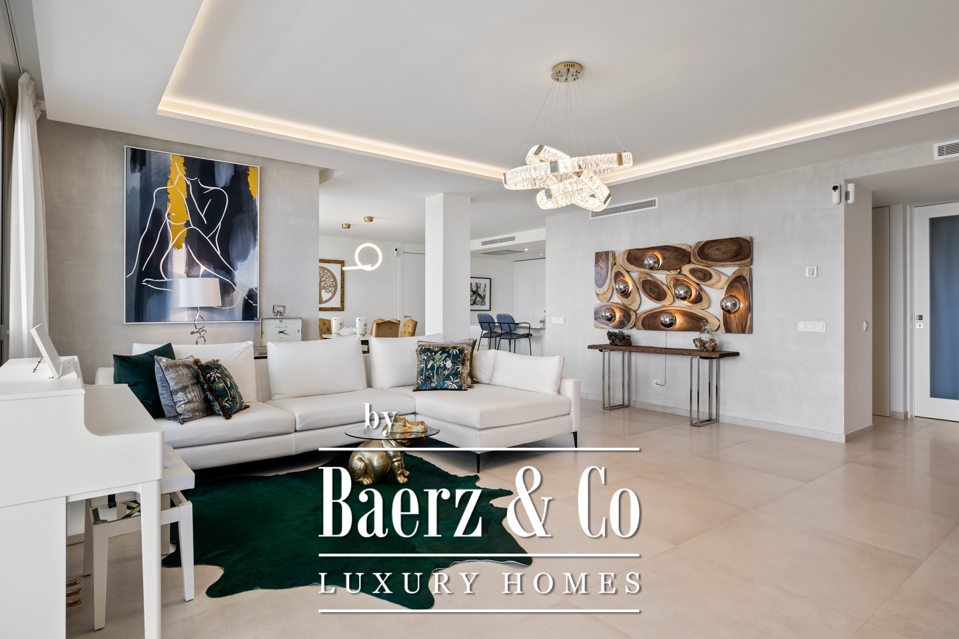 A truly unique stunning 7-bed ground floor apartment located in urb. of Nueva Andalucia. Built to the highest standards. South facing with spectacular views to the coast and Mediterranean. Only a short drive to all amenities, the beach, Puerto Banus and Marbella centre.