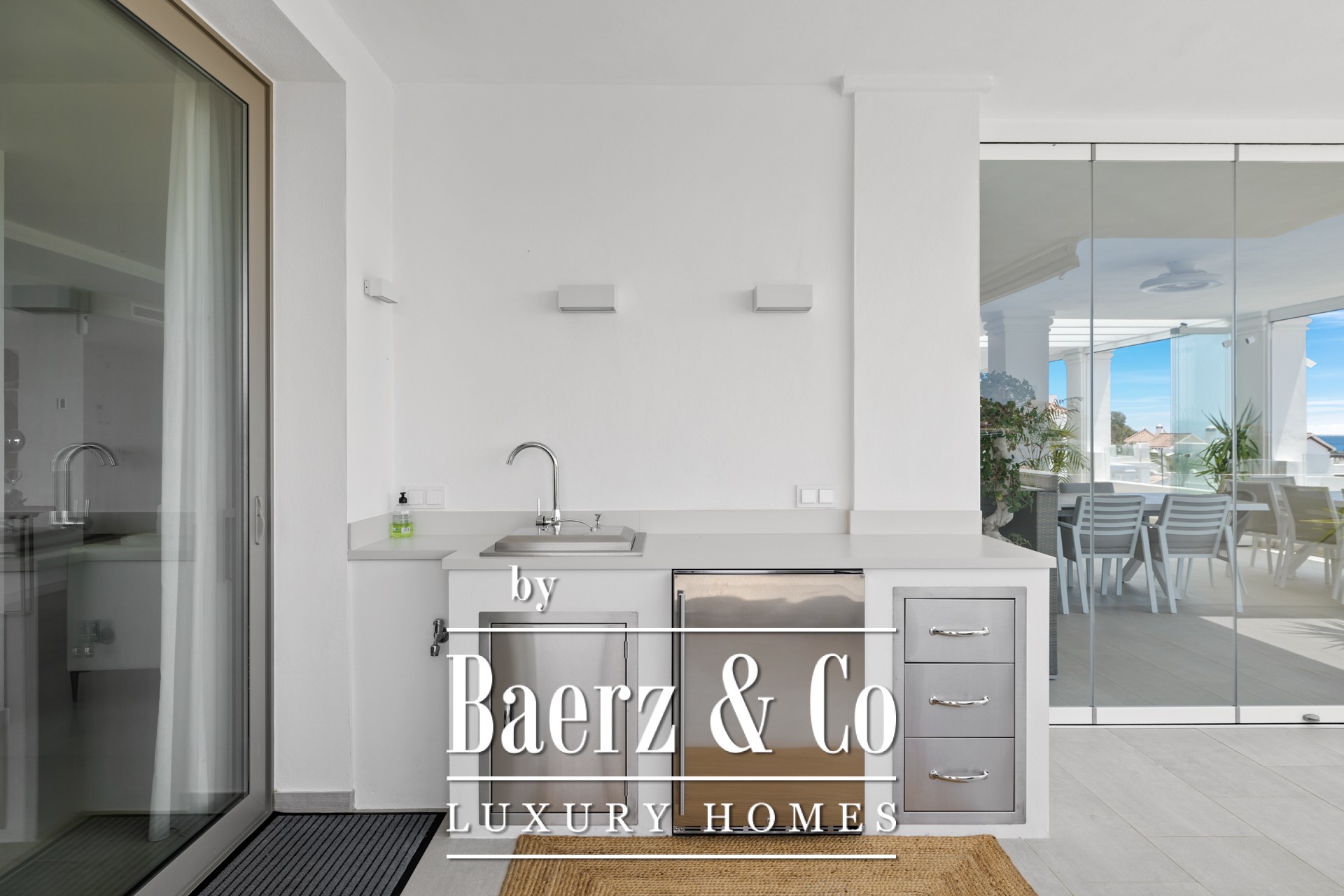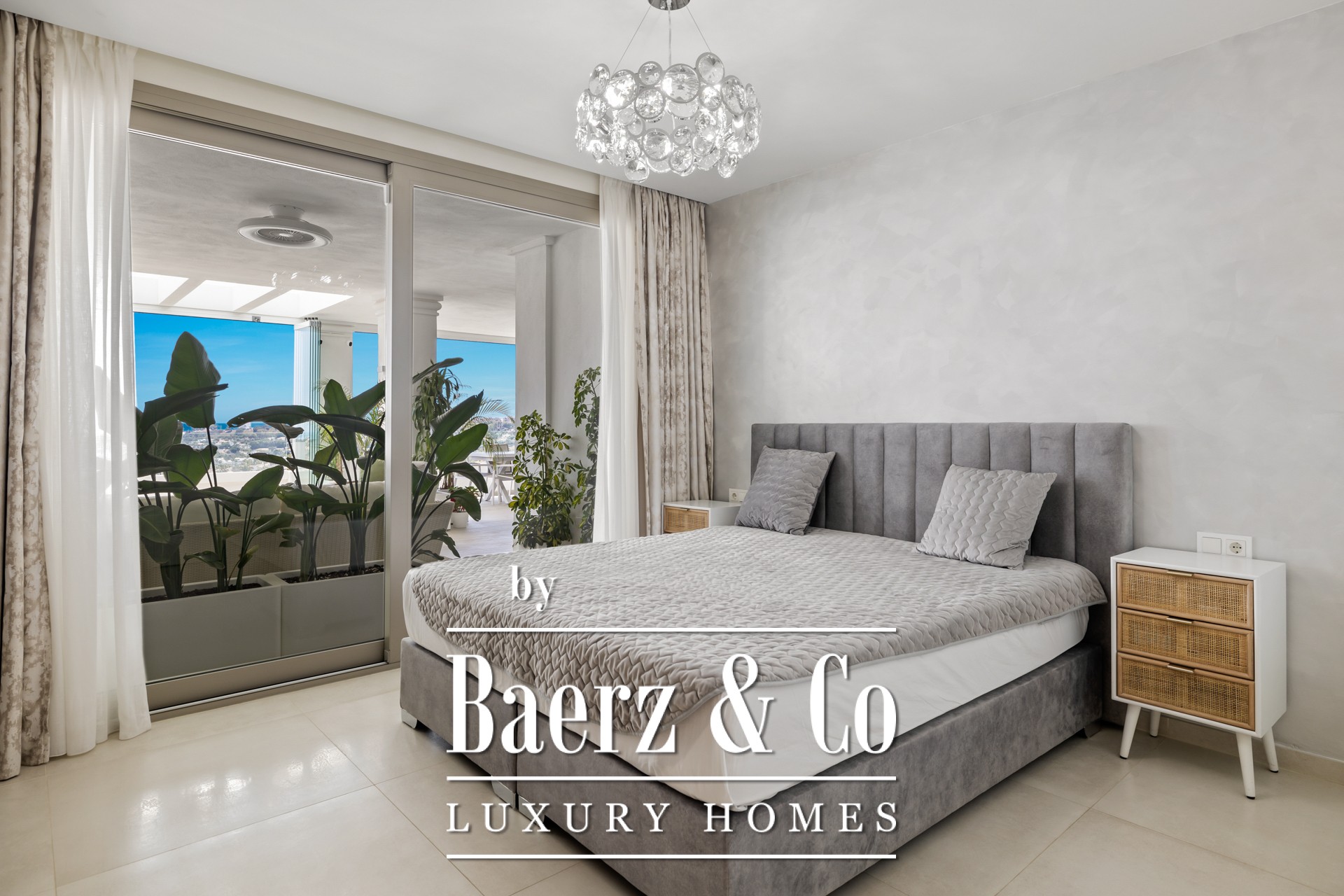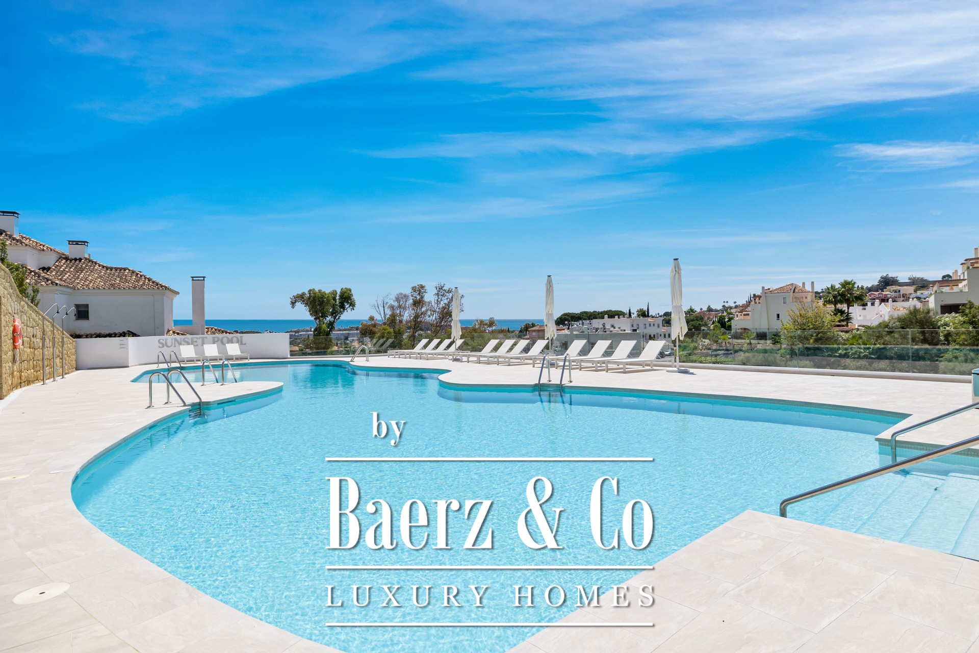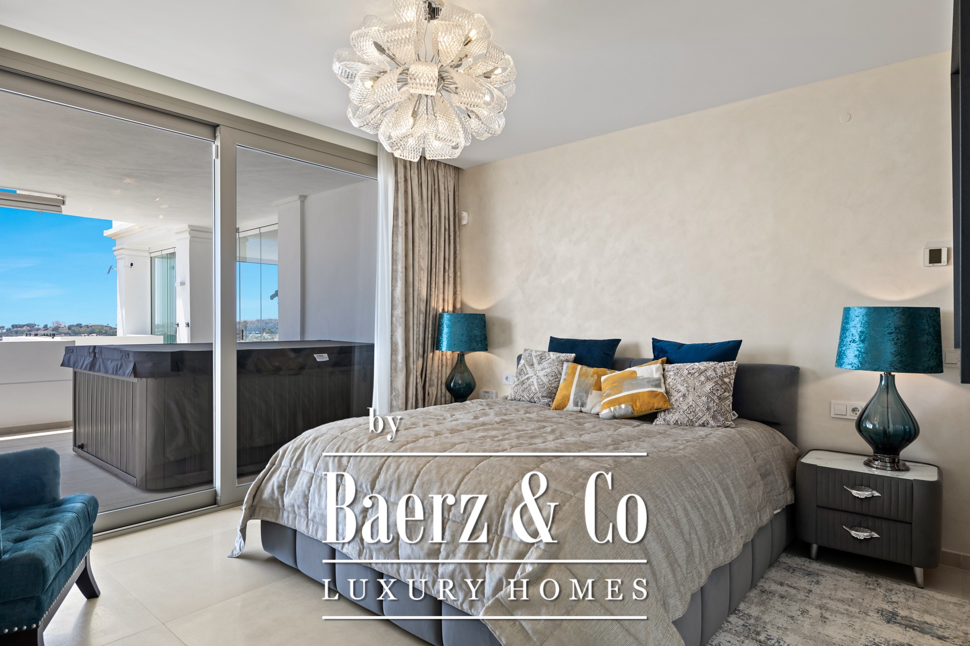 A truly unique stunning 7-bed ground floor apartment located in urb. of Nueva Andalucia. Built to the highest standards. South facing with spectacular views to the coast and Mediterranean. Only a short drive to all amenities, the beach, Puerto Banus and Marbella centre.