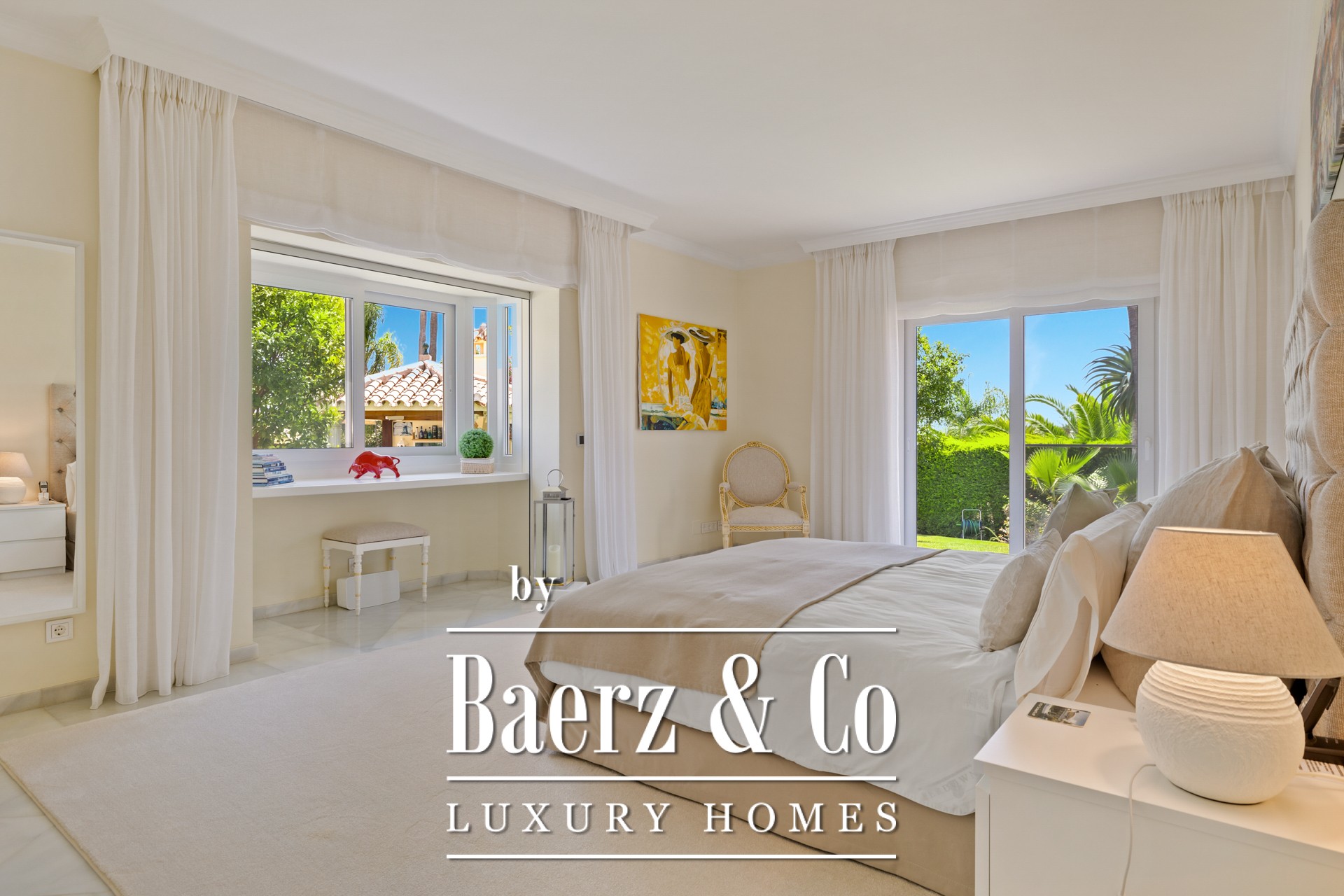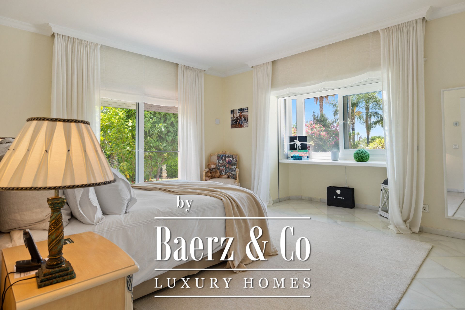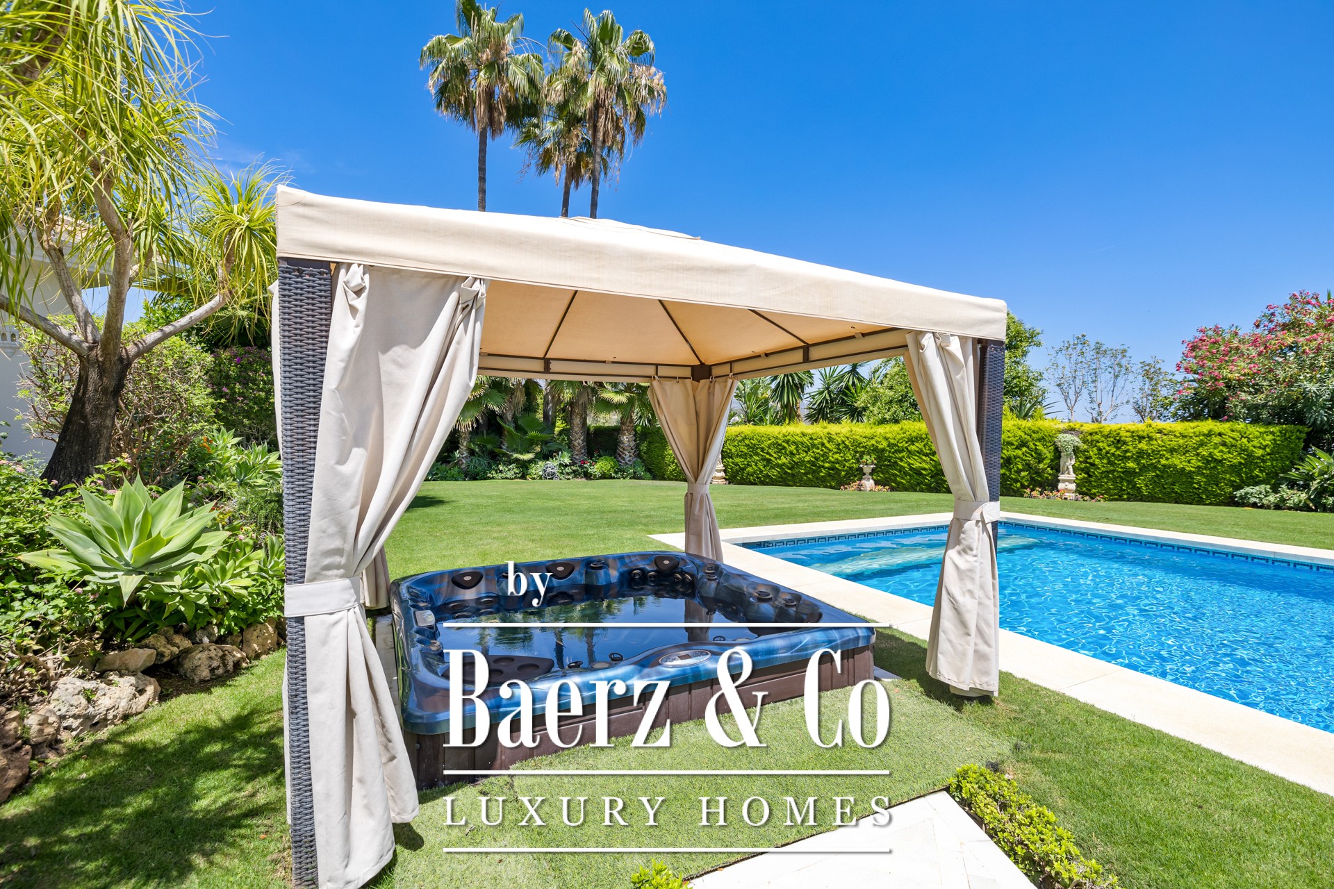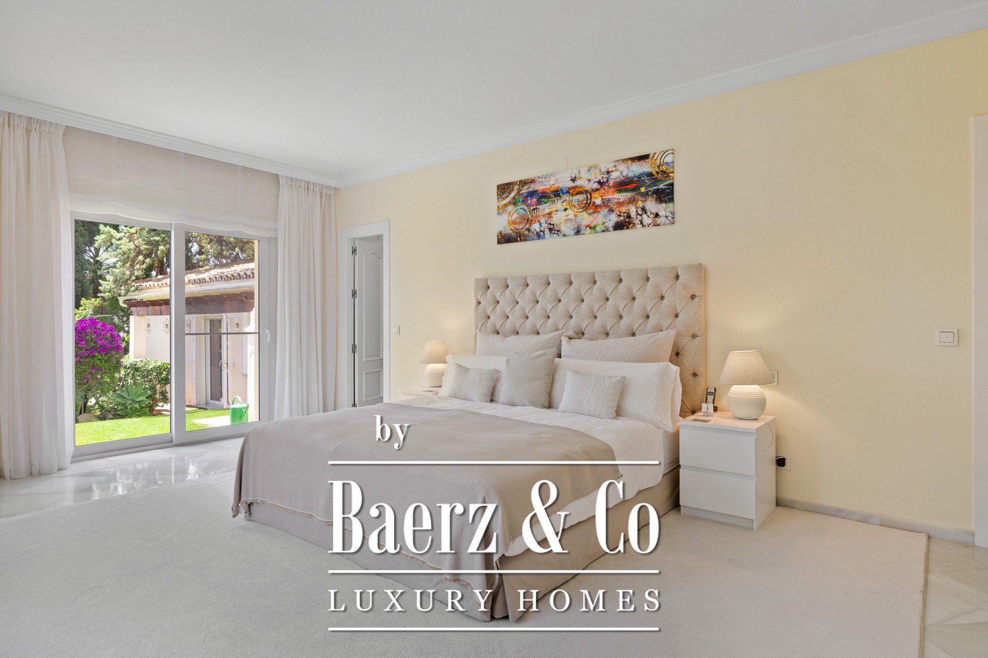 A great, recently renovated villa with a perfect fusion between contemporary design and Andalusian style. Located in the sought after residential area of La Cerquilla. South facing with views to La Concha. Private and quiet. Nearby all amenities and the golf clubs of Las Brisas and Los Naranjos.