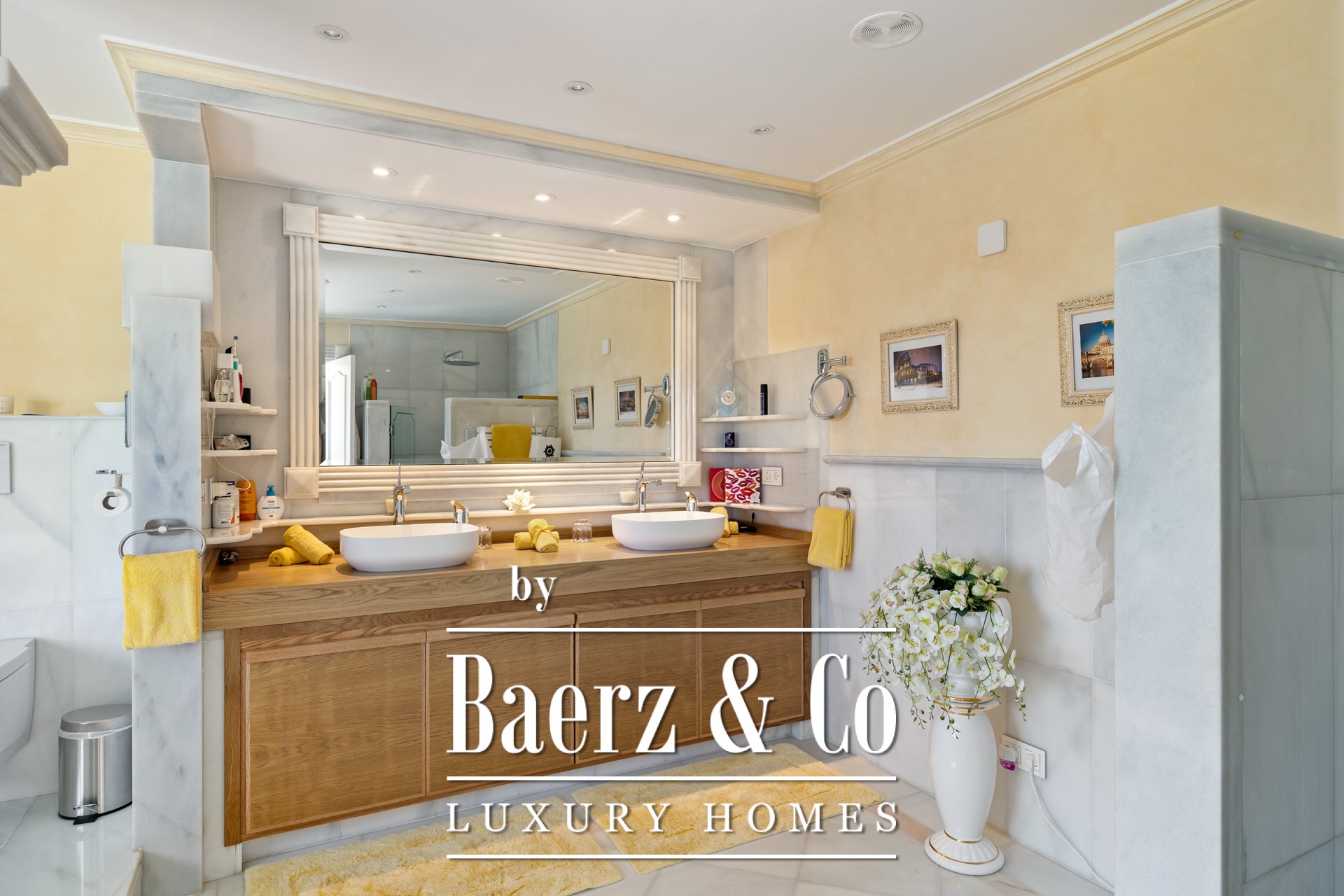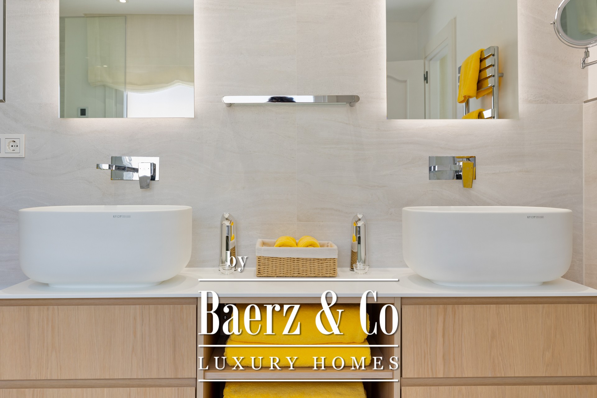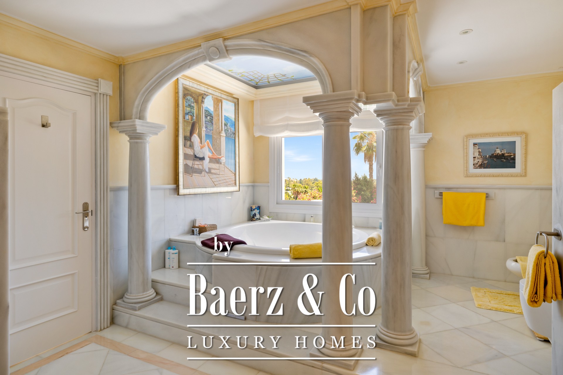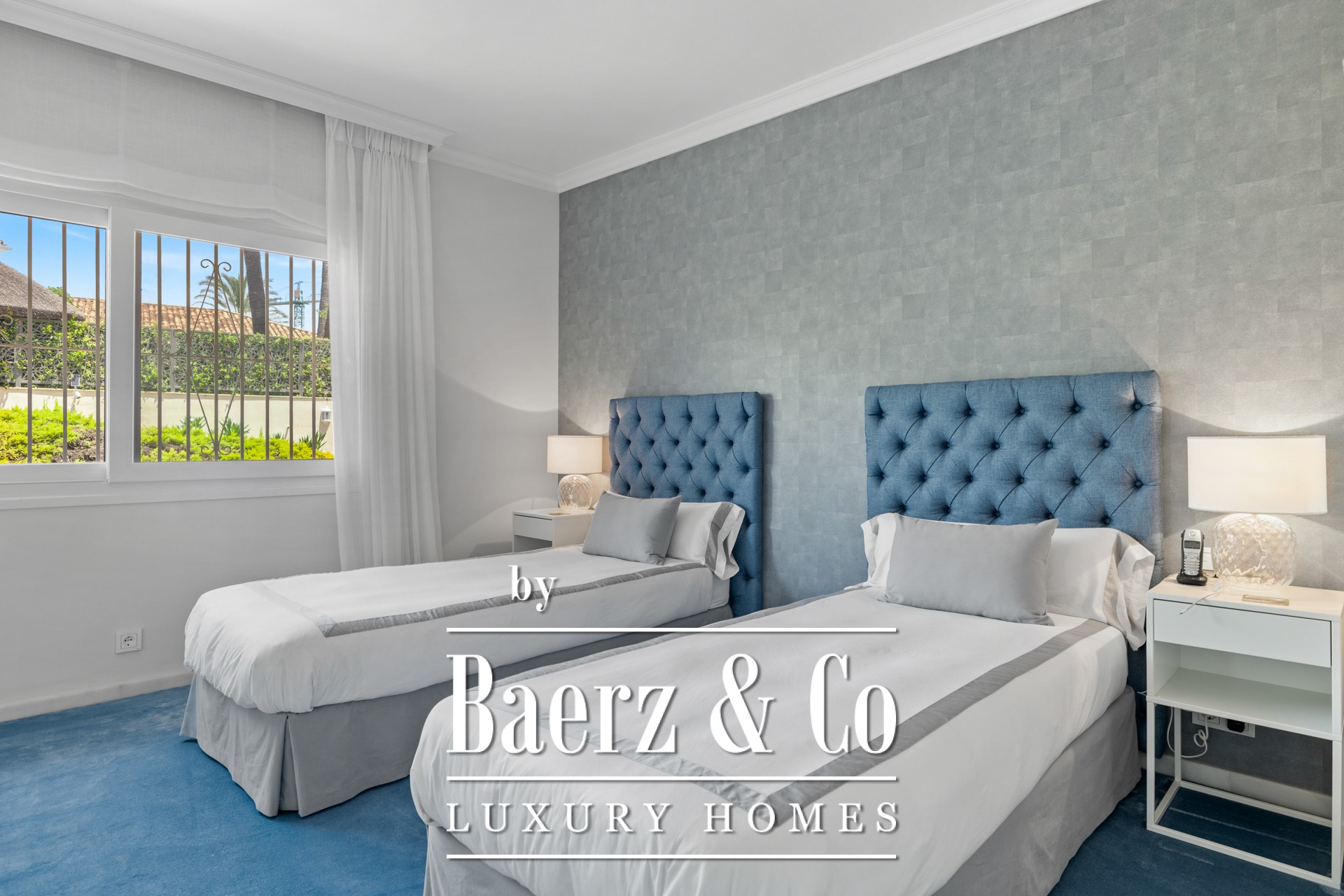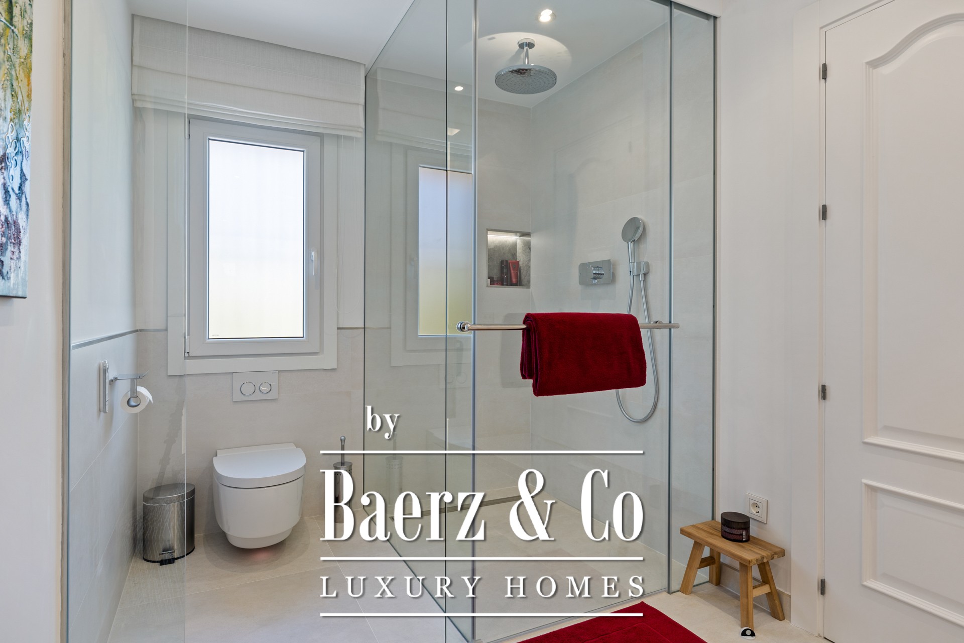 A great, recently renovated villa with a perfect fusion between contemporary design and Andalusian style. Located in the sought after residential area of La Cerquilla. South facing with views to La Concha. Private and quiet. Nearby all amenities and the golf clubs of Las Brisas and Los Naranjos.