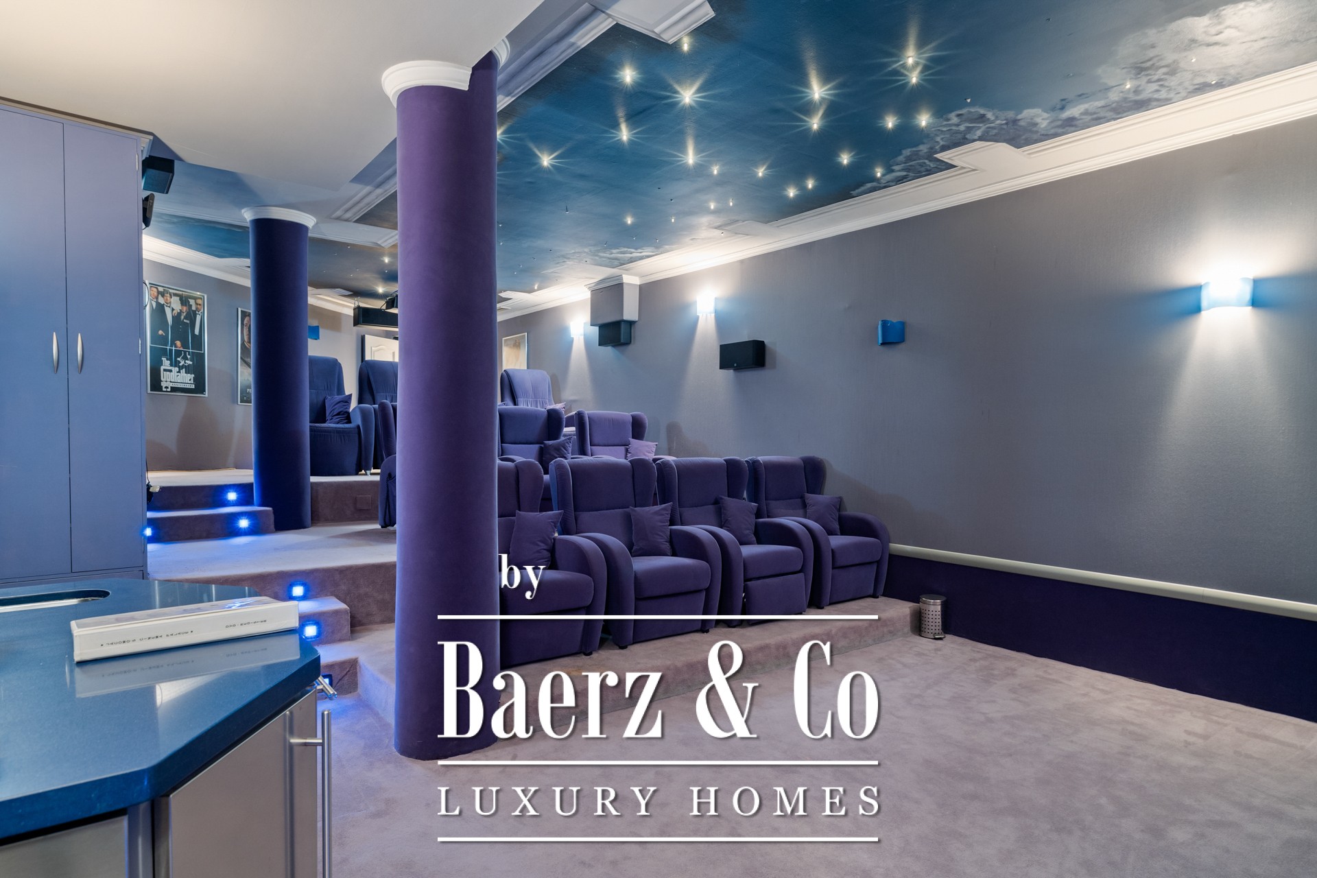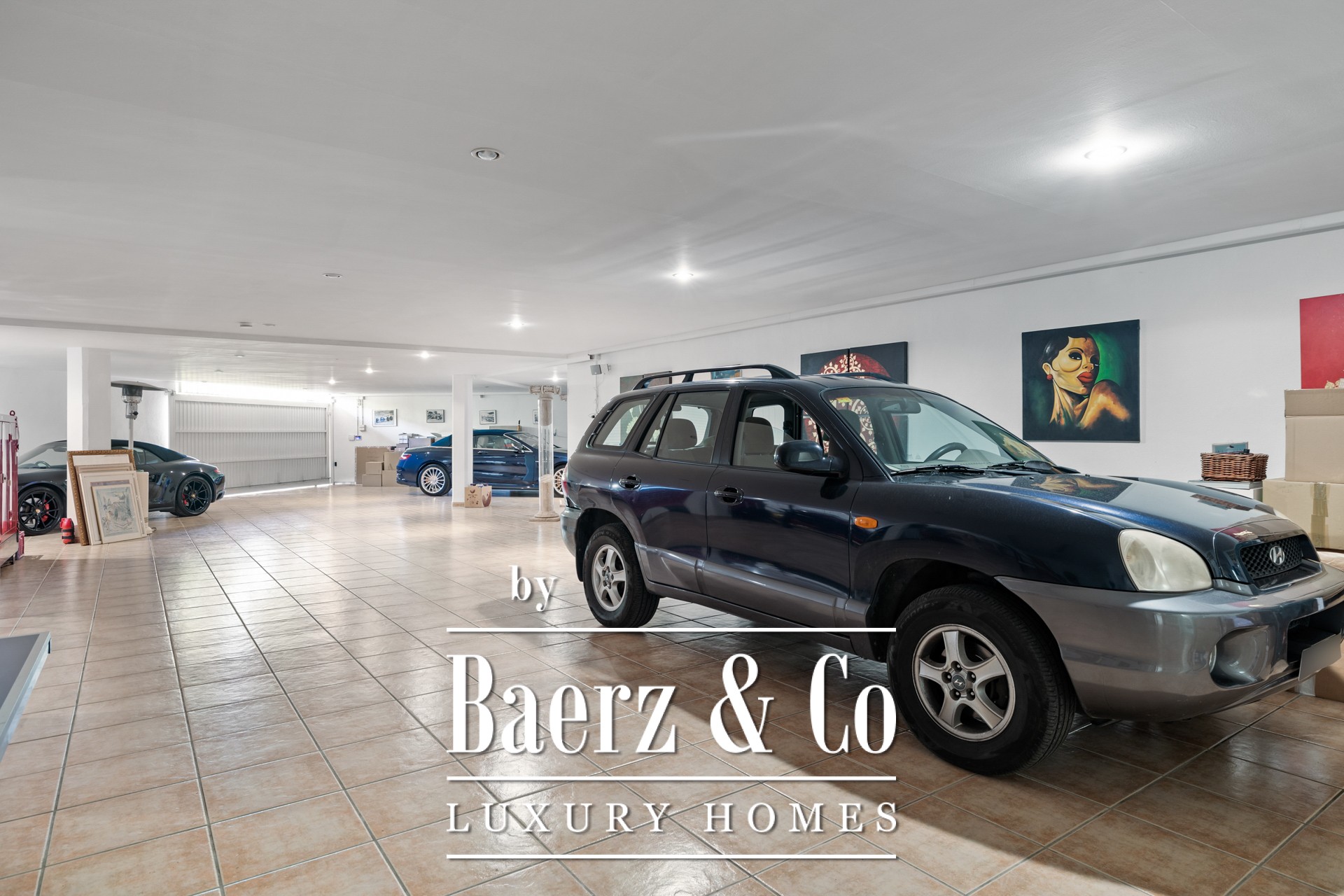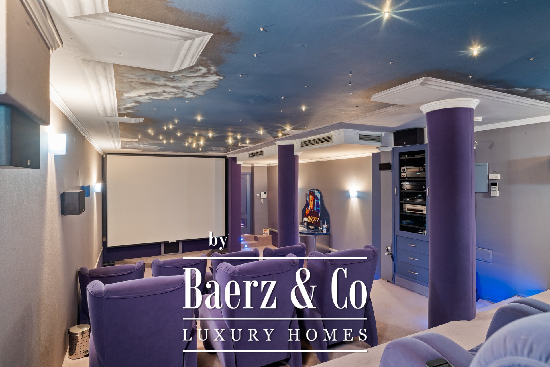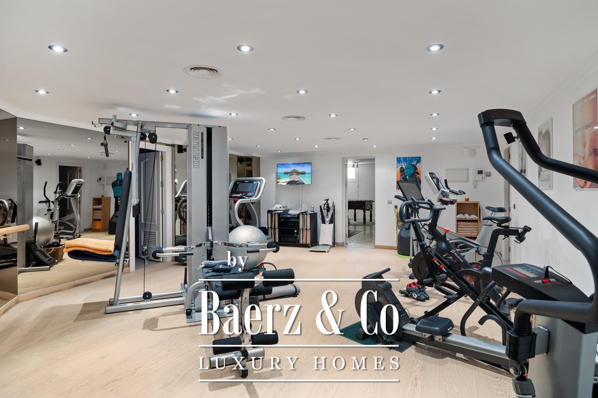Lower floor: Entertainment area, bodega, cinema room, gym, garage for 6 cars and storage.