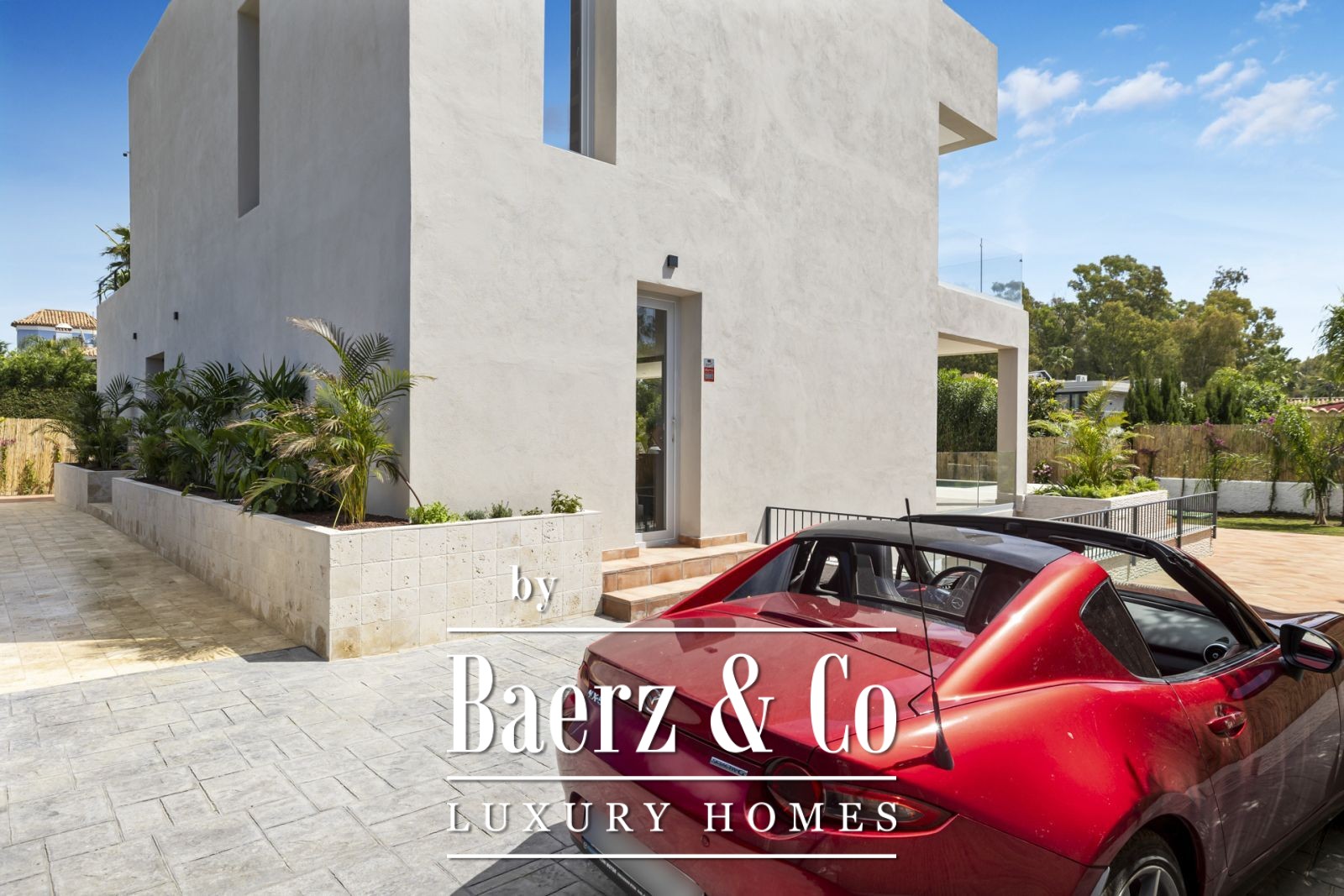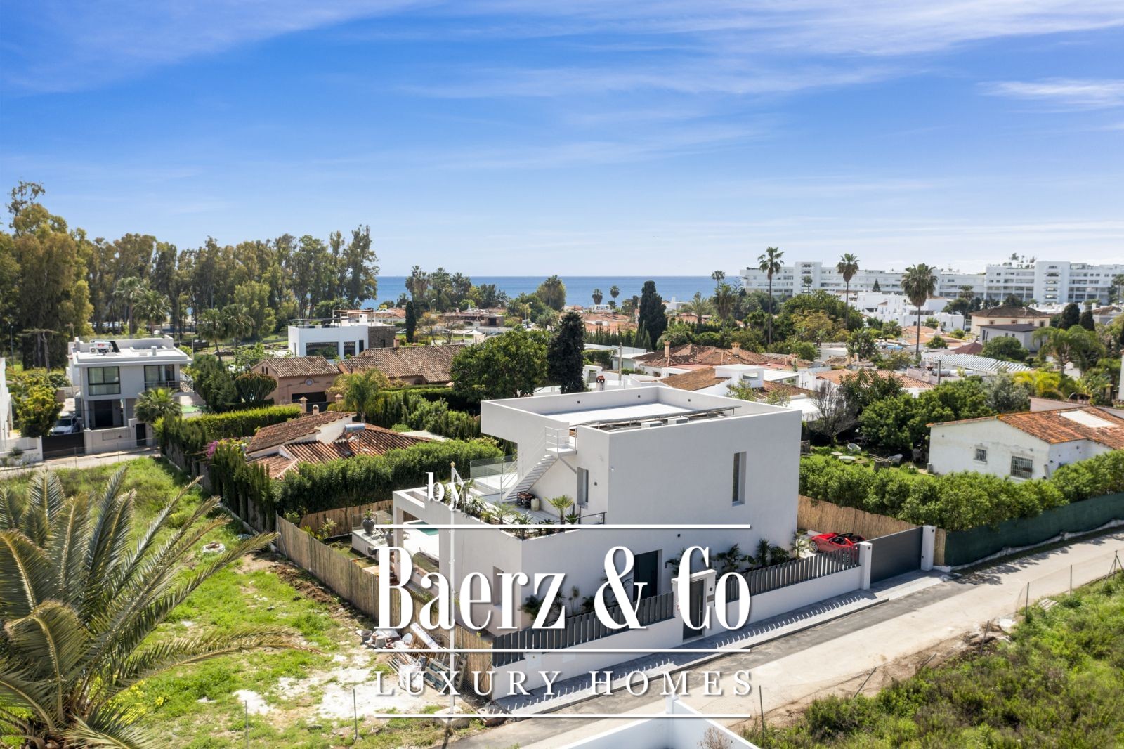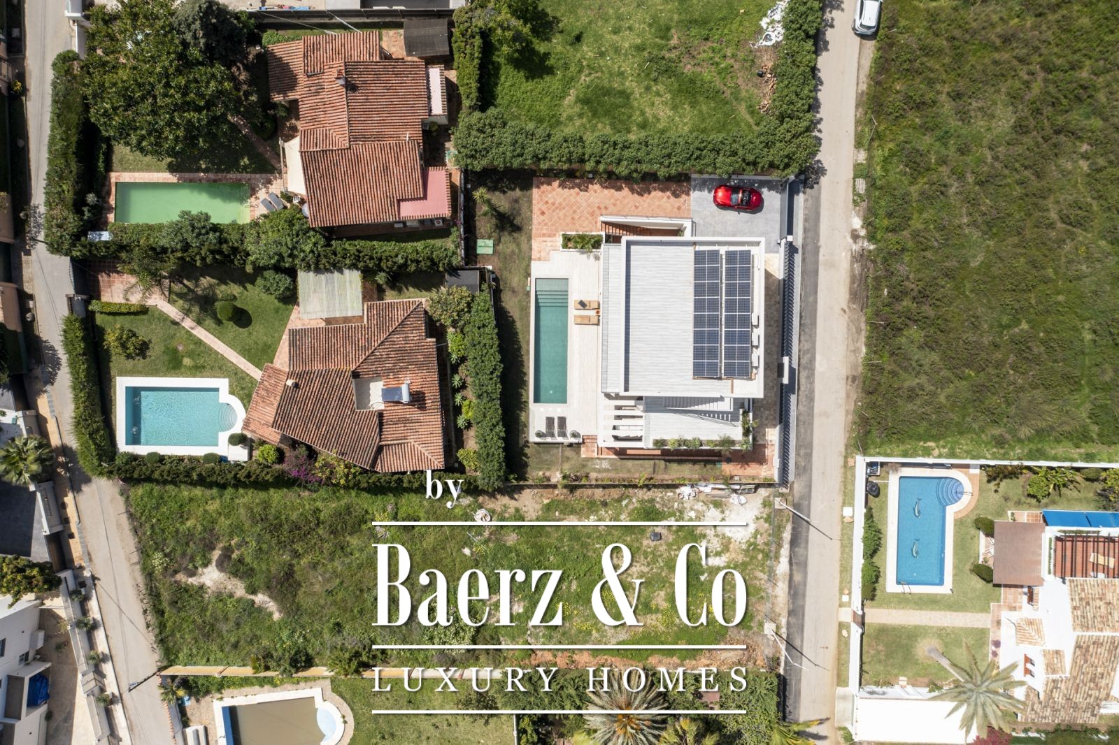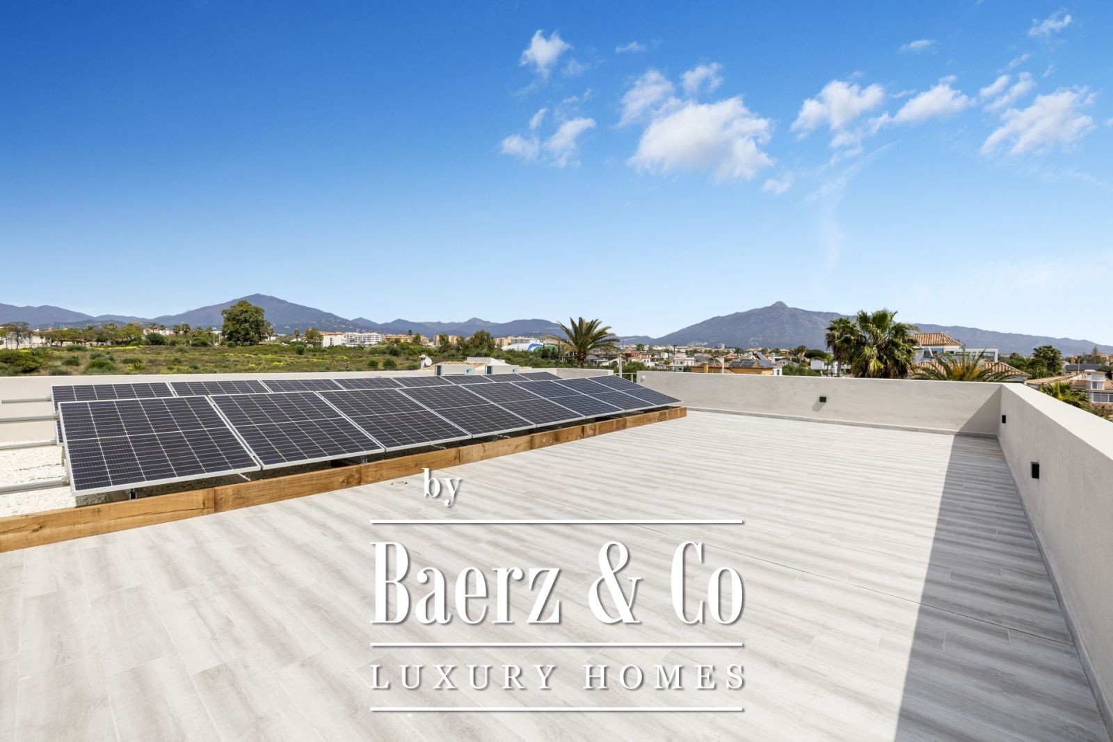 We are thrilled to present this modern south facing villa, just 250m from the Mediterranean Sea near San Pedro town. The property is built over two floors plus basement and rooftop terrace with views to mountains and the sea. Some of the features include solar panels, lightning with Wi-Fi dimmers controllable by mobile phone, pre-installation for electric blinds and
