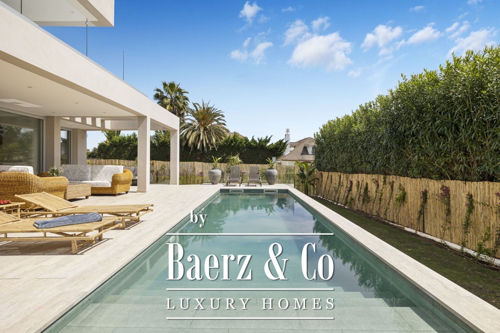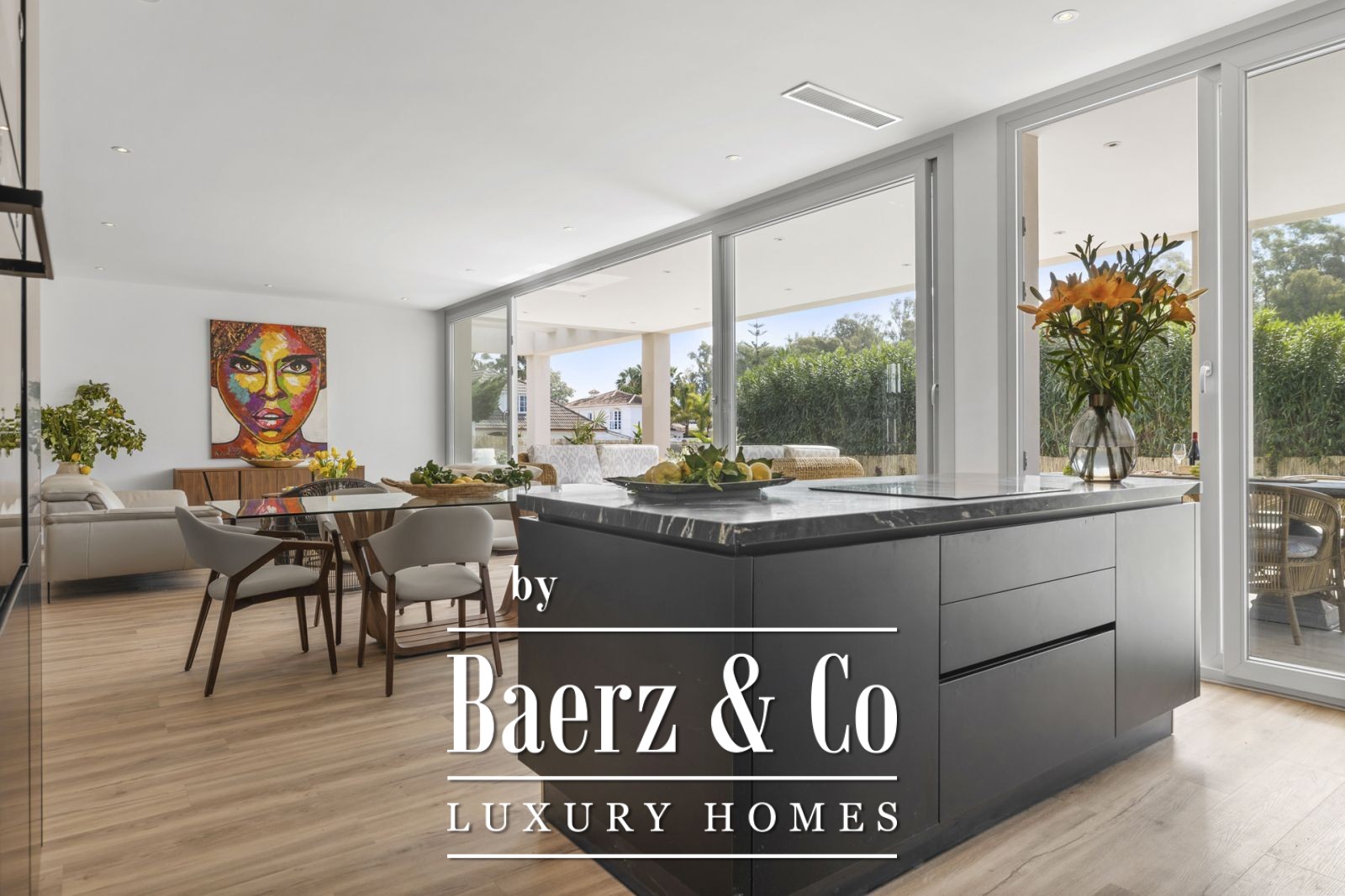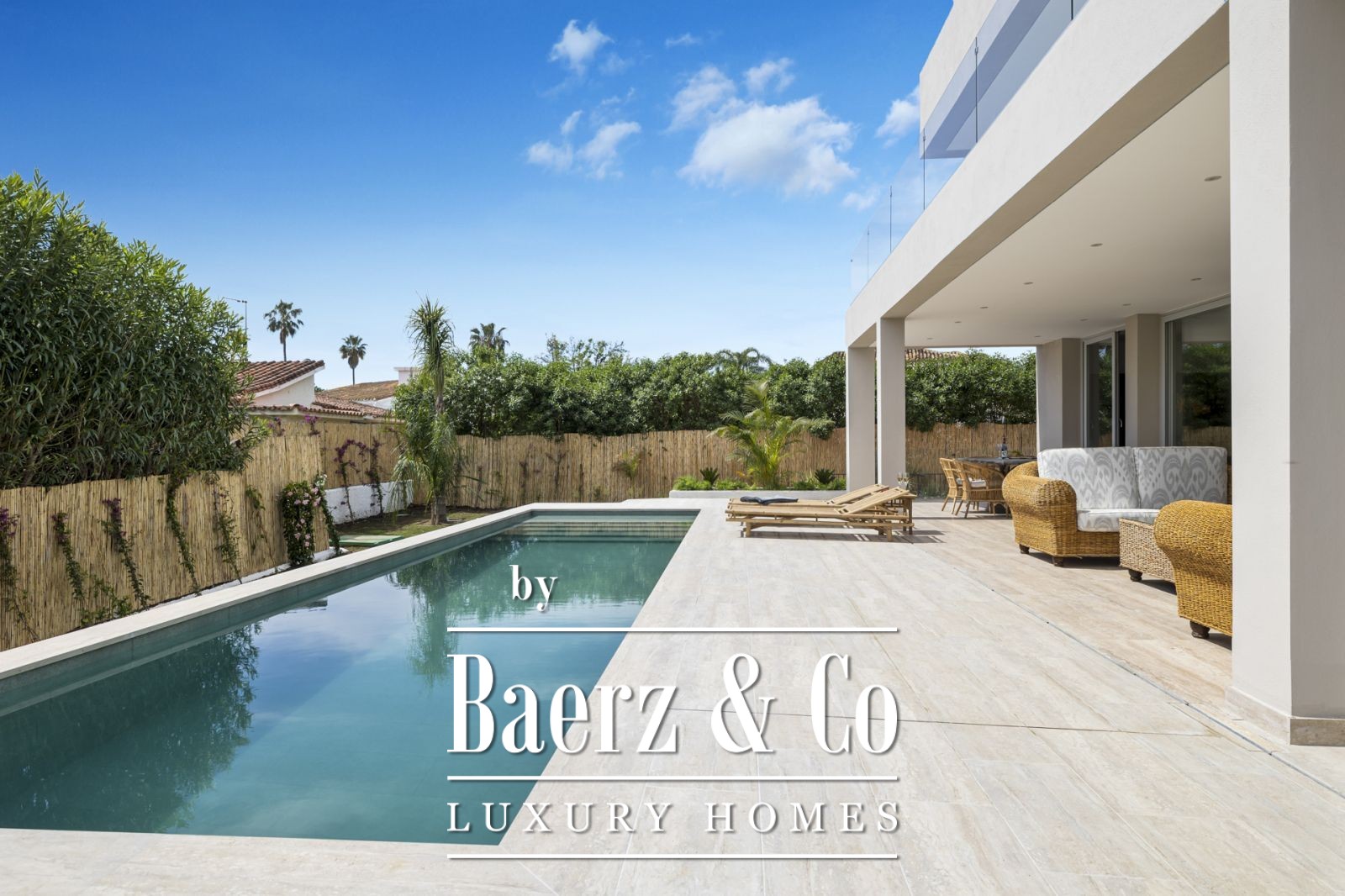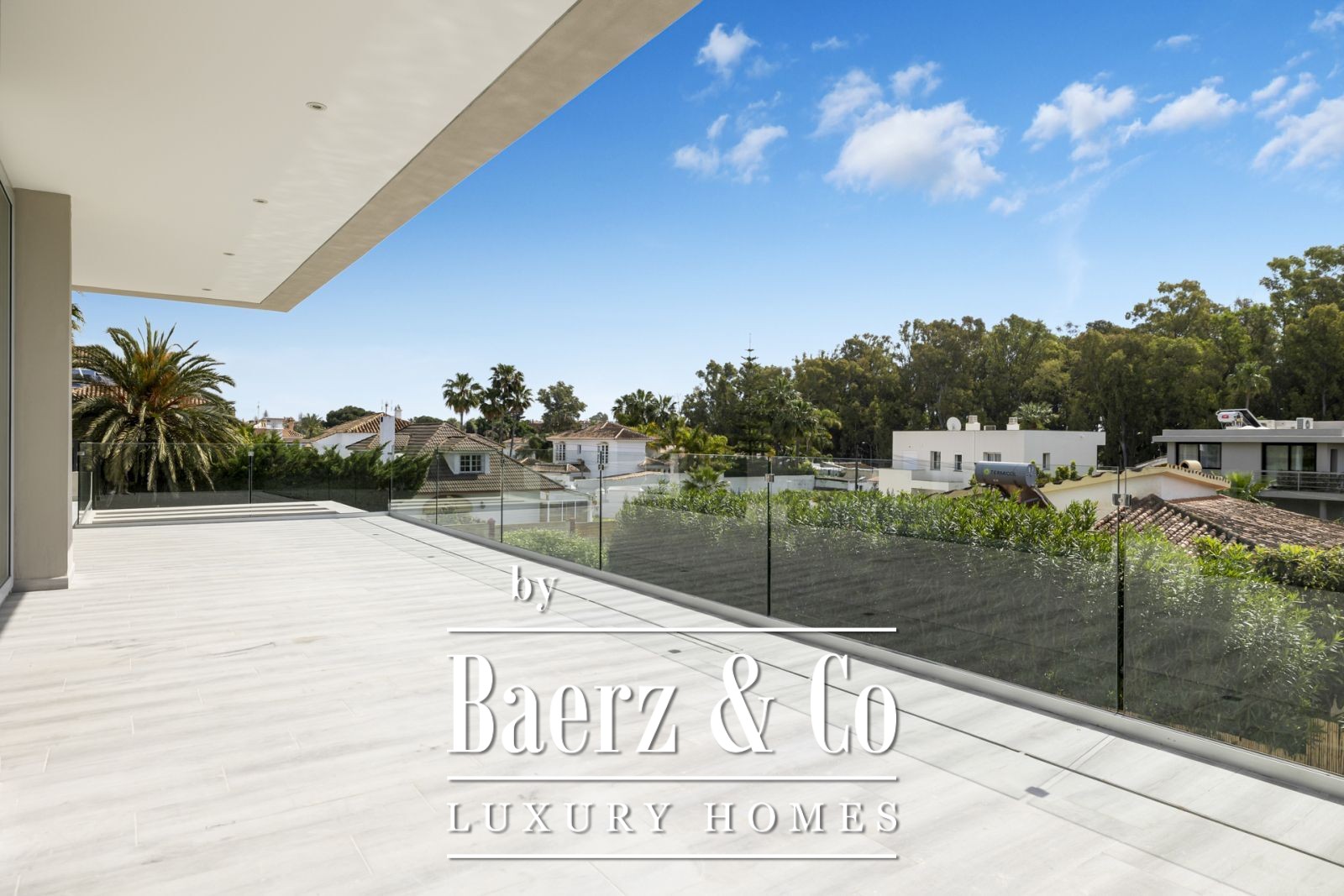 We are thrilled to present this modern south facing villa, just 250m from the Mediterranean Sea near San Pedro town. The property is built over two floors plus basement and rooftop terrace with views to mountains and the sea. Some of the features include solar panels, lightning with Wi-Fi dimmers controllable by mobile phone, pre-installation for electric blinds and