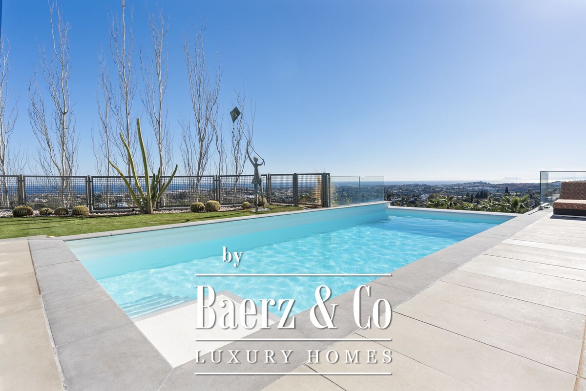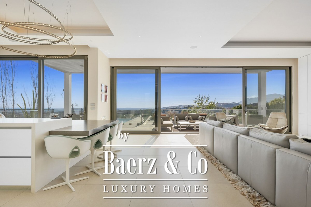 Villa Marbella anchors itself atop the heights of El Herrojo in La Quinta, distinguished by panoramic sea views and a sense of discreet refinement. This property, a villa Marbella, unfolds across 740 m² of living space on a 1,393 m² plot, bringing together contemporary architecture and an unhurried Mediterranean rhythm. Seven bedrooms and ten bathrooms are arranged within an open-plan layout, where soaring ceilings and expansive floor-to-ceiling windows create an atmosphere that is both luminous and poised. The interiors are considered, defined by sleek lines and an understated modernity that communicates lasting confidence rather than passing trends.