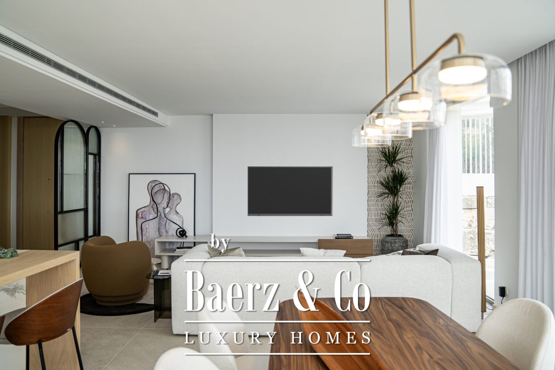 Step outside to lounge furnishings by a distinguished interior design firm, valued at 56,000 €, complementing the refined yet comfortable aesthetic and underscoring the residence’s attention to detail. Amenities within the gated community are curated for a discerning lifestyle: a saltwater pool with jacuzzi, tranquil firepit, open-air gym with yoga area, and elegant spaces for quiet gatherings or remote work. Proximity to the La Quinta Golf Club, nearby beaches, and Benahavís village delivers both seclusion and access.