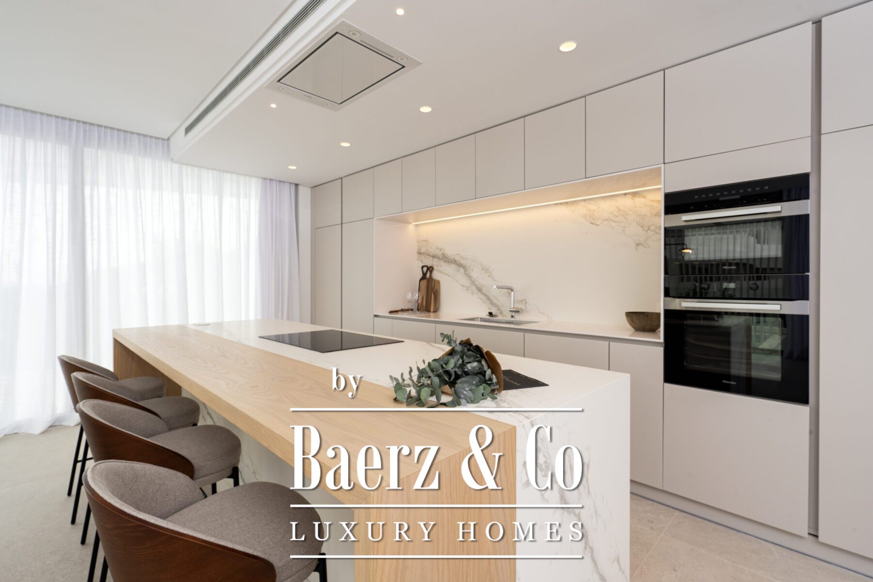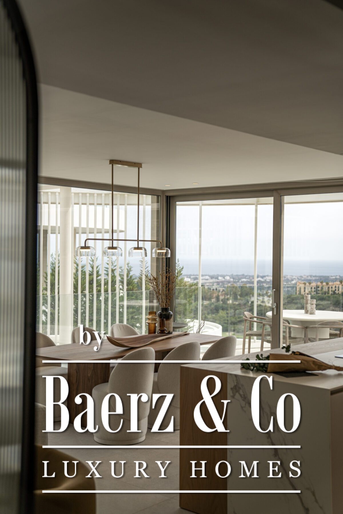 The penthouse Marbella commands attention as one of the finest residences in this new development above the coast, offering a rare combination of expansive indoor space and panoramic Mediterranean views across to Gibraltar and Africa. This 449 m² penthouse features four bedrooms and five bathrooms, each meticulously designed for privacy and ease. The open plan layout extends seamlessly onto an immersive roof terrace, complete with a private pool, creating a continuum between light-filled interiors and open sky.