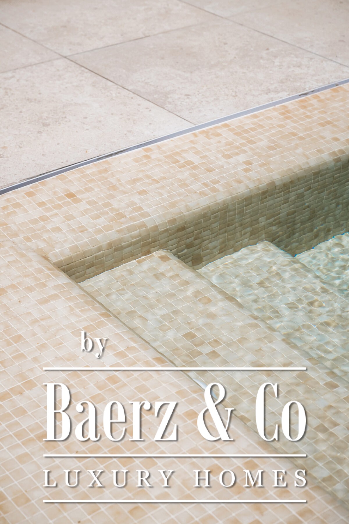 On the other side, the private wing: the master suite with walk-in wardrobe and full bathroom, plus two en-suite bedrooms overlooking landscaped surroundings. A separate laundry room adds convenience.