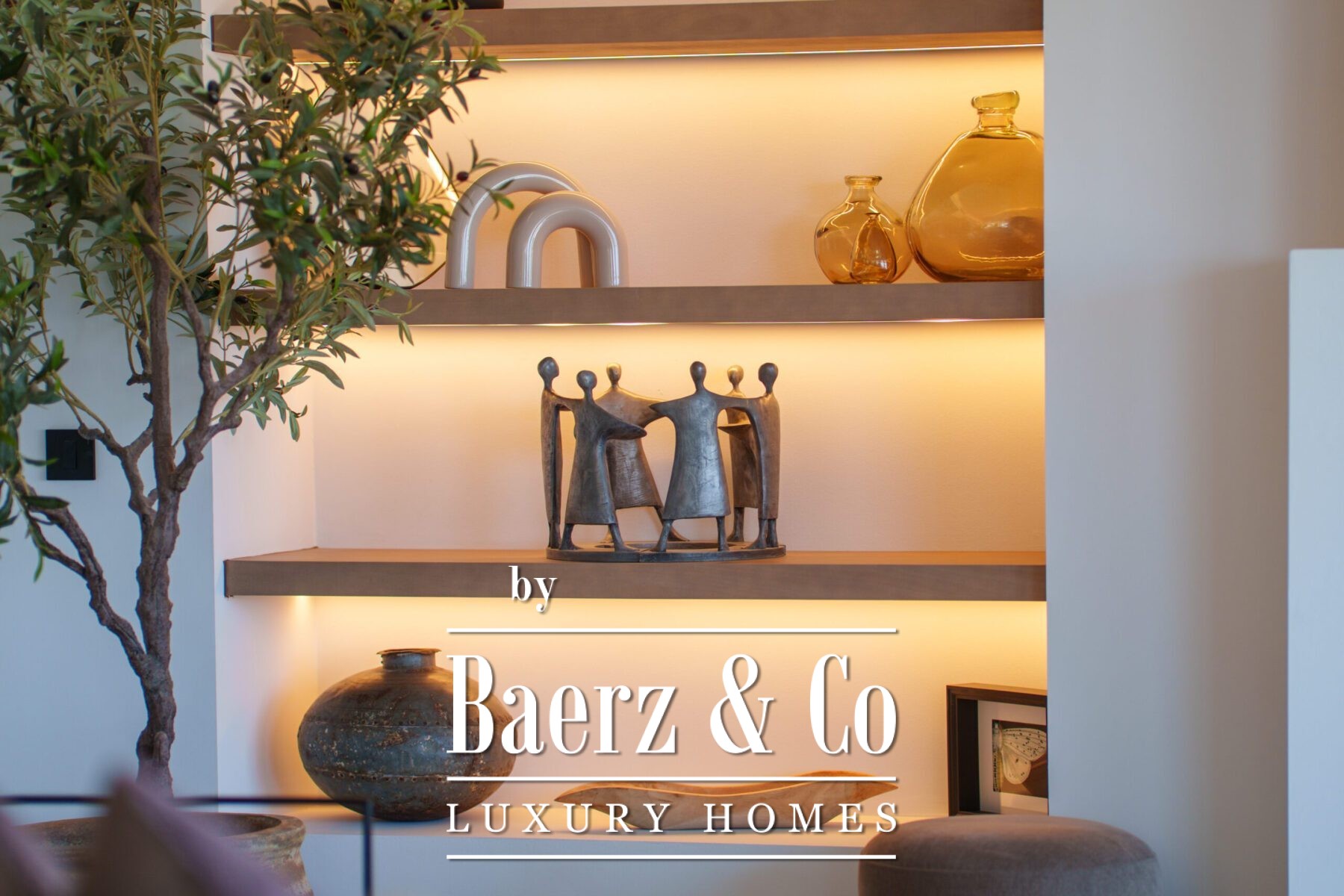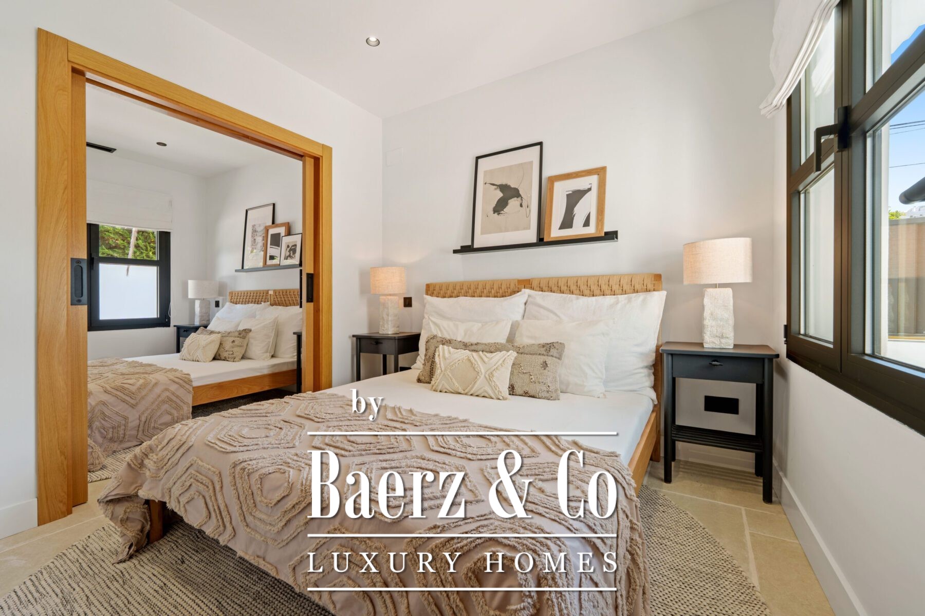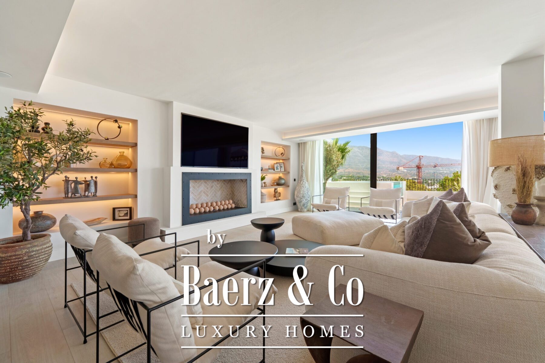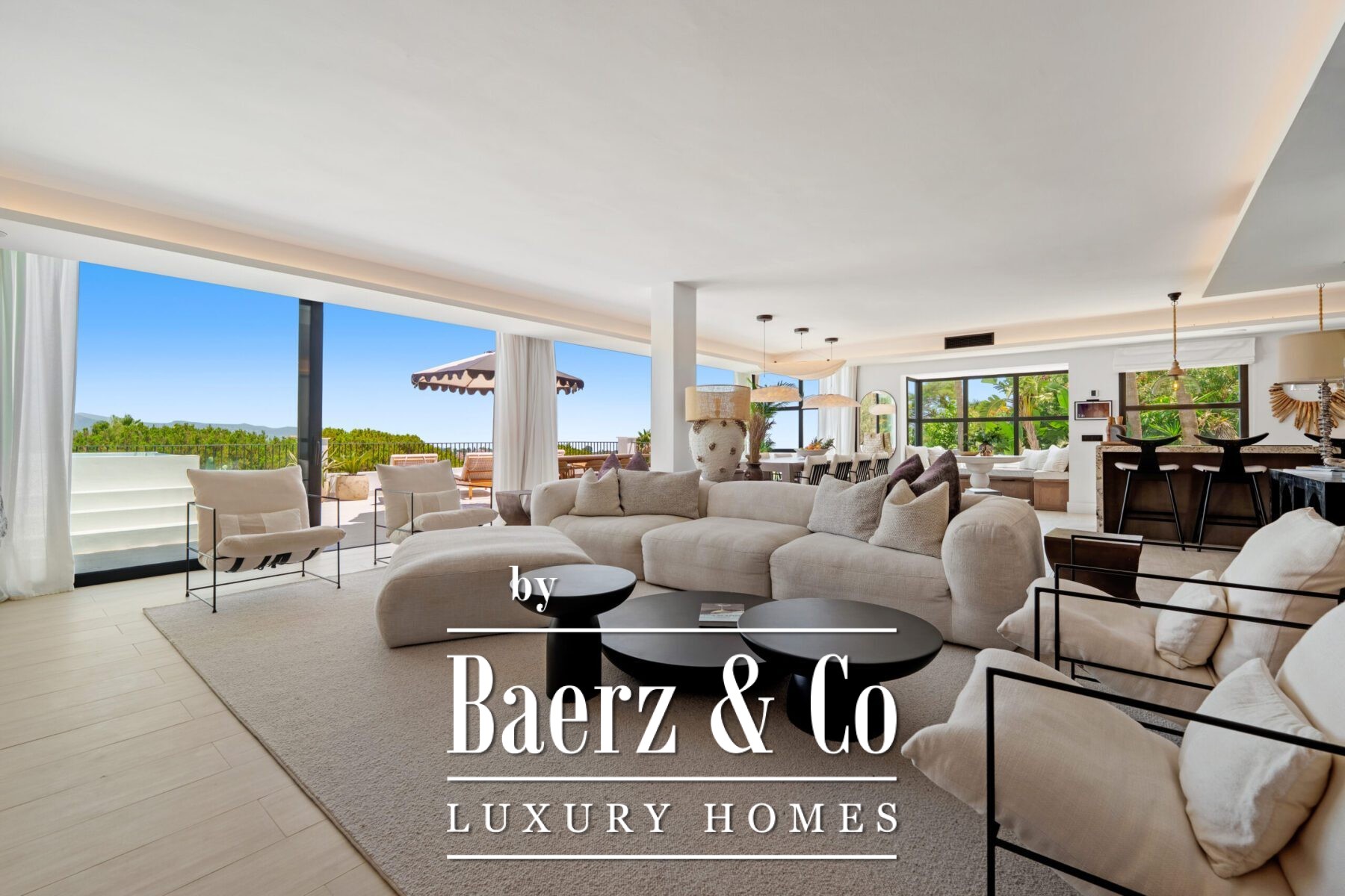 The interior design is a harmonious fusion of sophistication and warmth, combining neutral tones, natural textures, and bespoke furnishings to create a serene yet luxurious atmosphere. Handpicked décor pieces, artisanal lighting, and thoughtfully integrated shelving add character and charm, while large windows frame the captivating views and invite abundant daylight into every space. The result is a home that feels both contemporary and timeless, with a refined aesthetic that enhances its architectural beauty.