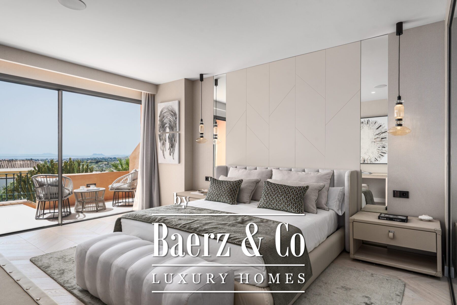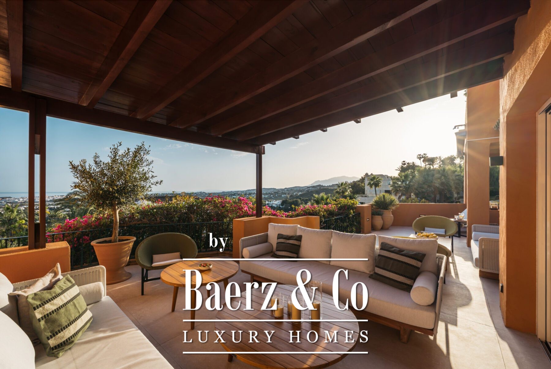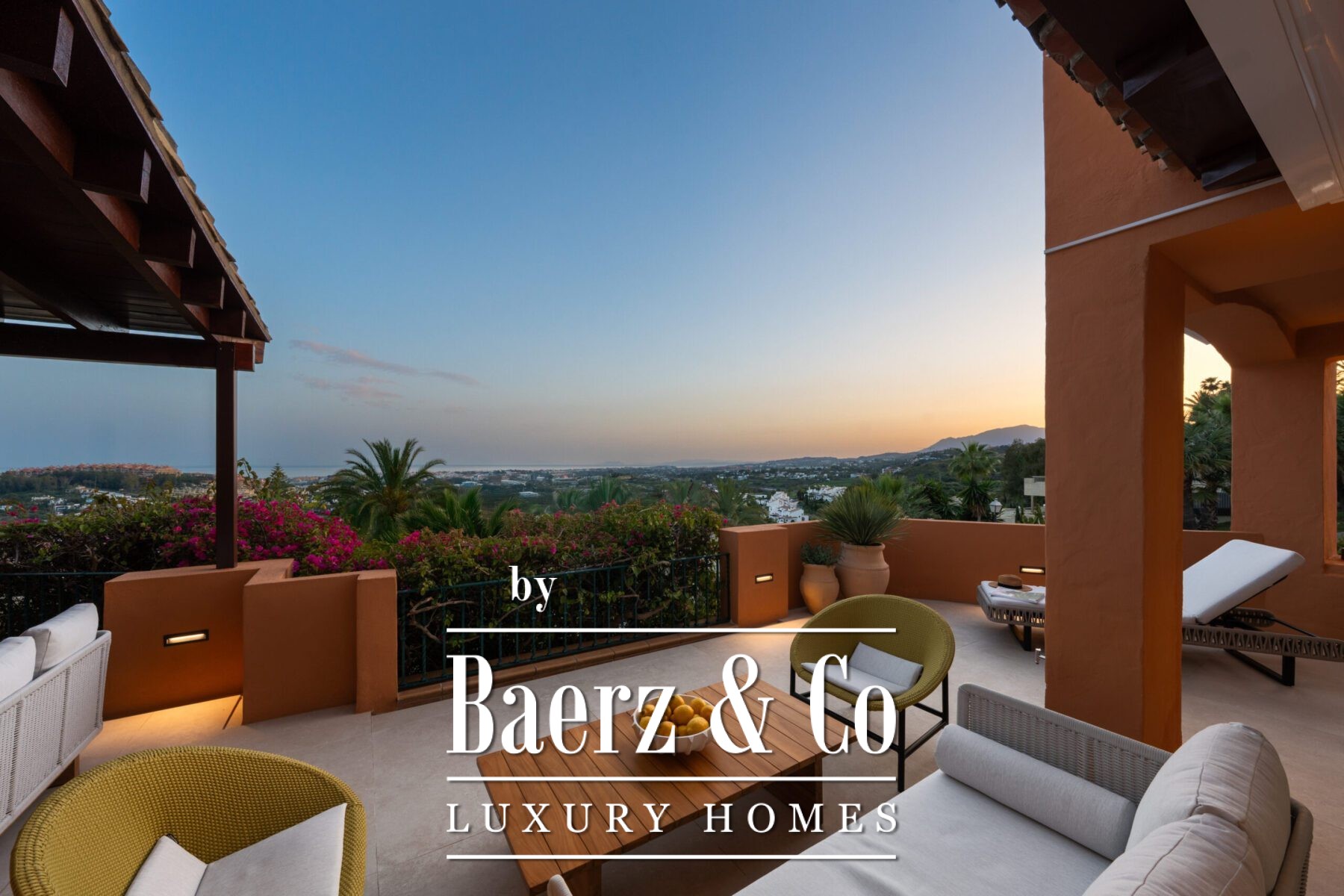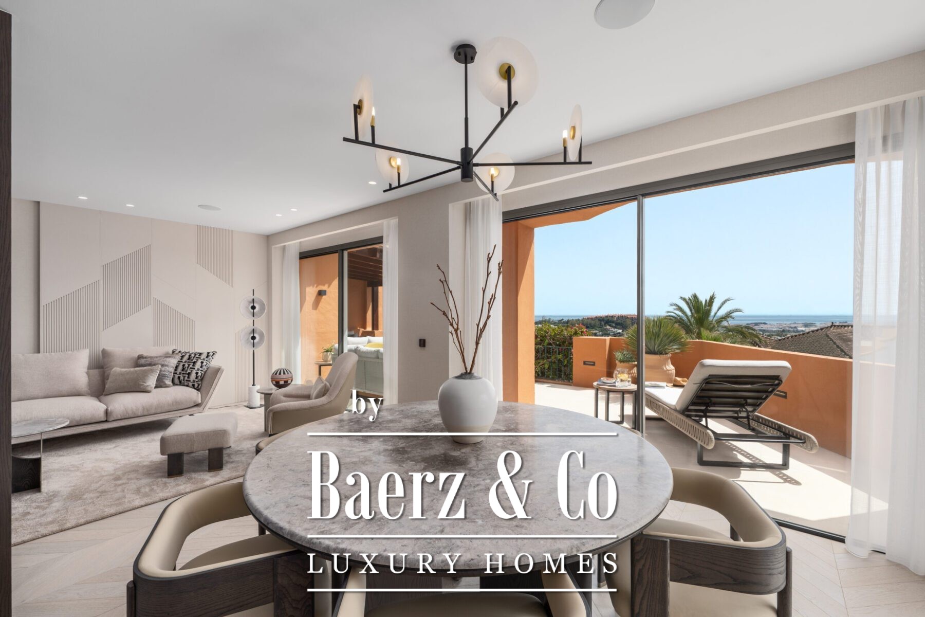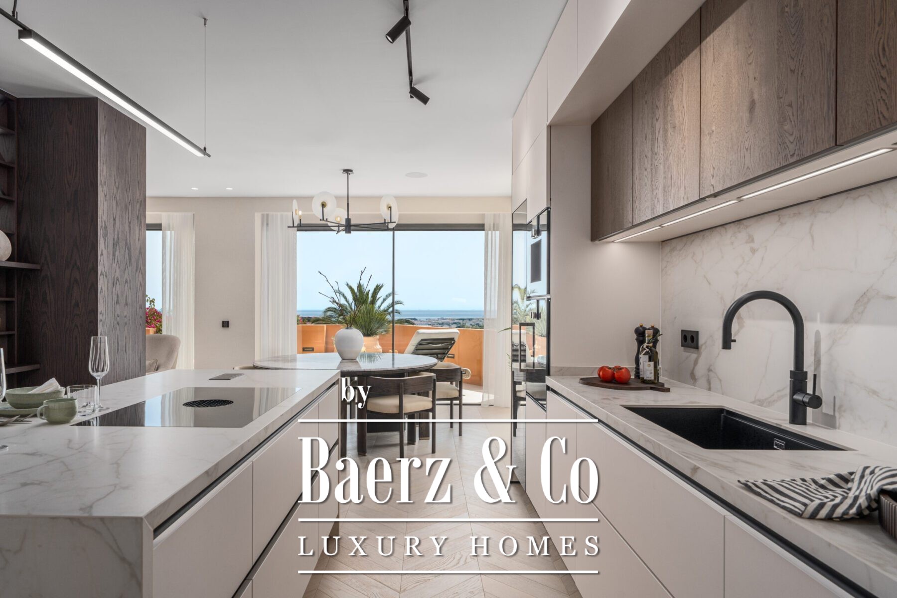 Welcome to a stunning elevated ground floor apartment situated in the highly desirable area of La Cerquilla, Nueva Andalucía. Offering breath-taking panoramic views of the Mediterranean Sea, mountains, and surrounding golf courses, this property represents the perfect blend of sophistication, comfort, and contemporary design.