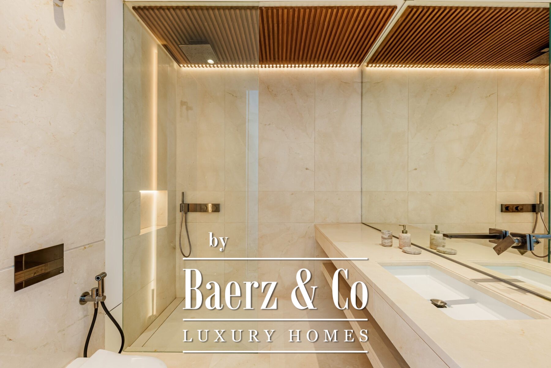 At the heart of the home lies a breath-taking living area, defined by soaring ceilings and full-height glass sliding doors that seamlessly disappear into the walls, blurring the line between indoors and out. The natural light floods the space, accentuating the fine finishes and drawing the eye out to the expansive terraces, tranquil garden, and infinity pool beyond. This open-concept layout creates a fluid connection with the outdoors, offering an inviting atmosphere for both intimate moments and large-scale entertaining.