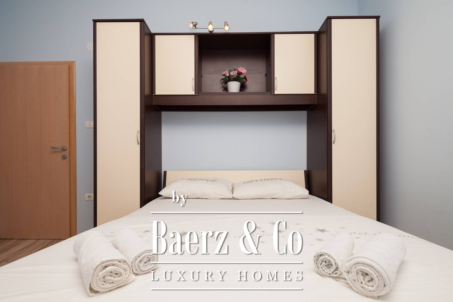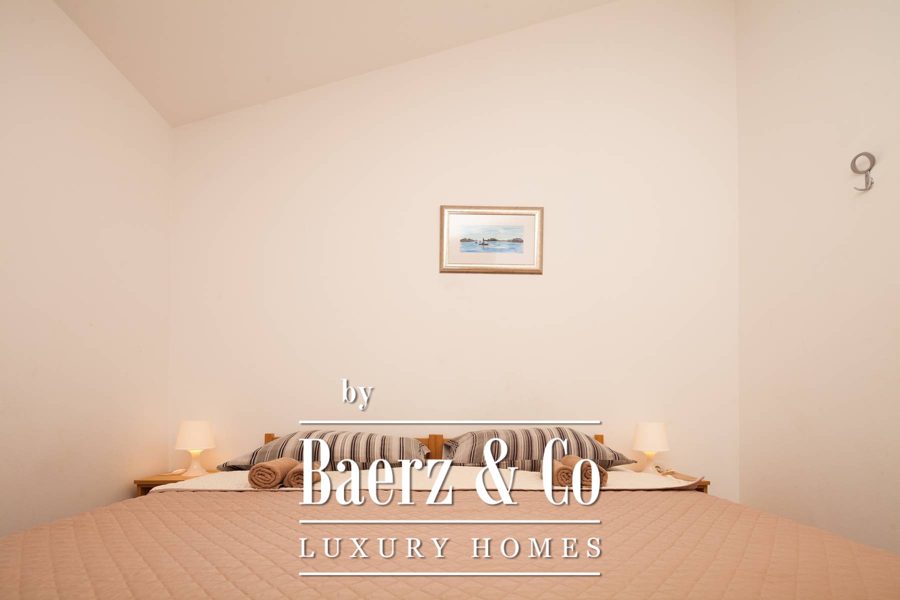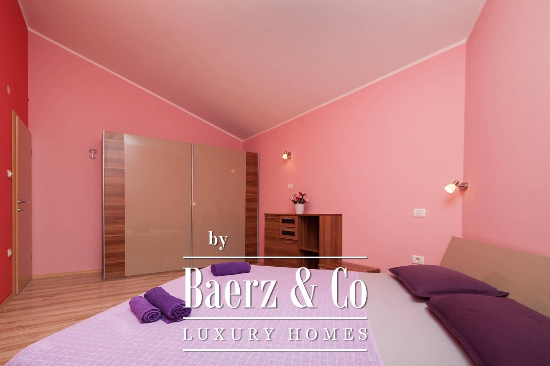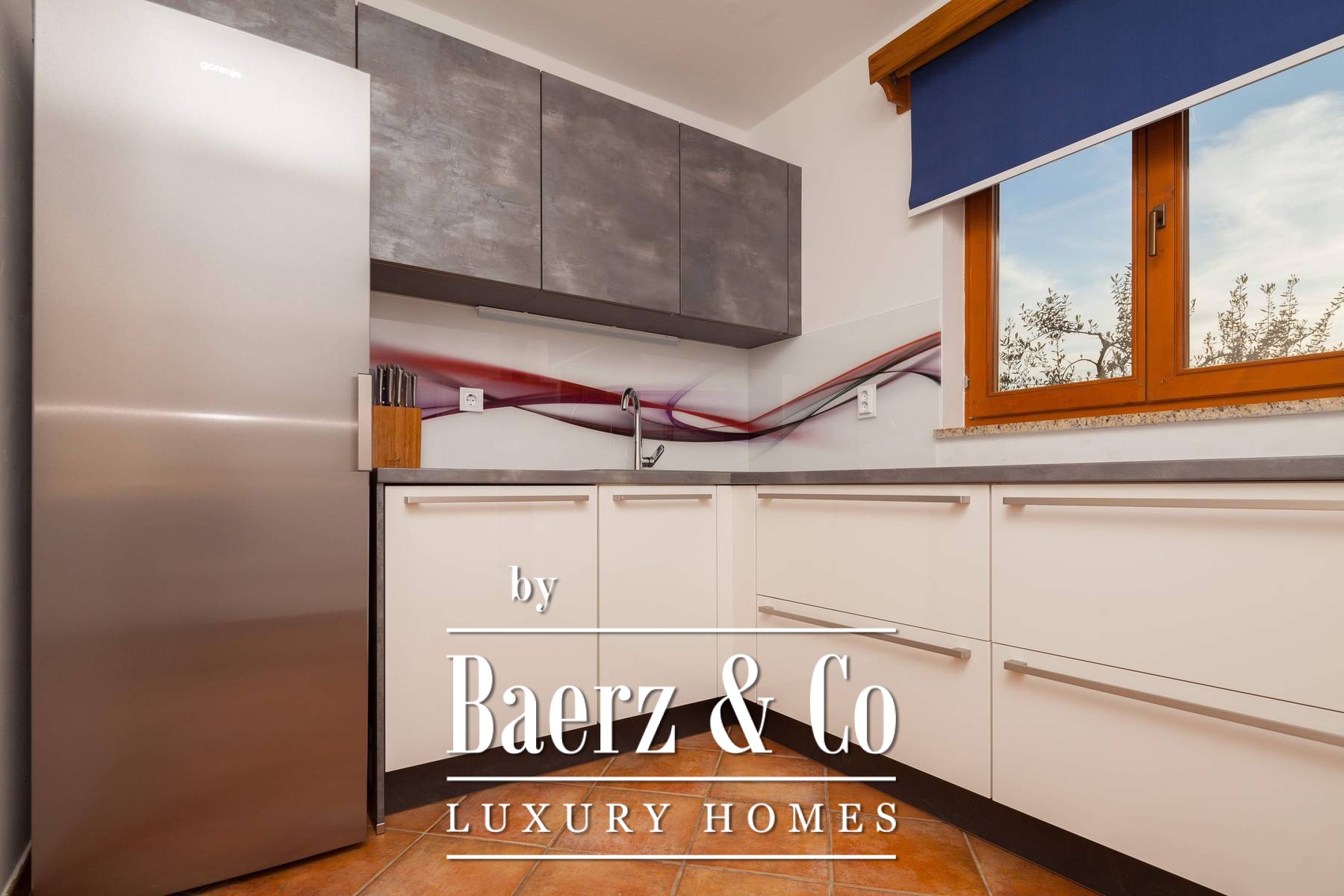 the back of the house there is a separate entrance that leads to the floor where the two sides are located. One spacious three-room apartment and one smaller one-room apartment. The three-room apartment consists of: an entrance hall, a toilet, a bathroom, a kitchen with a dining room, three bedrooms (one can easily be converted into a living room) and a terrace. The smaller apartment consists of: an entrance hall, a bathroom with a toilet, a bedroom, a kitchen with a dining room and a living room (the living room has a pull-out bed) and a terrace. On the ground floor of the building there is a garage for four cars, a game room (table tennis, darts, table football...) and a boiler room. The pool is 70m2 and has a jacuzzi and a shallow area for children. Heating is central gas. Additional nine air conditioners in the house. It is sold in a fully furnished condition. The apartment house in Banjole accommodates up to 20 guests. It is categorized for rent and very well occupied, and the annual income reaches 80-90 thousand euros. An ideal property for vacation and as an investment. In the immediate vicinity of the house there is a supermarket, restaurants, Benin pump, ATM, fish market, etc., which makes this house even more interesting for investment. The sea is only 800 meters away. The house is sold separately for 1,200,000 euros net, and the plot of land next to the house, which is 900 m2, can only be sold as a package with the house, and then the price is 1,300,000 euros net.