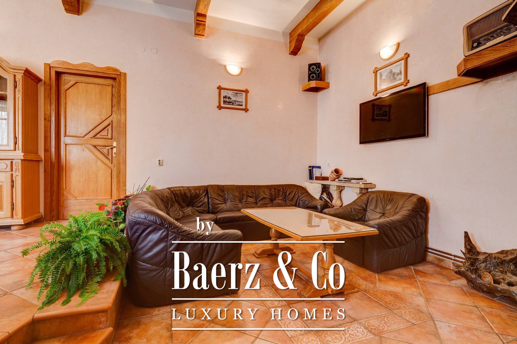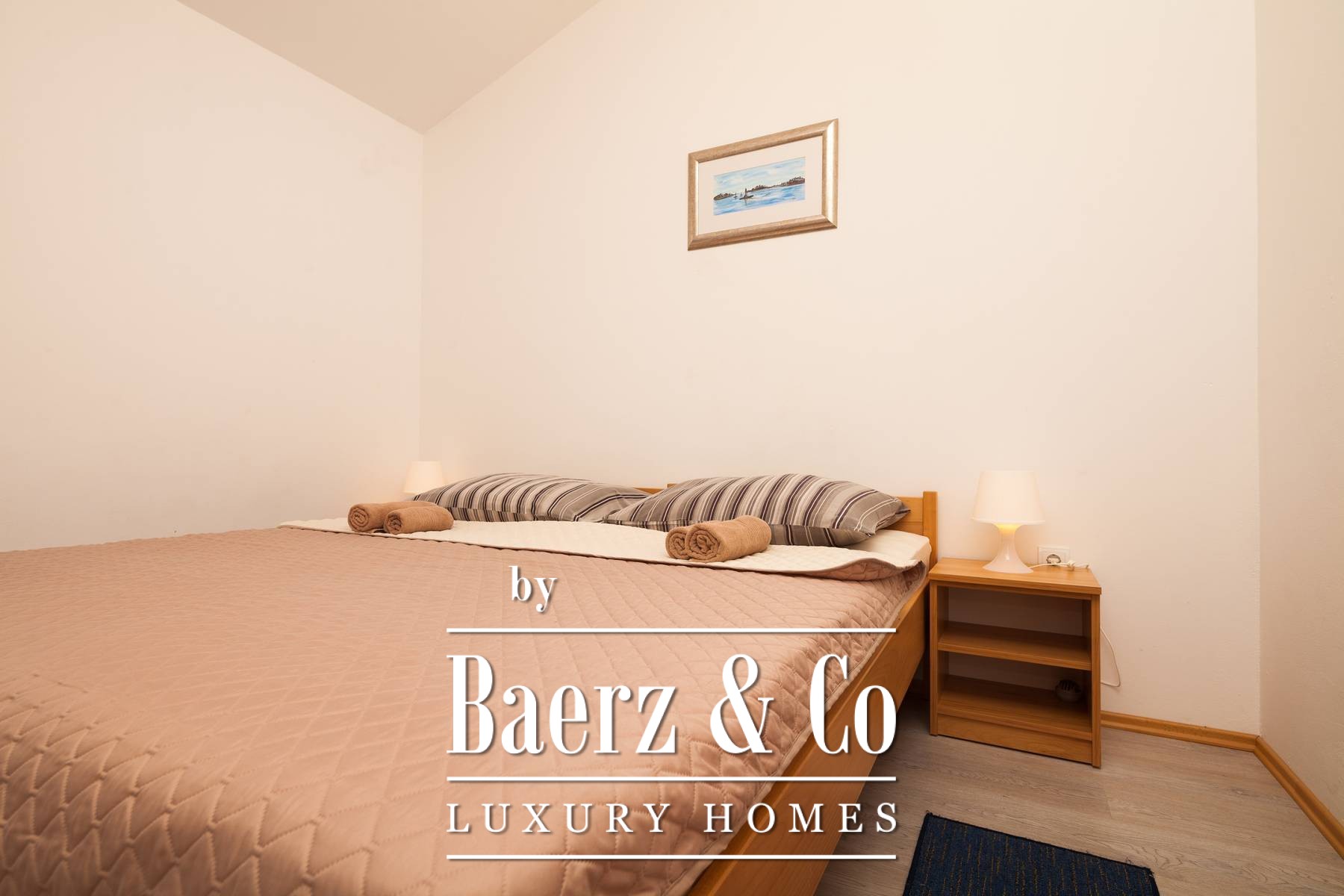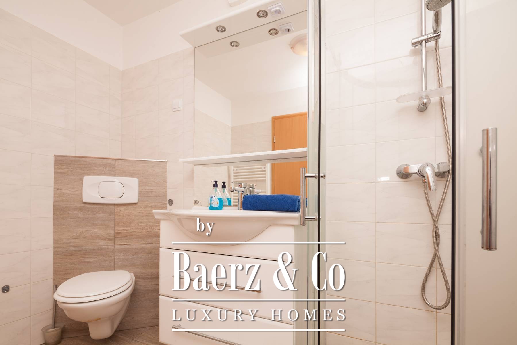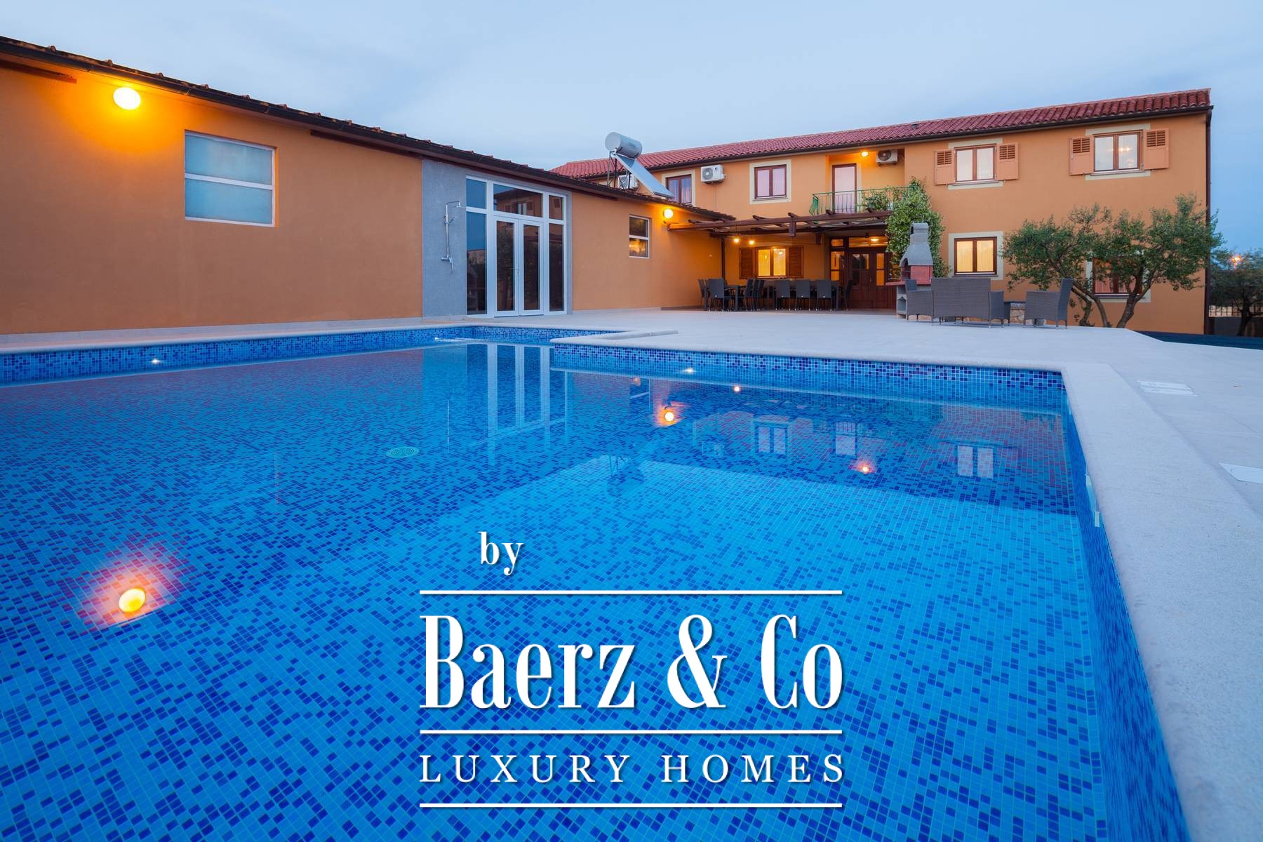 the back of the house there is a separate entrance that leads to the floor where the two sides are located. One spacious three-room apartment and one smaller one-room apartment. The three-room apartment consists of: an entrance hall, a toilet, a bathroom, a kitchen with a dining room, three bedrooms (one can easily be converted into a living room) and a terrace. The smaller apartment consists of: an entrance hall, a bathroom with a toilet, a bedroom, a kitchen with a dining room and a living room (the living room has a pull-out bed) and a terrace. On the ground floor of the building there is a garage for four cars, a game room (table tennis, darts, table football...) and a boiler room. The pool is 70m2 and has a jacuzzi and a shallow area for children. Heating is central gas. Additional nine air conditioners in the house. It is sold in a fully furnished condition. The apartment house in Banjole accommodates up to 20 guests. It is categorized for rent and very well occupied, and the annual income reaches 80-90 thousand euros. An ideal property for vacation and as an investment. In the immediate vicinity of the house there is a supermarket, restaurants, Benin pump, ATM, fish market, etc., which makes this house even more interesting for investment. The sea is only 800 meters away. The house is sold separately for 1,200,000 euros net, and the plot of land next to the house, which is 900 m2, can only be sold as a package with the house, and then the price is 1,300,000 euros net.