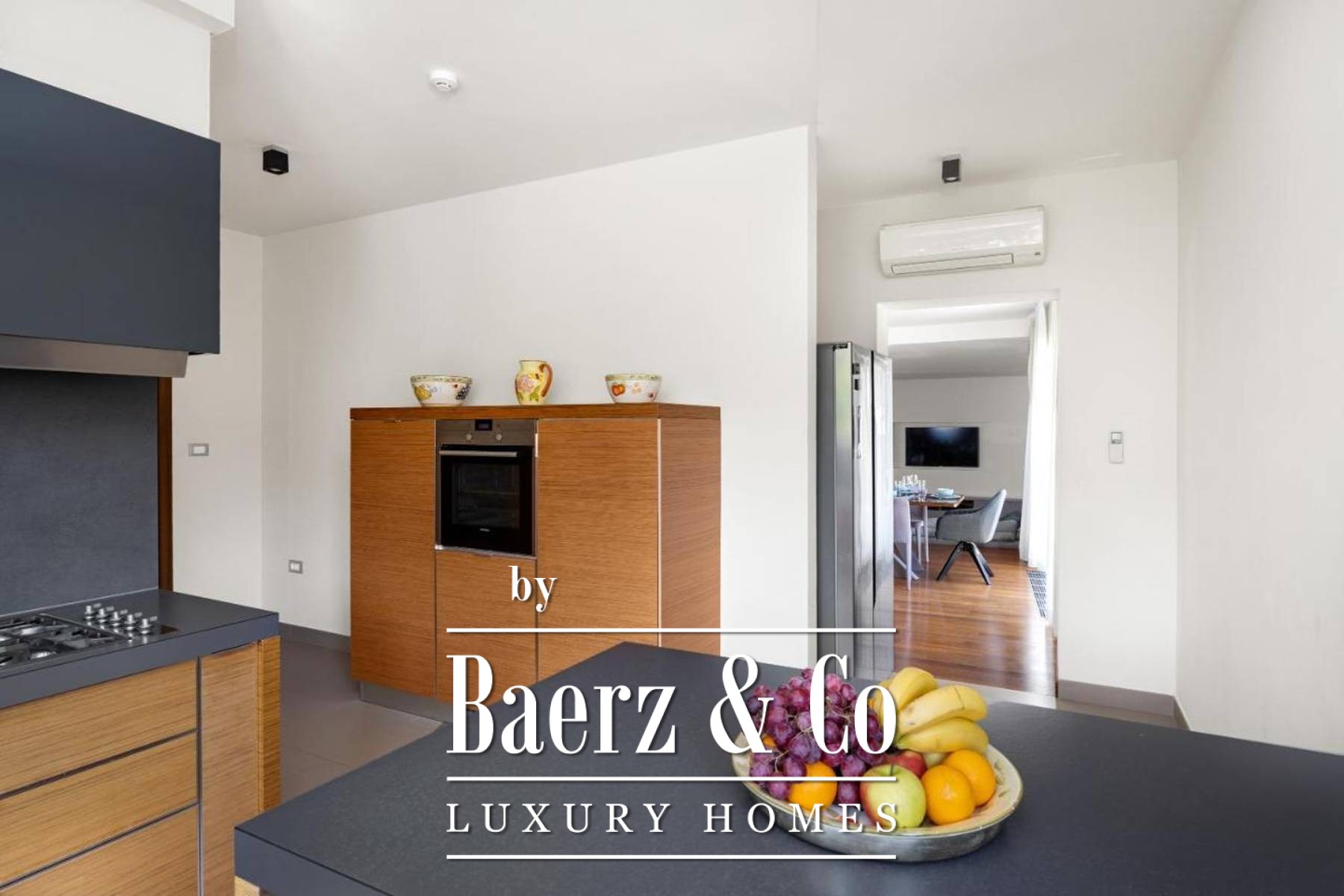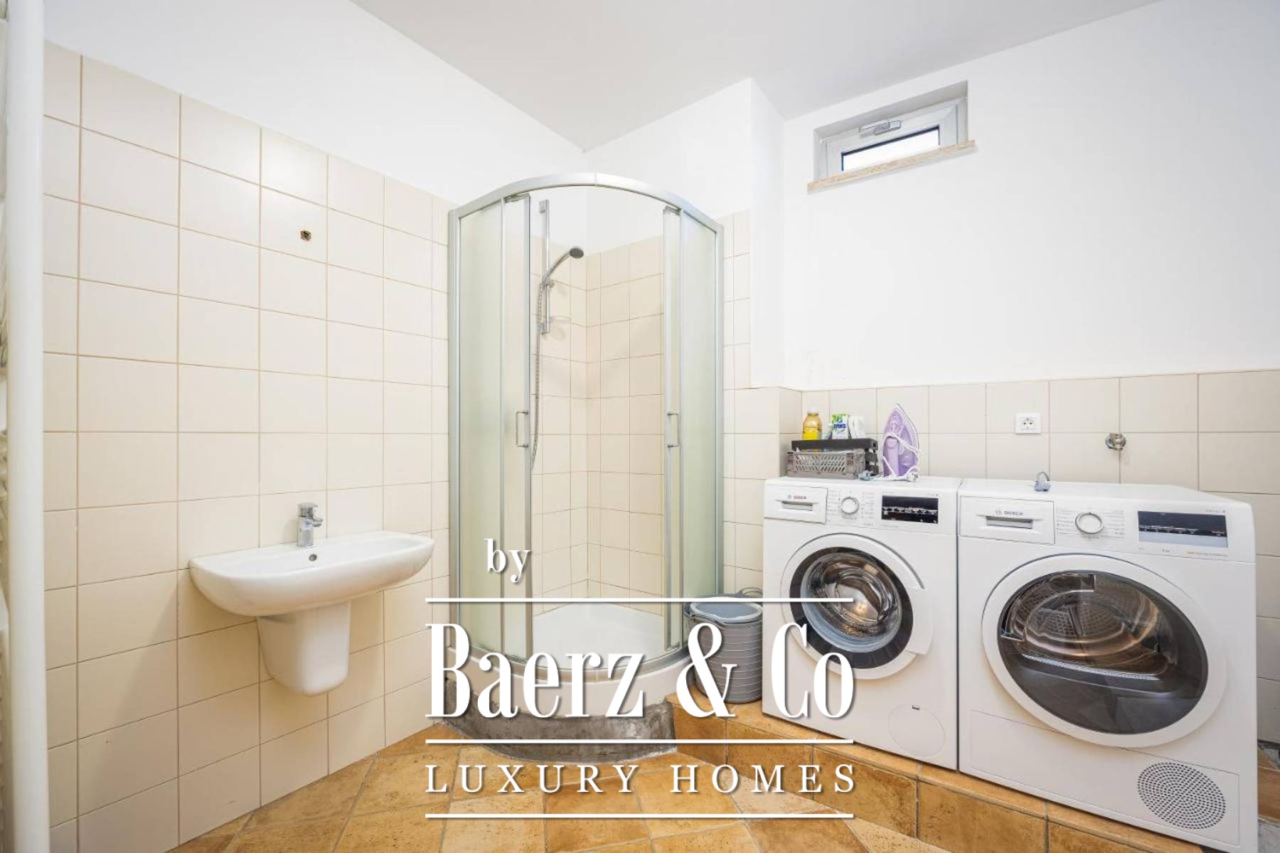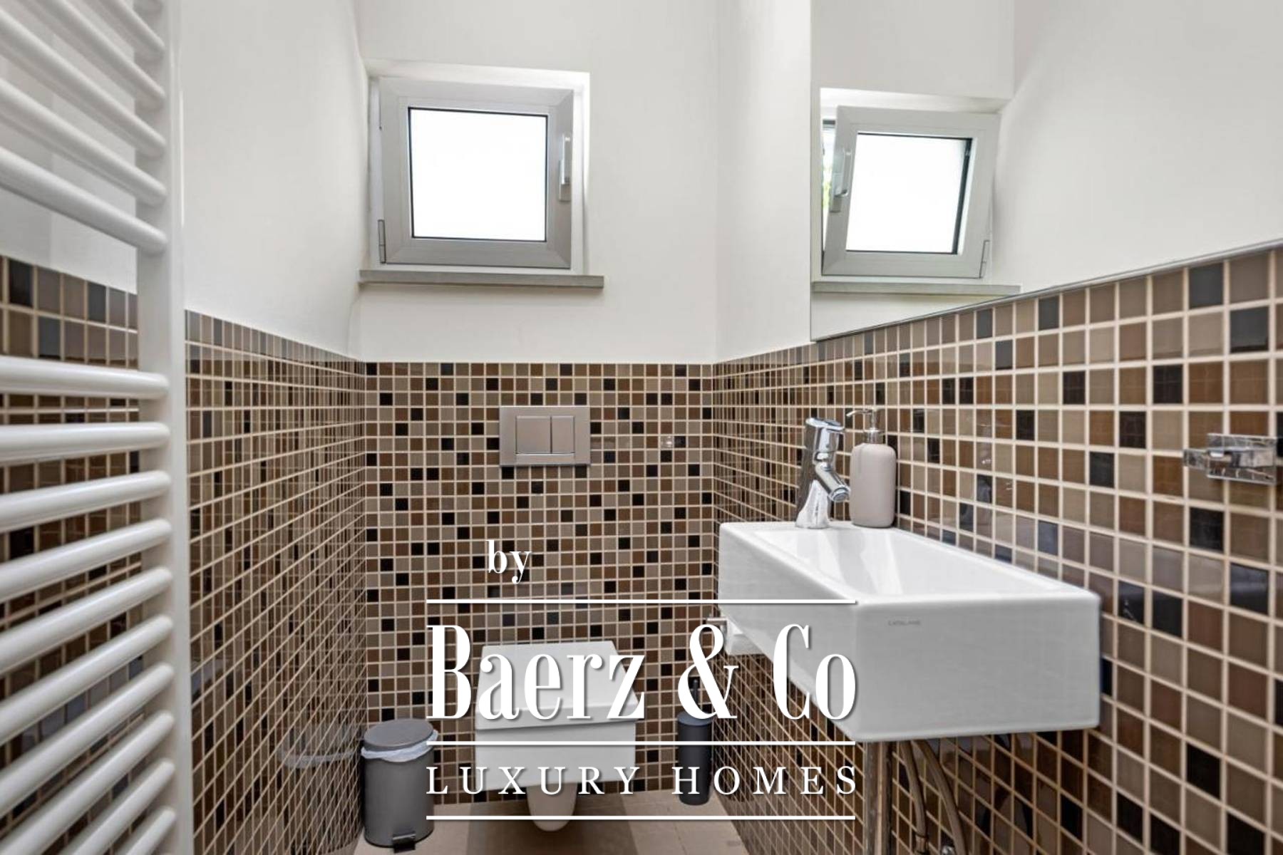 The layout encompasses four bedrooms and four bathrooms, each featuring refined Italian ceramic finishes across two well-organized levels. Air conditioning and central heating assure comfort throughout the seasons. On the lower floor, amenities include a dedicated laundry space, additional bathroom, and an entertainment area.