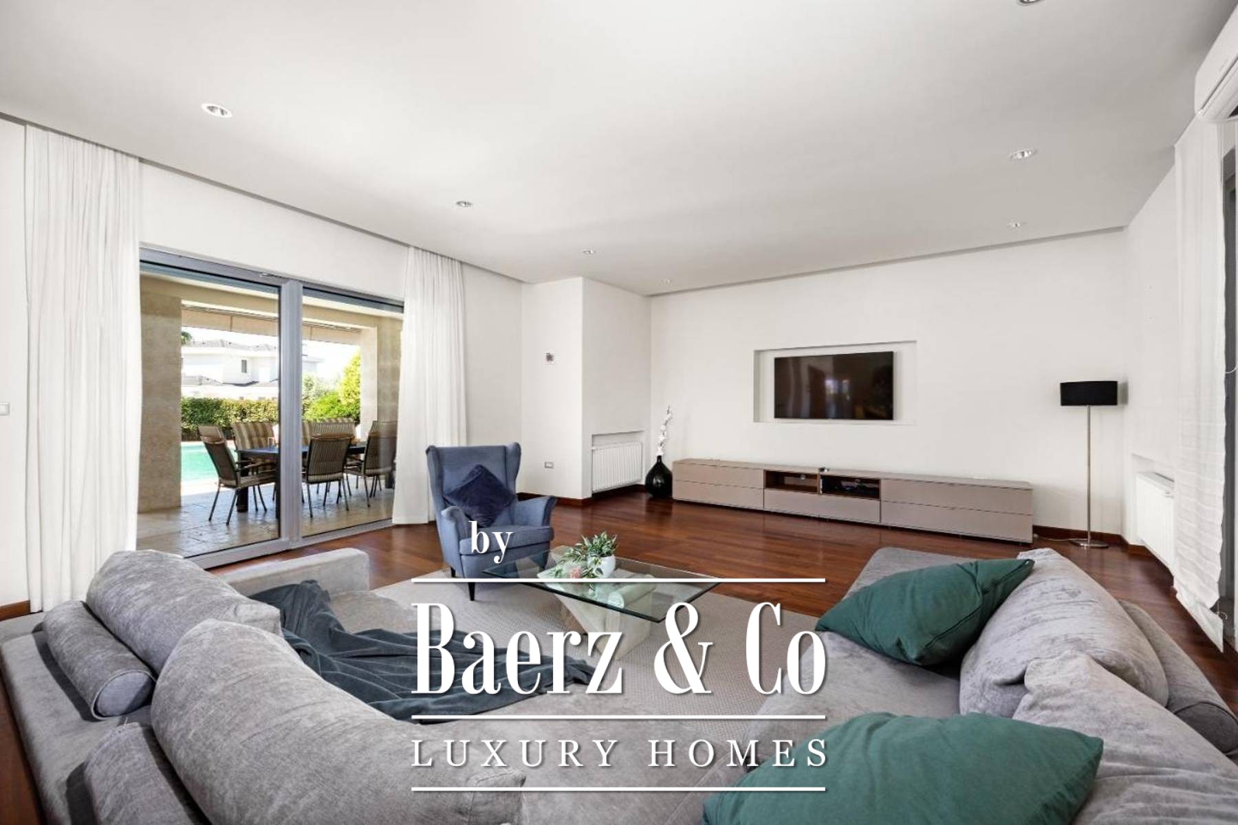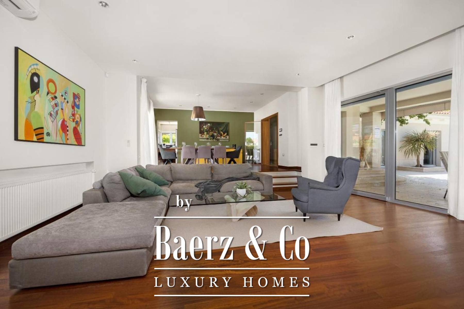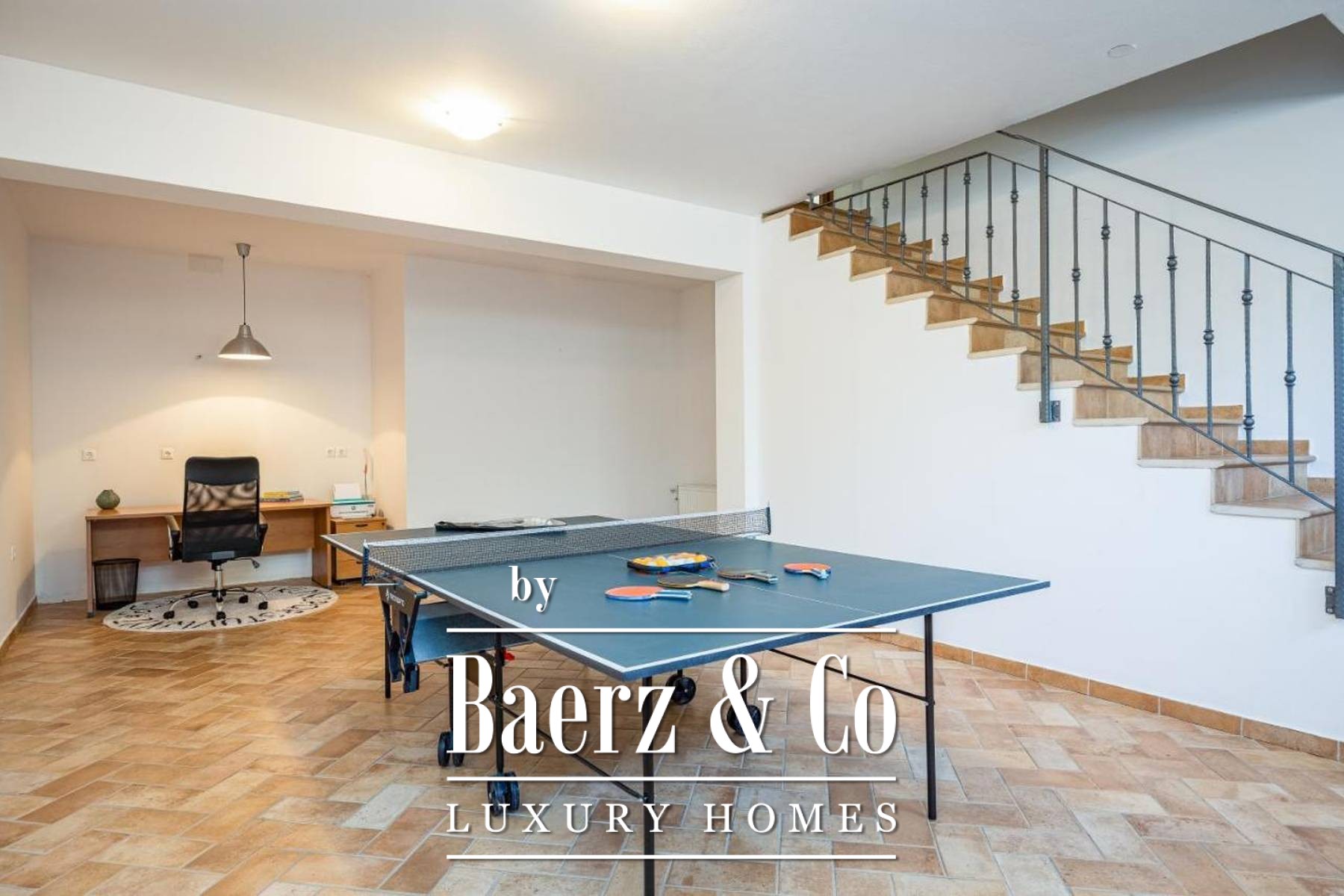 The layout encompasses four bedrooms and four bathrooms, each featuring refined Italian ceramic finishes across two well-organized levels. Air conditioning and central heating assure comfort throughout the seasons. On the lower floor, amenities include a dedicated laundry space, additional bathroom, and an entertainment area.
