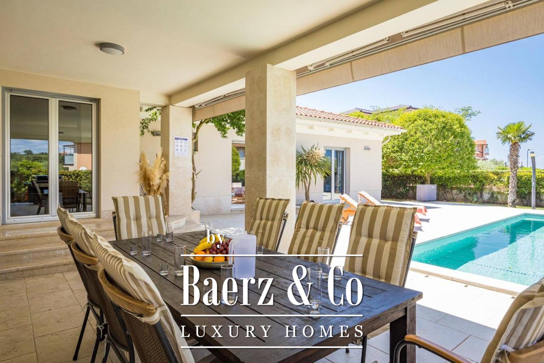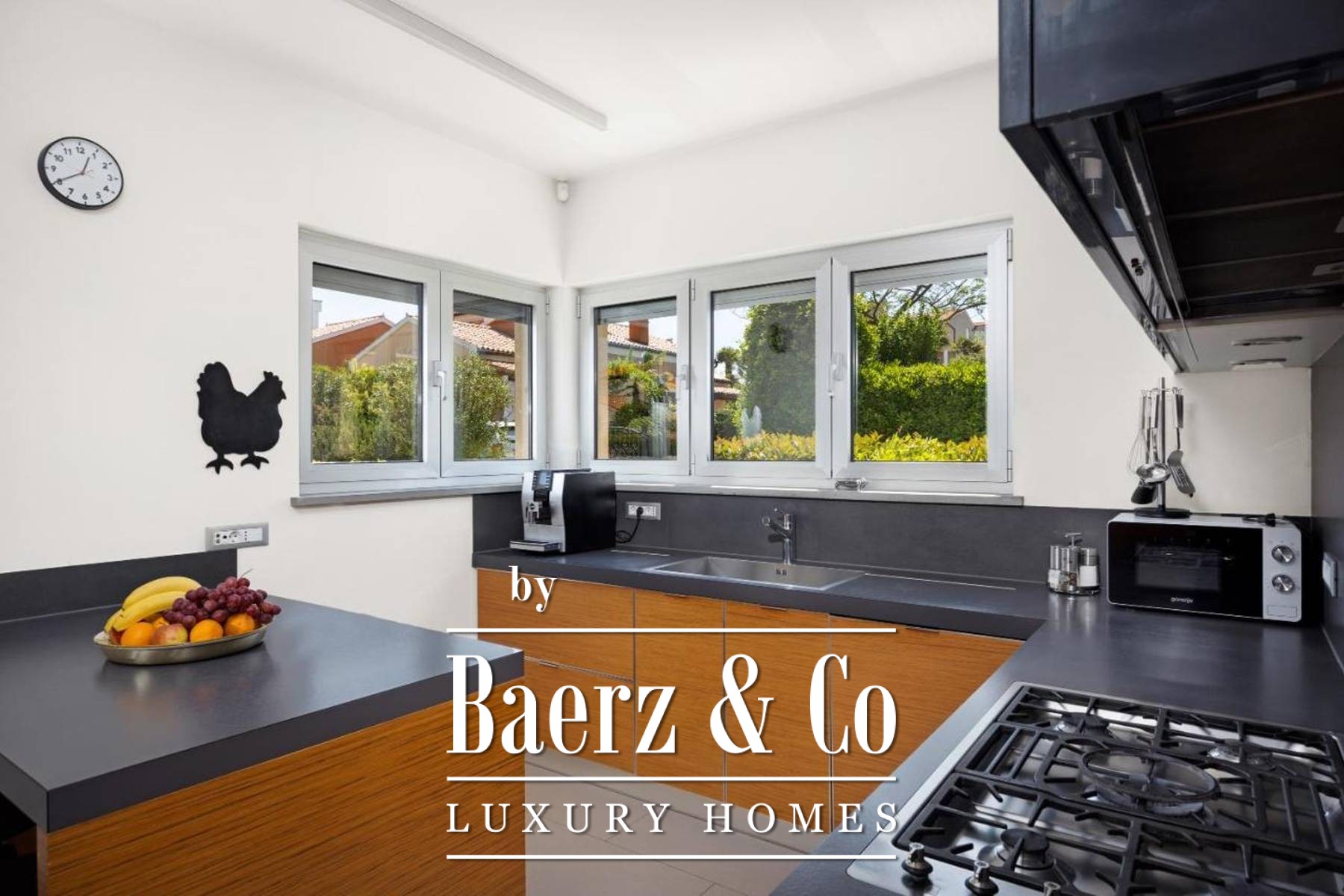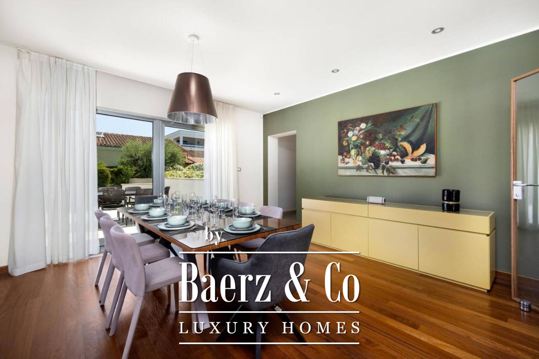 Townhouse Medulin offers an understated retreat on Croatia’s verdant Banjole peninsula, set within a peaceful neighbourhood close to the sea. The 277 m² property unfolds over two floors, surrounded by a secluded 1,073 m² garden designed for privacy and calm. Approach through a direct-access garage, where the interior reveals a luminous entrance hall flowing into a generous living area. A modern kitchen, fitted with Italian cabinetry, connects seamlessly to a covered stone terrace and heated pool, inviting year-round enjoyment and views over mature greenery.