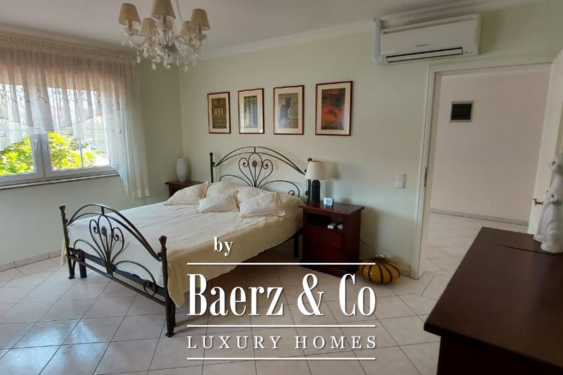 The residence extends over 380 m² on a 700 m² plot, merging interior expanse with curated outdoor space. Upon entry, a generous living room invites calm, opening to a 60 m² covered terrace that looks onto mature gardens, where carefully selected horticulture grounds time. The kitchen is expansive and meticulously appointed, supporting both daily rituals and larger gatherings. A dedicated study offers seclusion while maintaining a connection to the domestic rhythm.