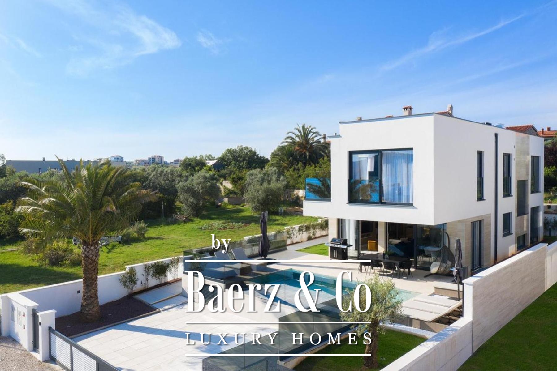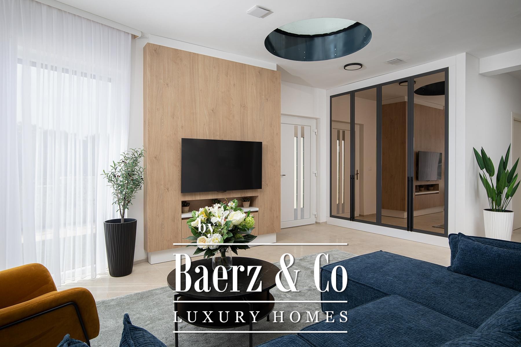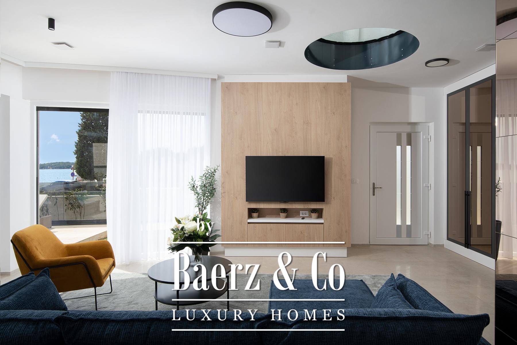 Townhouse Medulin stands in the centre of Medulin, Croatia, a property where 340 m² of contemporary living space and direct access to the Adriatic converge. This townhouse Medulin is only a few meters from the water, placing you within reach of the luminous edge of southern Istria. Set on a plot of 503 m², the residence unfolds across three levels, each designed for clarity, comfort, and connection to the outdoors.