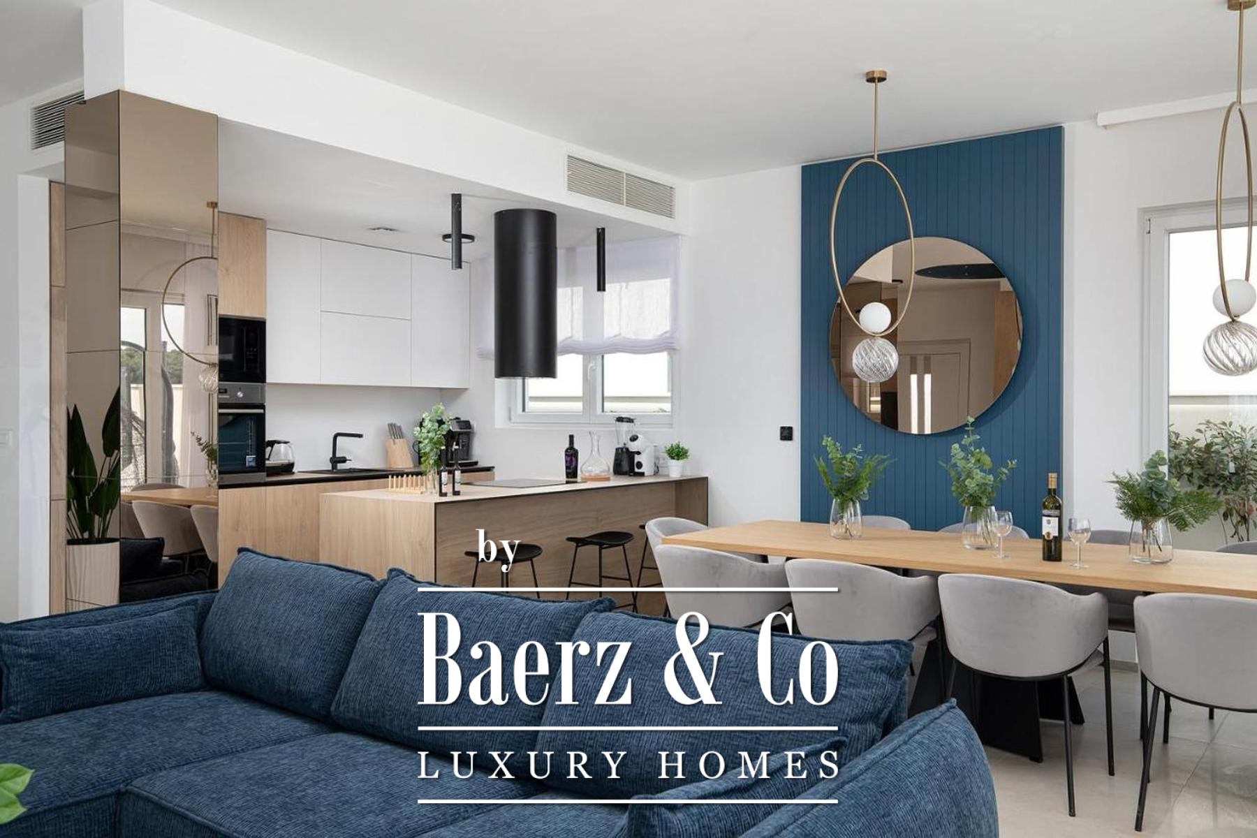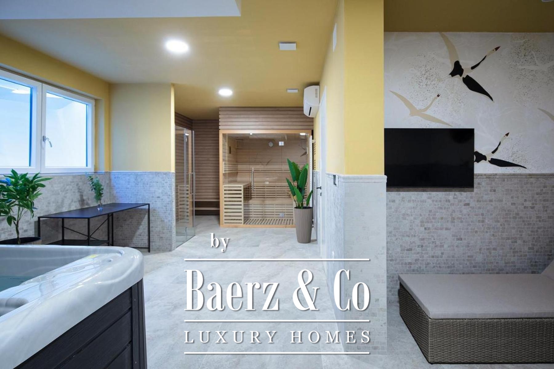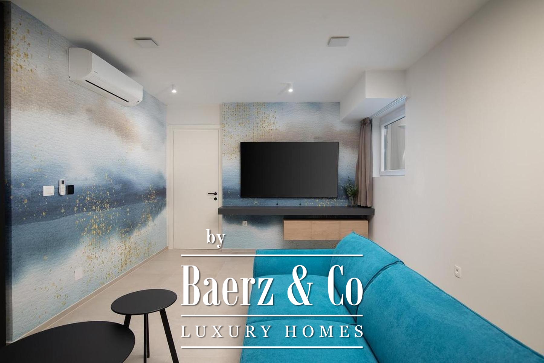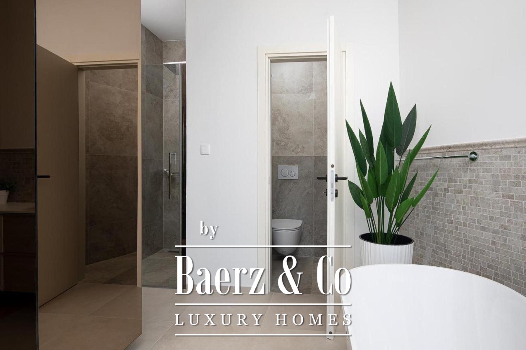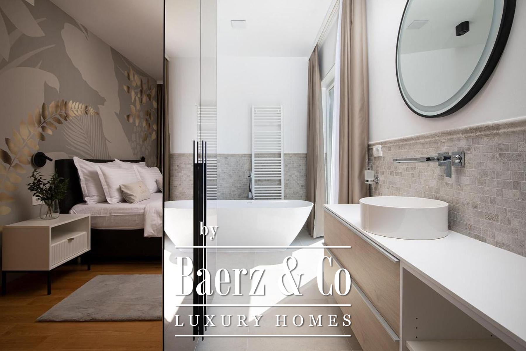 Upstairs, five bedrooms each offer their own bathroom, privacy, and vast glass walls framing serene views of the sea and surrounding pine forest. The interplay of sunset light and natural material defines the home’s refined presence. Underfloor heating, a heat pump system, and full air conditioning ensure year-round comfort across every detail. This luxury townhouse for sale in Medulin is a carefully curated retreat, expressing a Mediterranean rhythm in both its architecture and atmosphere.