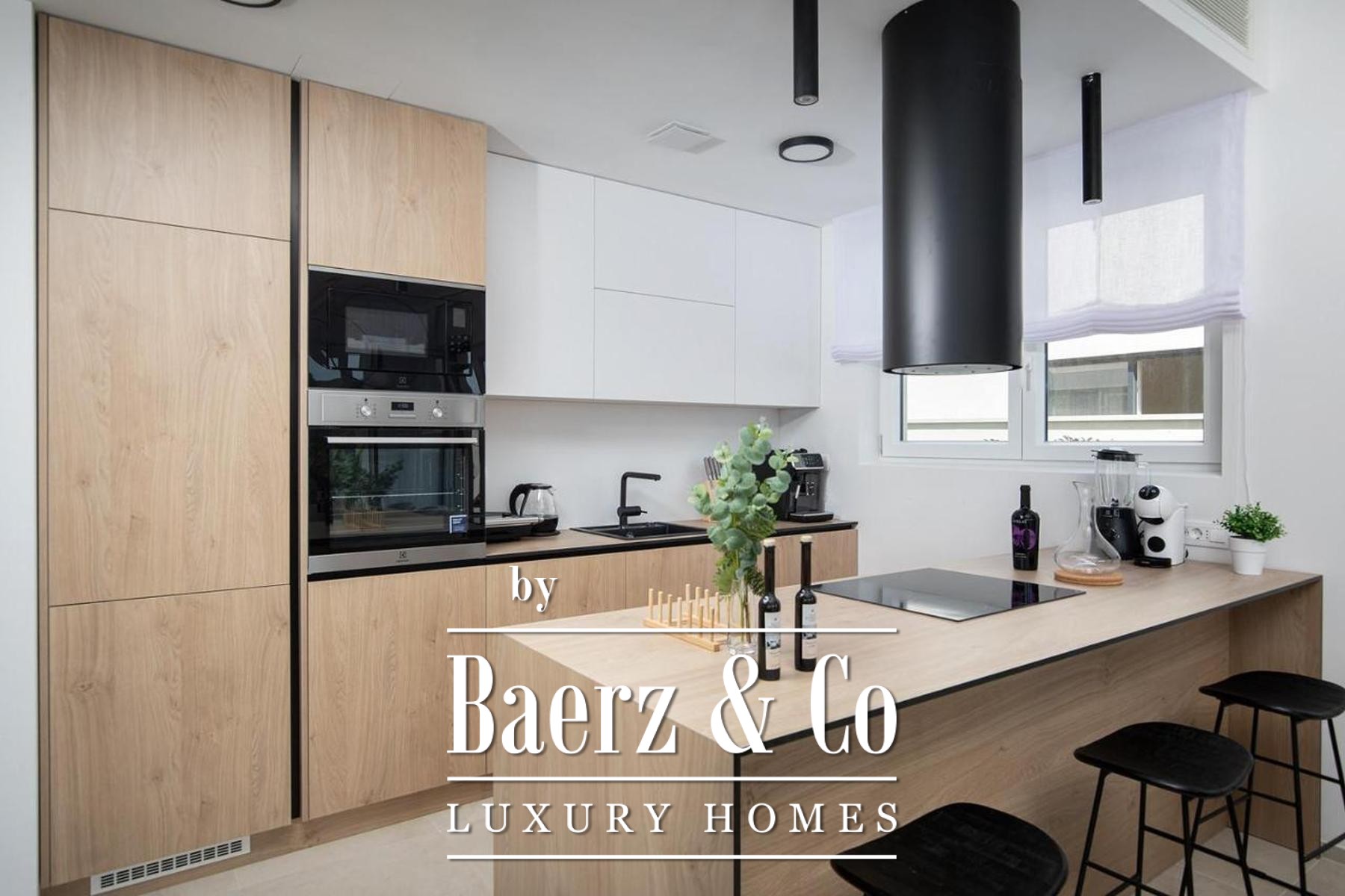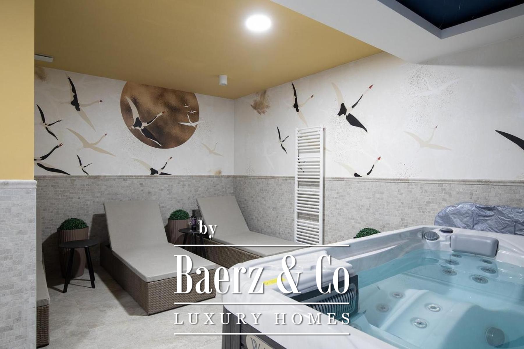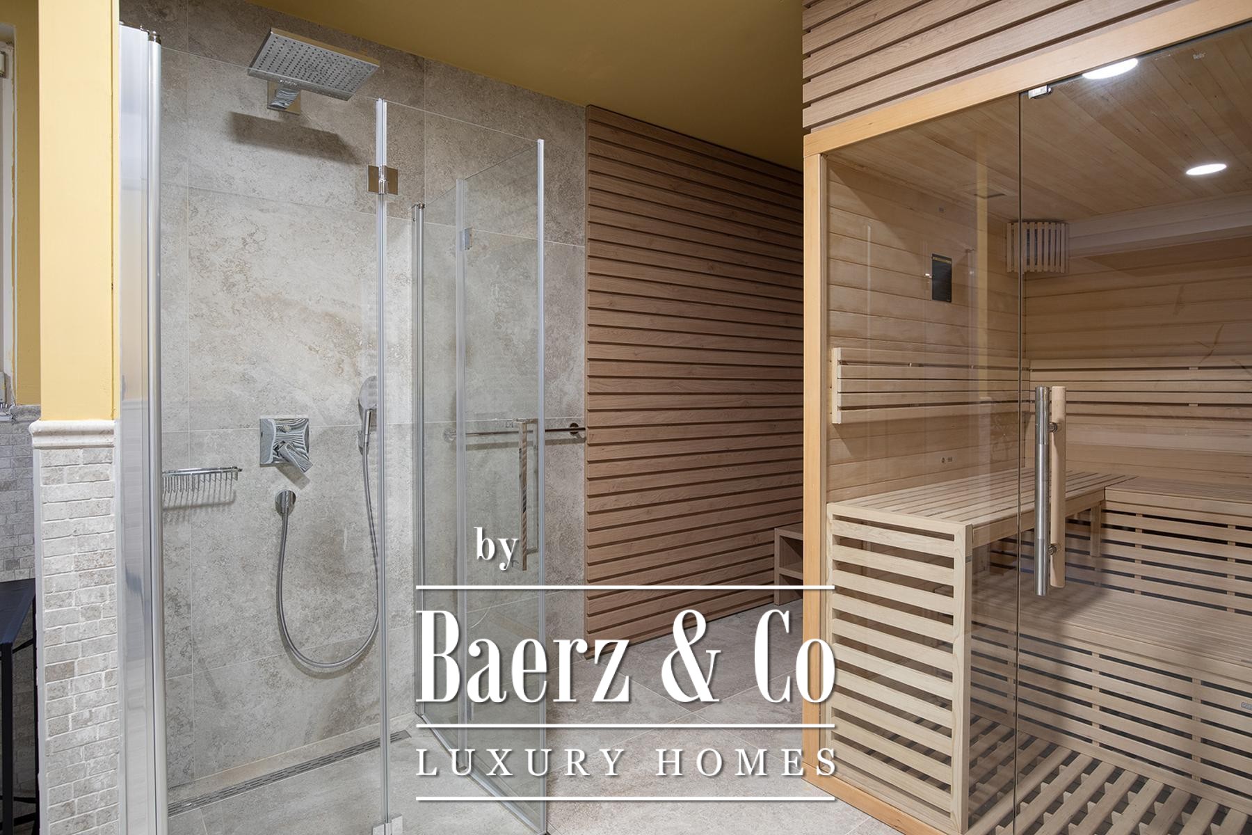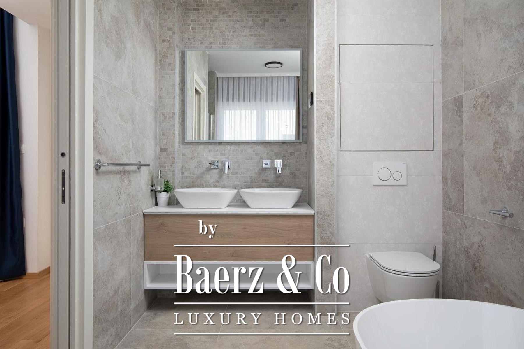 Upstairs, five bedrooms each offer their own bathroom, privacy, and vast glass walls framing serene views of the sea and surrounding pine forest. The interplay of sunset light and natural material defines the home’s refined presence. Underfloor heating, a heat pump system, and full air conditioning ensure year-round comfort across every detail. This luxury townhouse for sale in Medulin is a carefully curated retreat, expressing a Mediterranean rhythm in both its architecture and atmosphere.