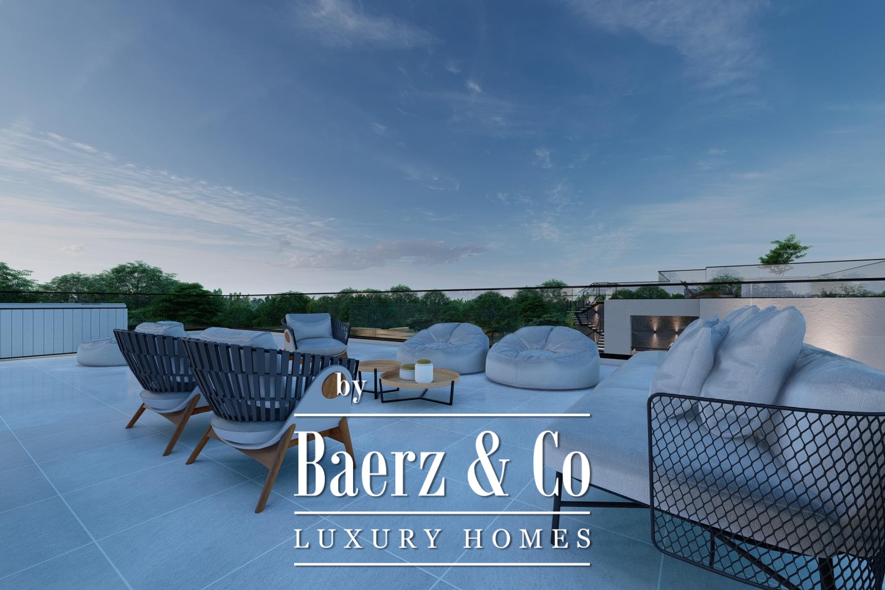 Air-conditioning, underfloor heating, and a heat pump system deliver year-round comfort. Four parking spaces, of which two are covered, provide secure access. The expected completion is October 2025, with quality materials and attentive finishes integral throughout.