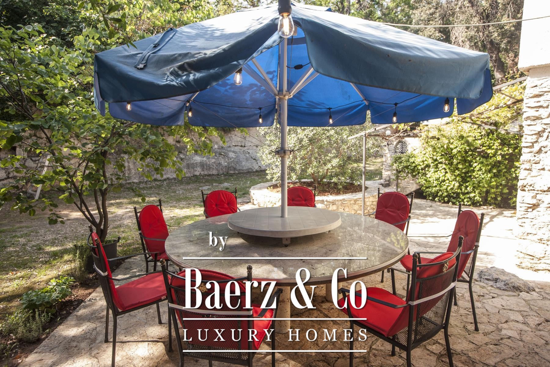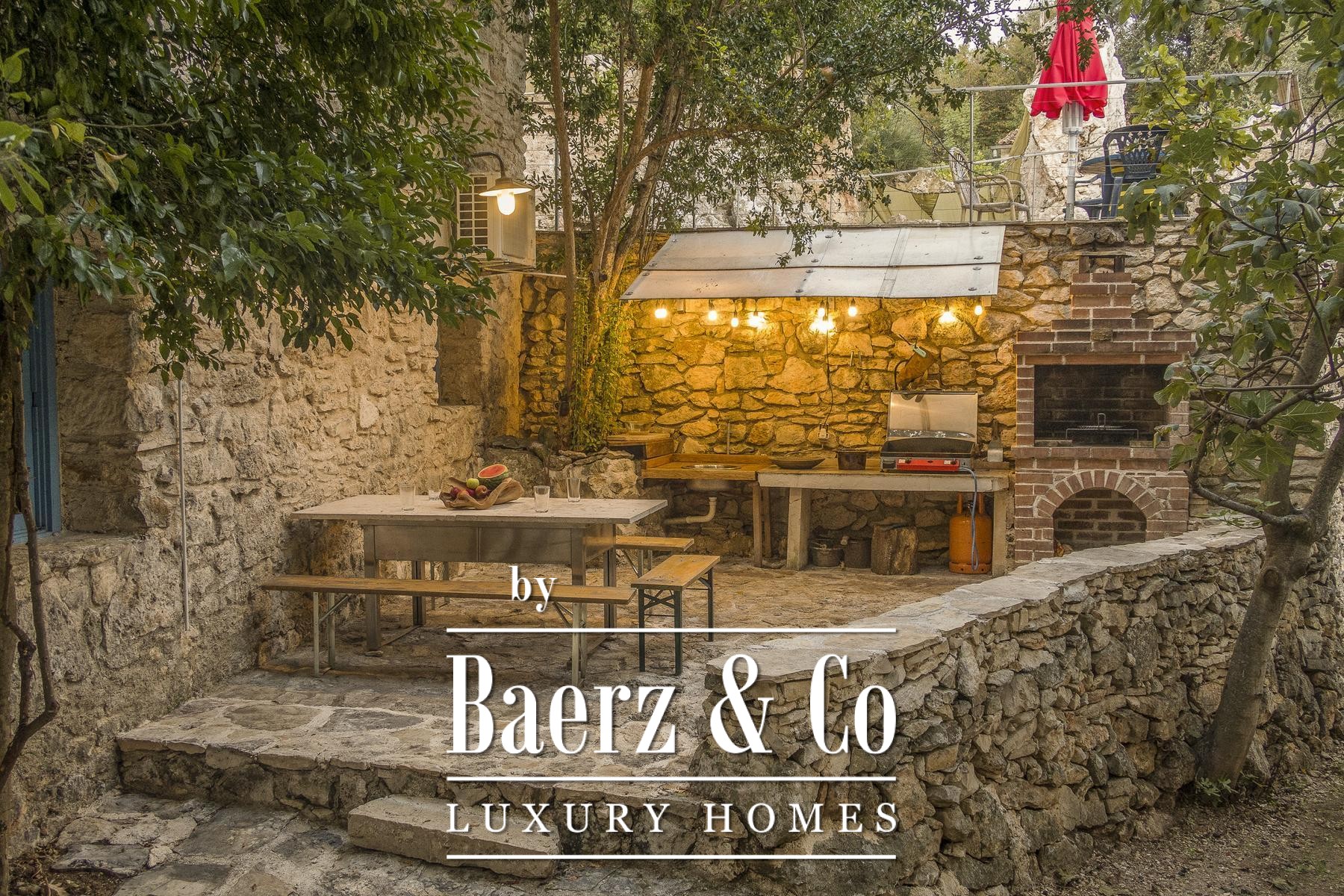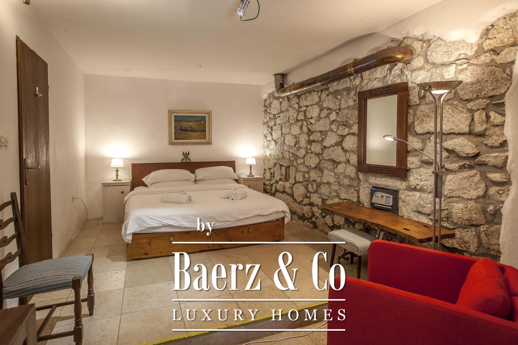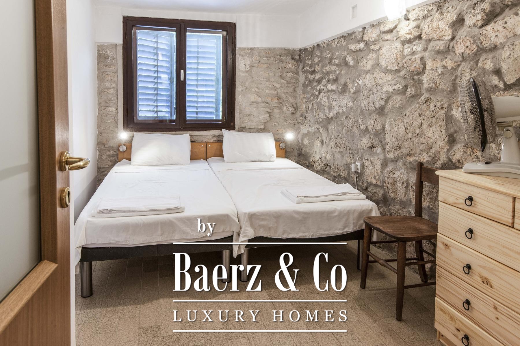 The outdoor spaces are quietly impressive: beneath a sheltering stone outcrop lies a heated and cooled pool measuring 8 by 7 metres alongside a secluded outdoor kitchen. Mature gardens and forested edges envelop the home, ensuring peace and discretion within moments of Pula. Refined yet authentic, this townhouse Medulin balances layered history, versatility, and privacy in a setting connected to nature’s unhurried rhythms.