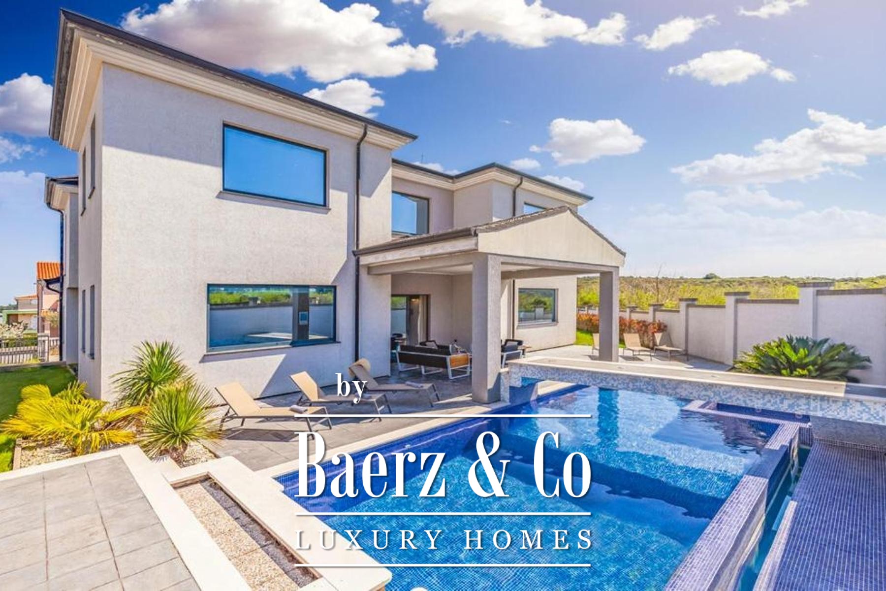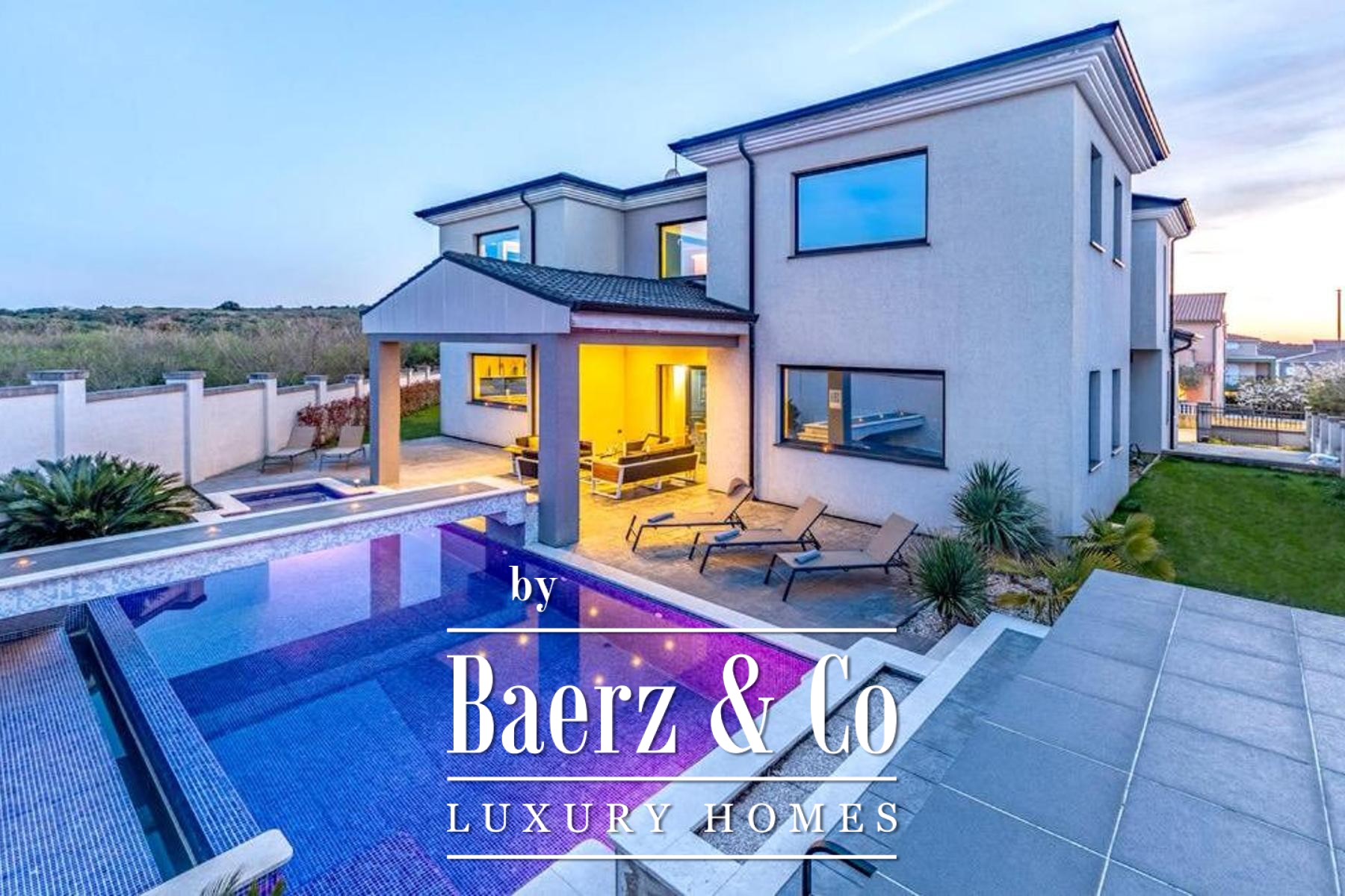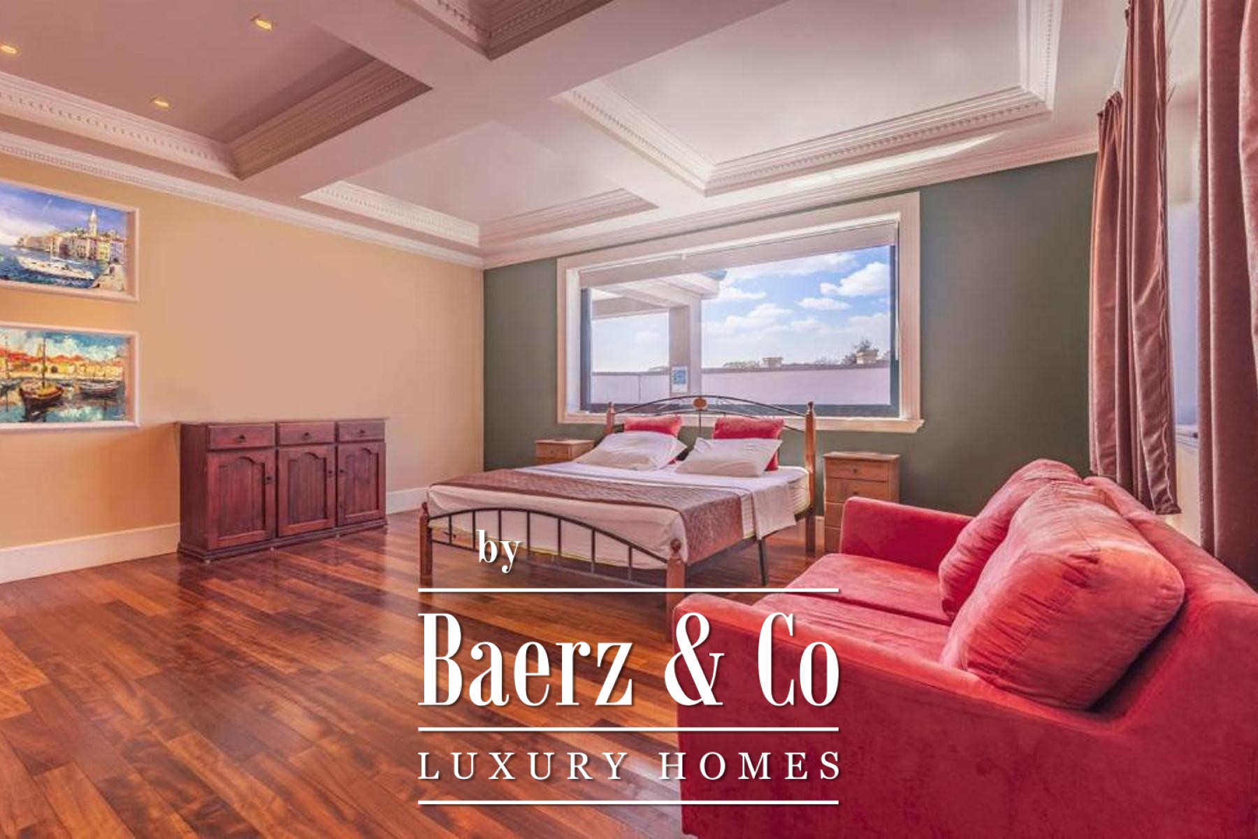 Townhouse Medulin embodies a fusion of contemporary design and generous scale, offering 490 m² of luminous living space distributed across two carefully composed floors. This property centers around a spacious lobby and a living room anchored by a fireplace, with seamless flow to the kitchen, dining area, and a large ground floor bedroom. Every element, from the dressing area to the billiard room, contributes to an atmosphere of understated confidence.