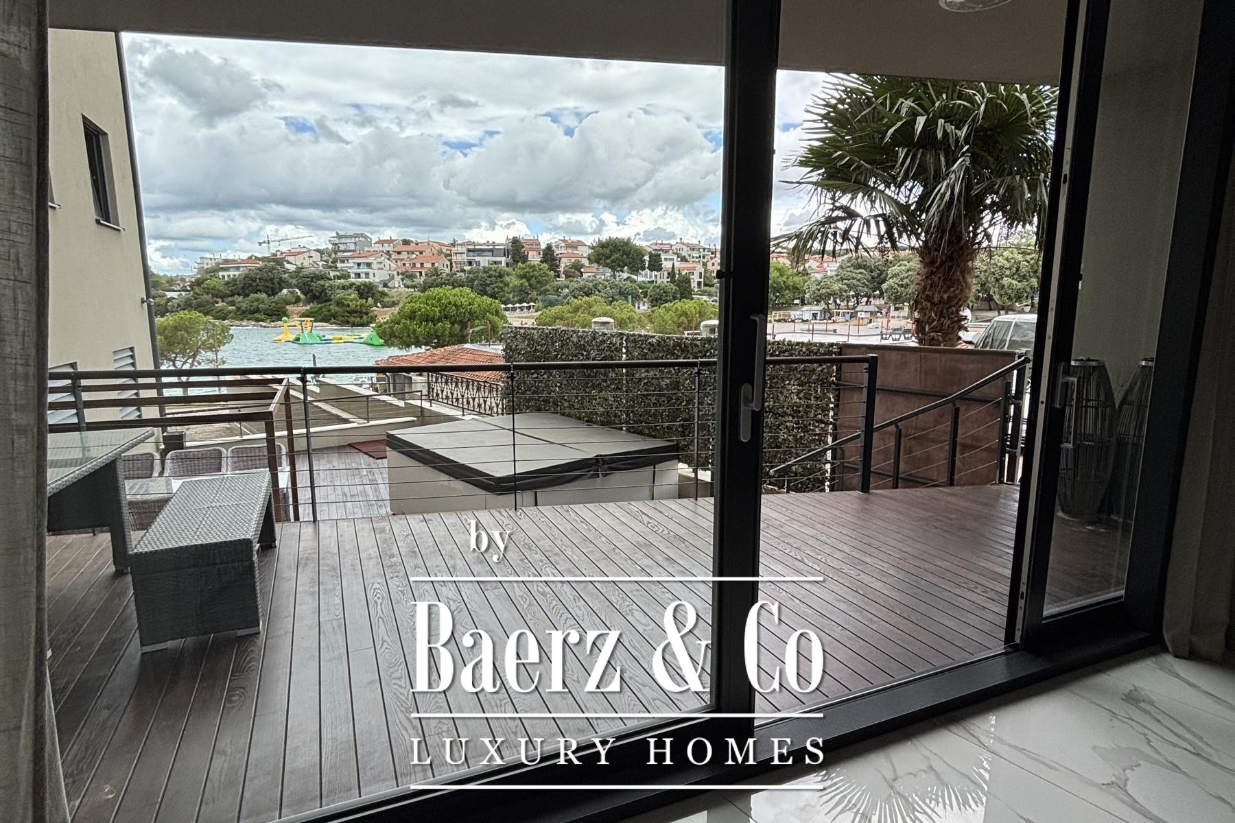 In our offer we offer a rare property located in the attractive tourist resort of Pješčana uvala, located on the ground floor of a newer building, first row to the sea, with a total net area of 206.01 m2.The apartment consists of an entrance hall, kitchen, dining room, living room, two spacious covered terraces where there is a jacuzzi with a direct view of the sea, three bathrooms, utility room, four bedrooms, garden and one uncovered parking space. While in the basement of the building