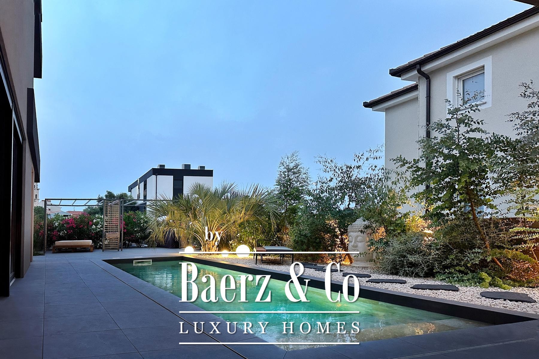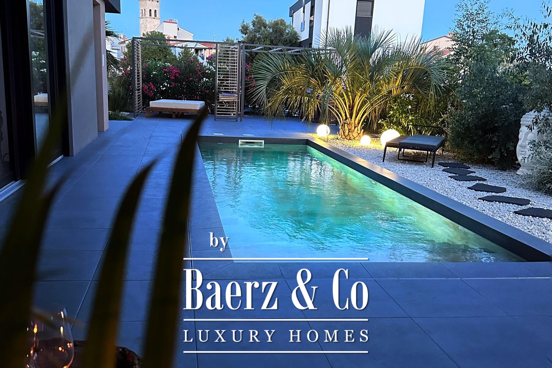 Villa Premantura Medulin is set on a carefully landscaped 710 m² plot at the southern edge of the Istrian peninsula. This property extends over 205 m², offering a sense of tranquility with understated architectural lines and natural light shaping each space. The ground floor welcomes you into a large living room, defined by warm tones, custom furnishings, and a fireplace that anchors the atmosphere. Floor-to-ceiling glass opens to reveal the swimming pool and garden, forging a seamless blend between indoors and out. A comfortable kitchen, a bedroom, a guest toilet, utility rooms, and access to the backyard encourage both relaxed living and practical intention.