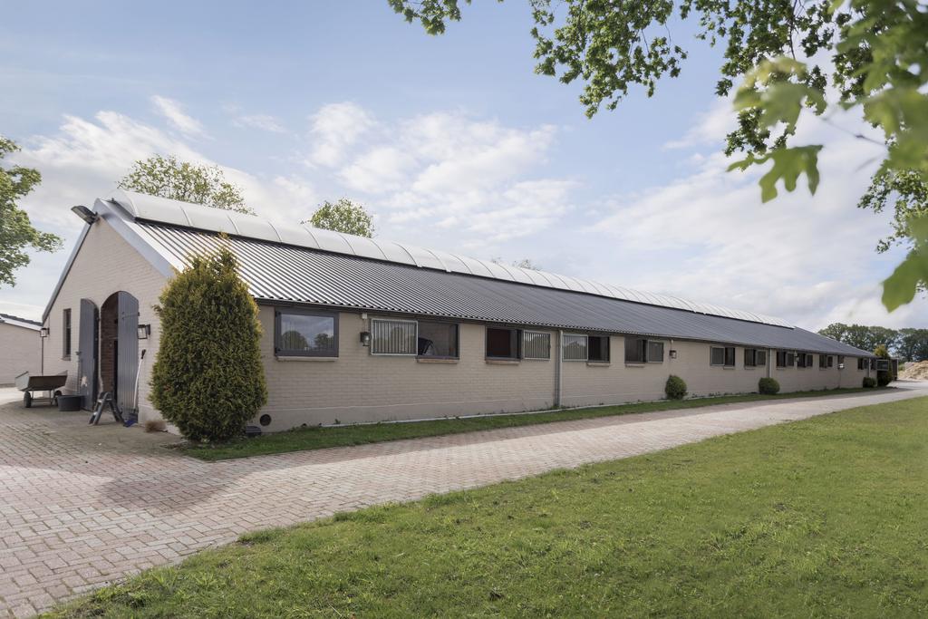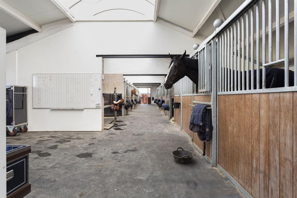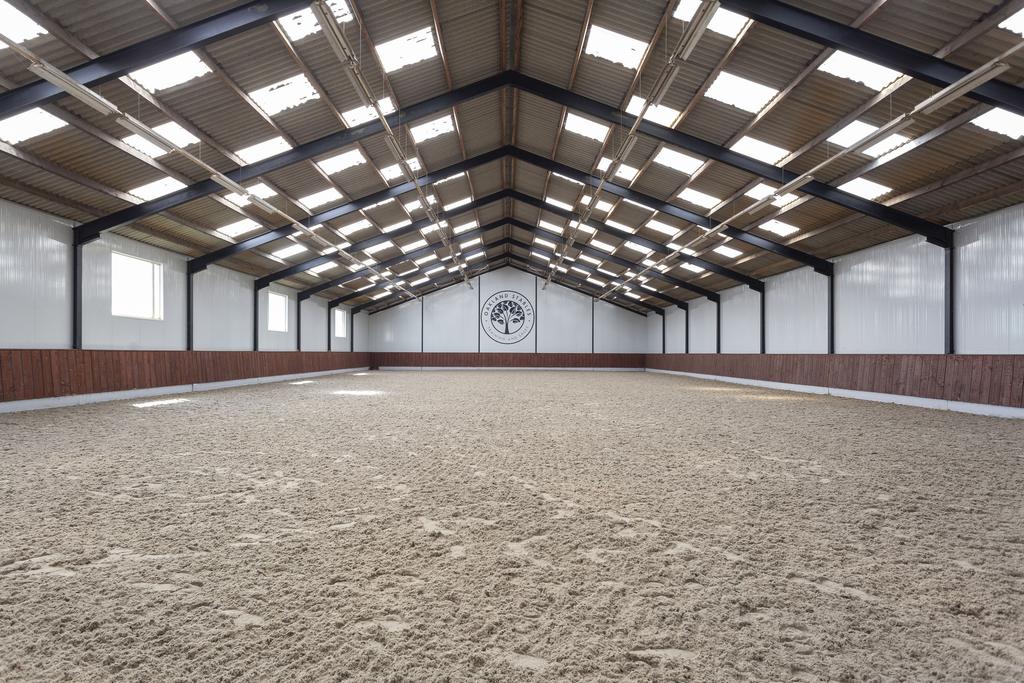 The indoor arena (approx. 21 x 45 metres) is equipped with an ebb and flow floor (Wijlaars, approx. December 2019) with a new wooden arena edge. Large sliding doors in the side wall provide access to the yard.