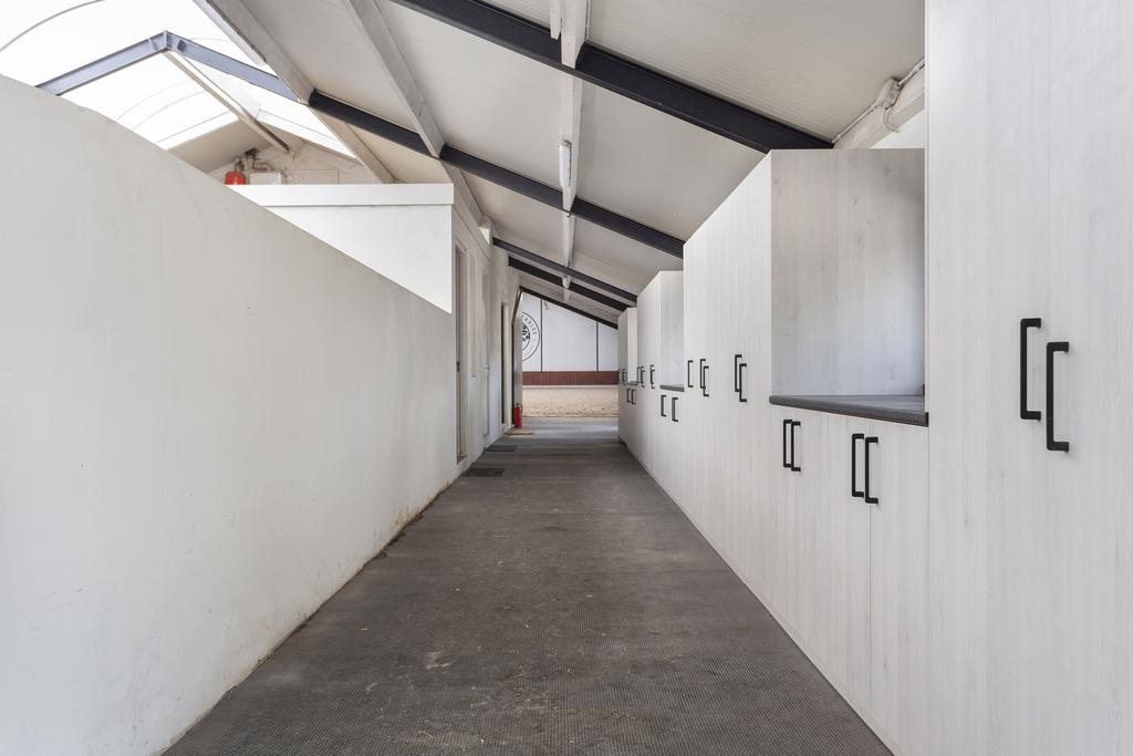 The corridor from the stables to the indoor arena is fitted with new cupboards that provide plenty of storage space for blankets and saddle cloths, for example.
