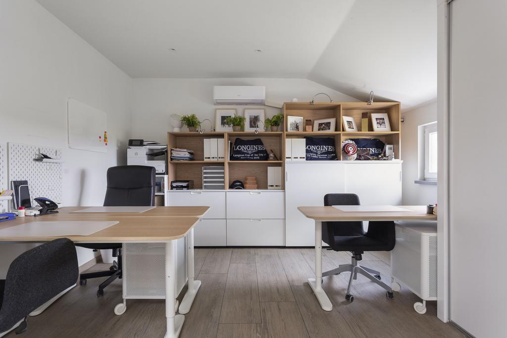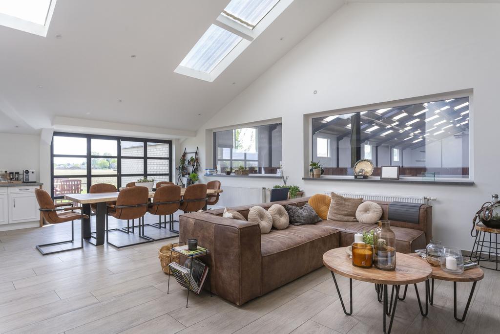 The beautifully finished and insulated reception area with adjoining office space has a wood-look tiled floor with partial underfloor heating. This room has air conditioning. Two renovated large windows offer direct views of the indoor arena. The reception area has a kitchen unit with dishwasher, sink and fridge. Next to the kitchen is also a large window with doors opening onto the adjoining terrace. As a result, the room enjoys pleasant light as well as a pleasant connection to the surrounding countryside.