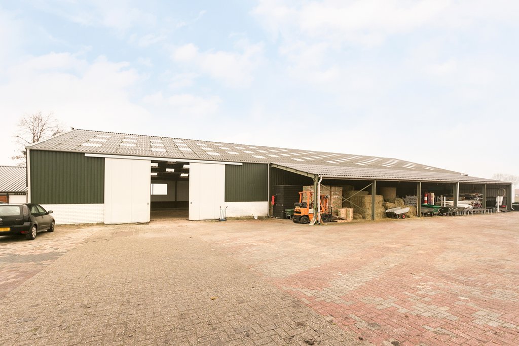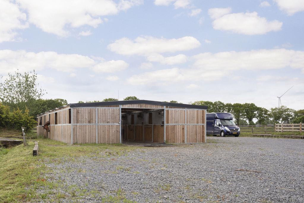 On the right side of the riding hall, a hangout was built in 2011, constructed with steel trusses and fitted with an asbestos-free corrugated iron roof. This shed (approx. 6 x 25 metres) is ideal for stabling and storing hay and straw. It has a paved floor and lighting.