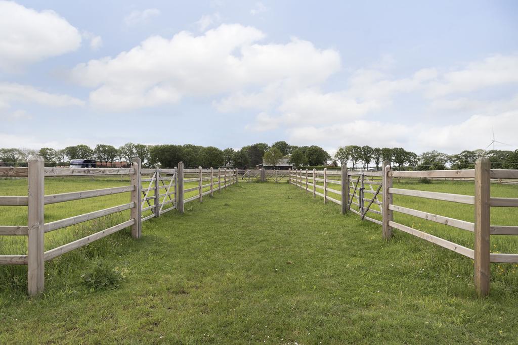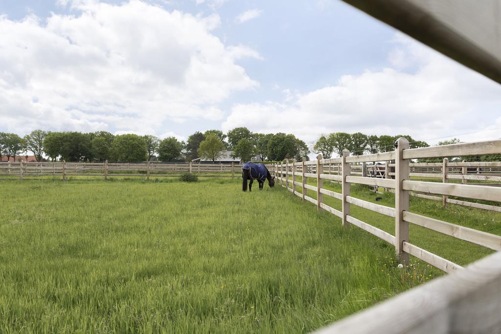 The pastures are fenced with wooden posts and electric fence. The meadows are divided into 8 parts. Some of these are separated by a centre aisle.