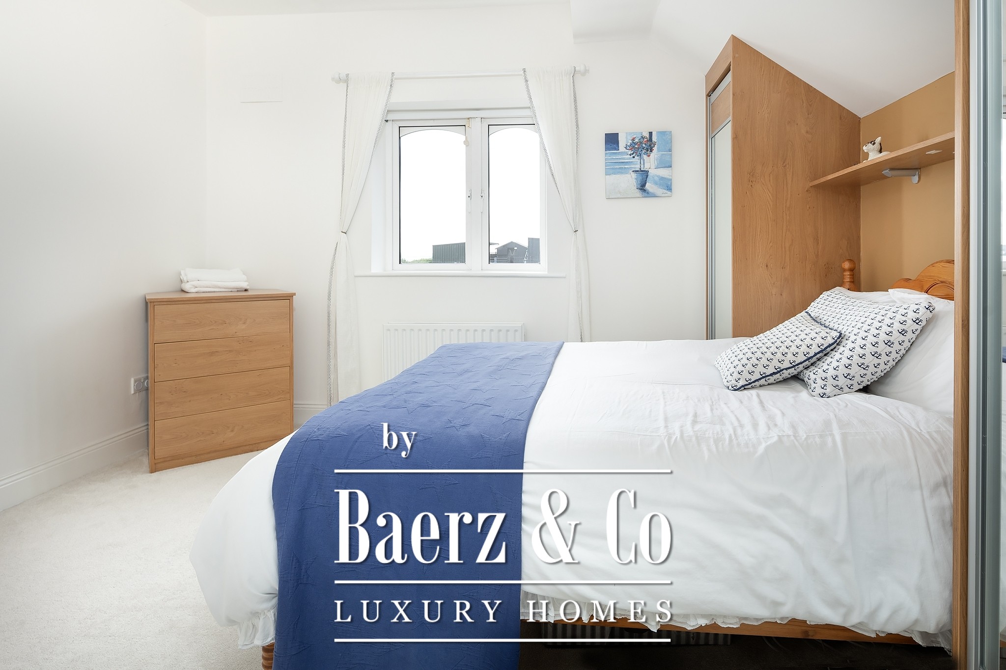 Bedroom 3 (3.9m x 4.8m) This double bedroom boasts a beautiful built-in wardrobe with a dressing table; this room also has a view overlooking the harbour.
