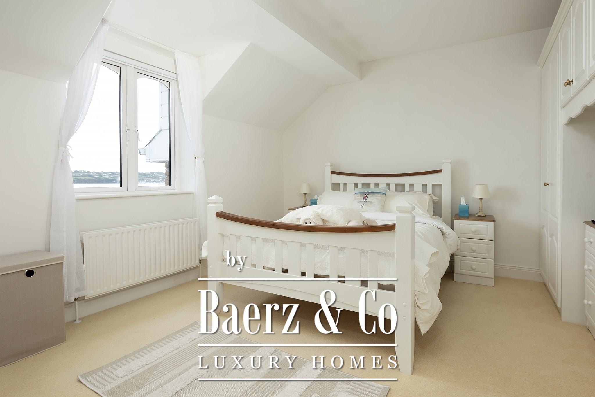 Approaching this truly unique south-facing home, you will notice the stone wall entrance and electric gates. The property is well set back from the road, providing fantastic privacy, and enjoys panoramic harbour views.