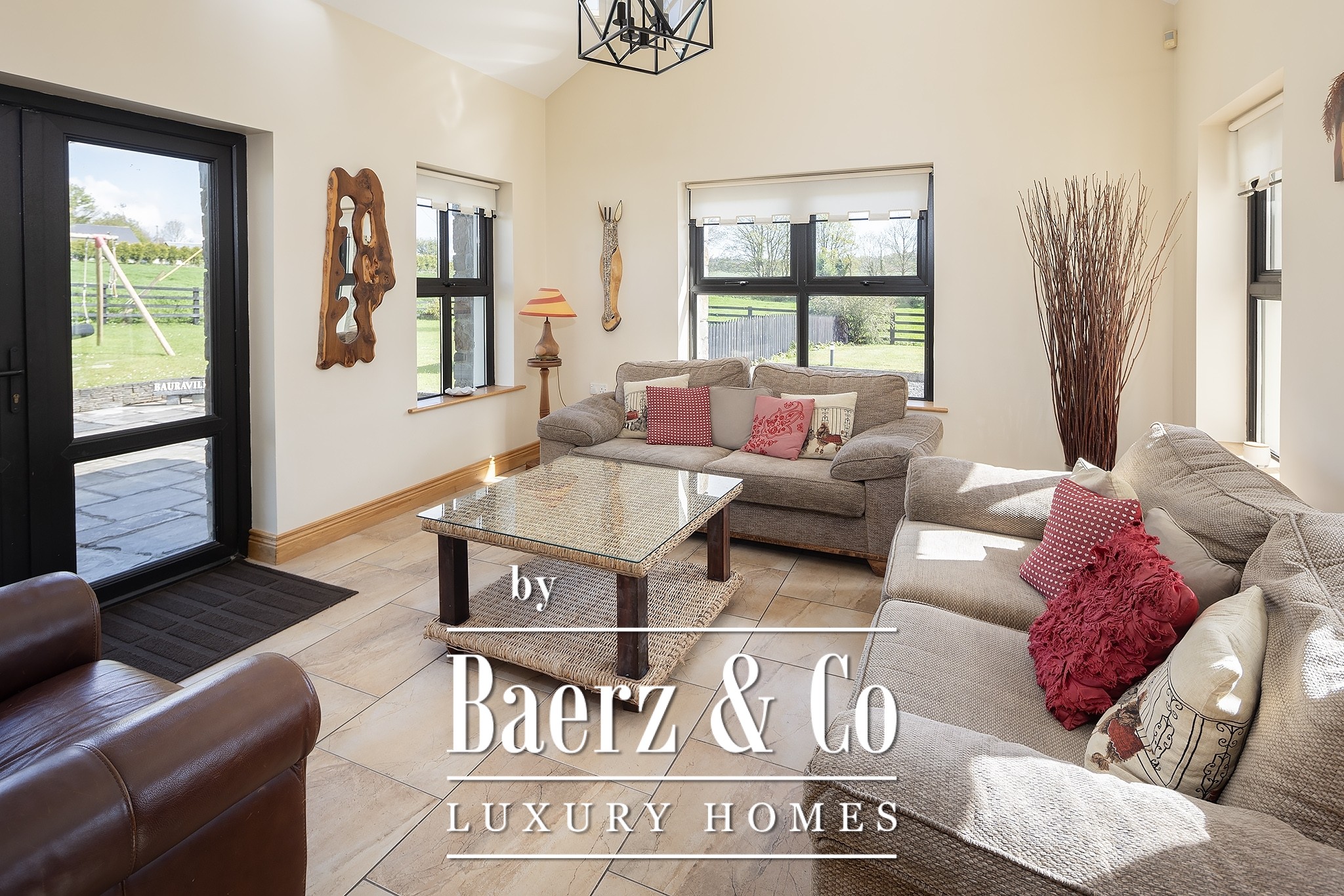 Set on expansive, private grounds, Bauravilla offers beautifully maintained gardens, a traditional stone entrance with electric gates, a sweeping gravel driveway, large rear patio, mature trees that provide both beauty and privacy, and the kids will love the rear playhouse