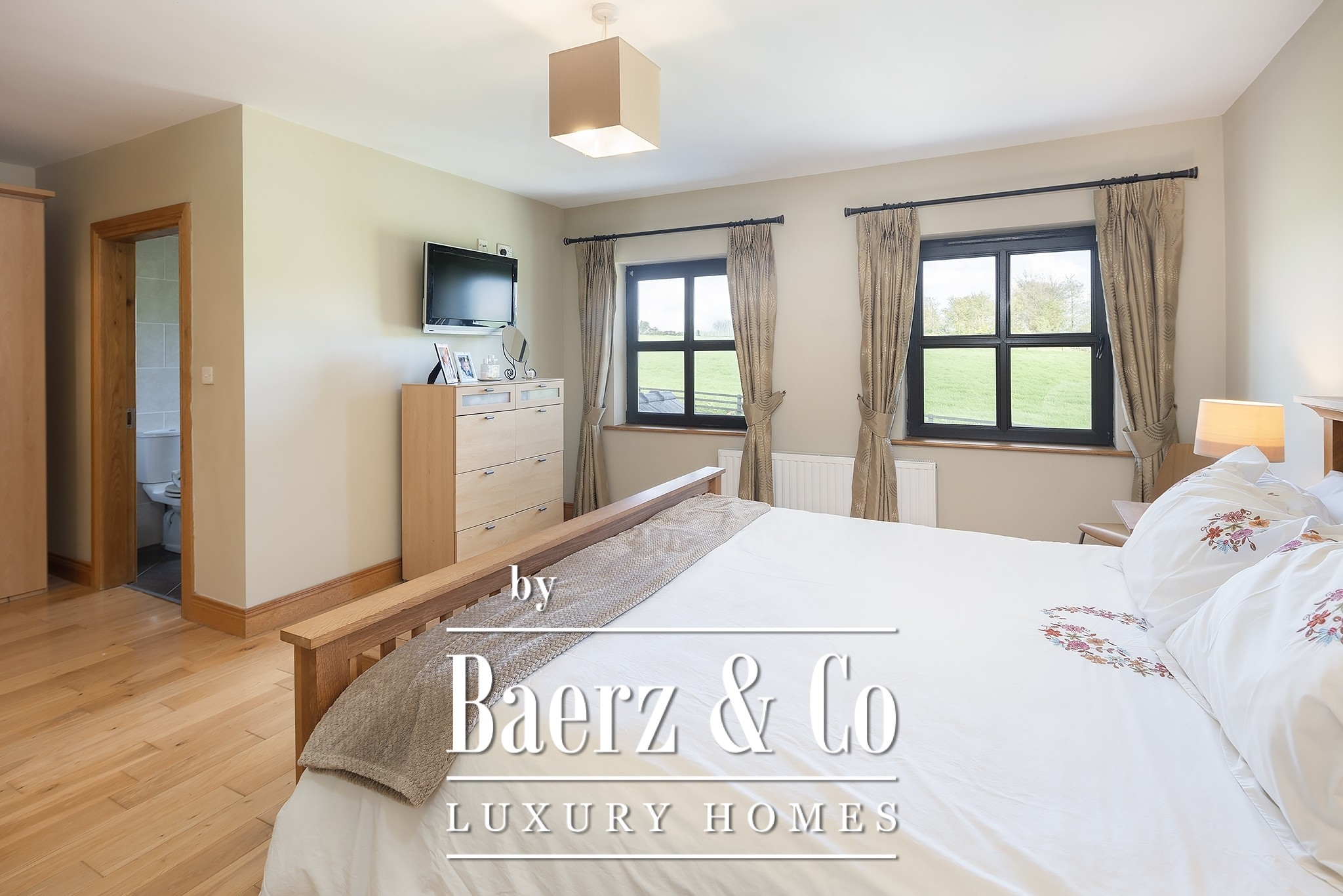 Five spacious bedrooms, three with ensuites. Each is thoughtfully designed, offering comfort and tranquility.
