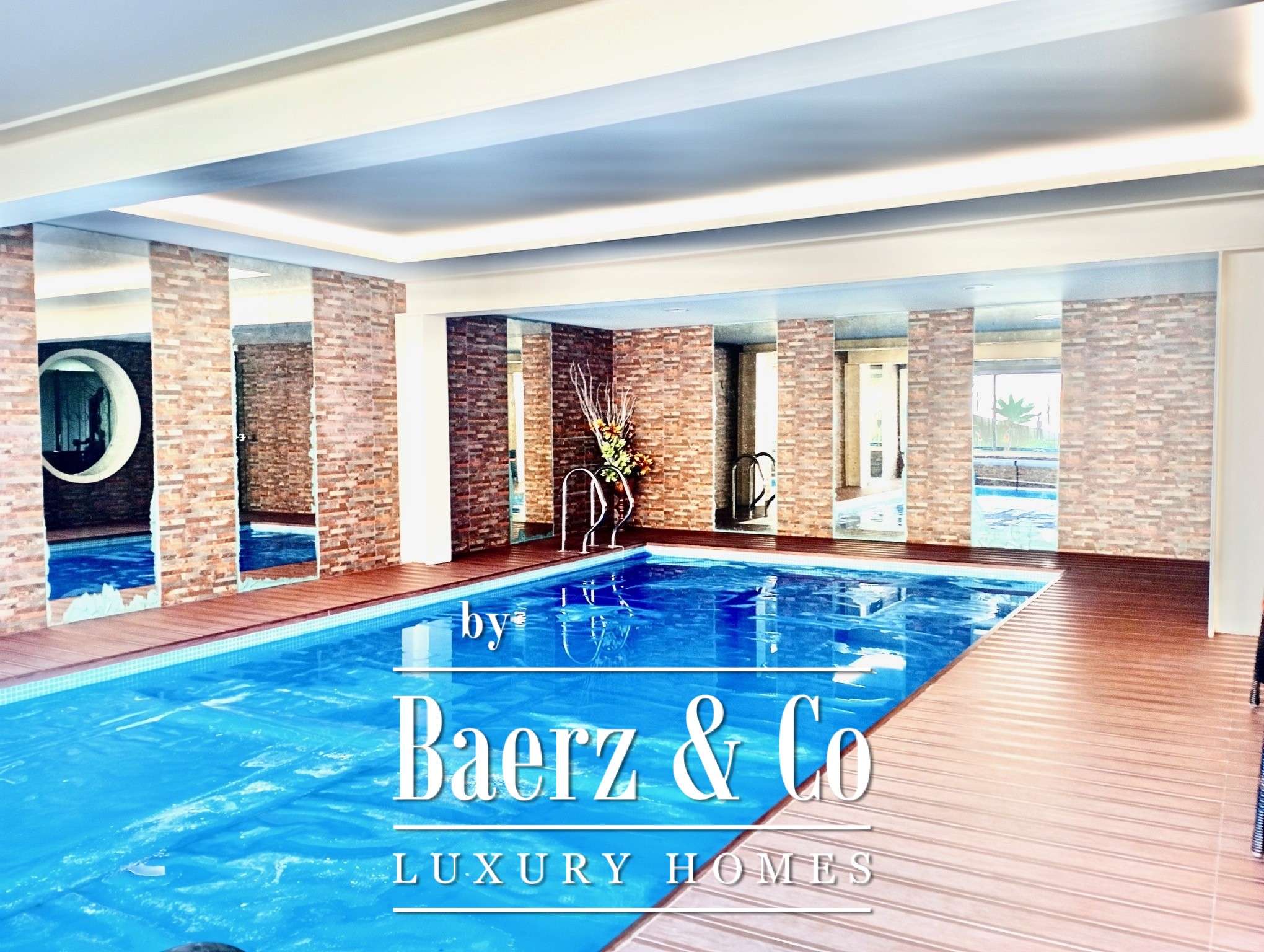 - Indoor swimming pool heated with solar panels and heat pump for year-round use