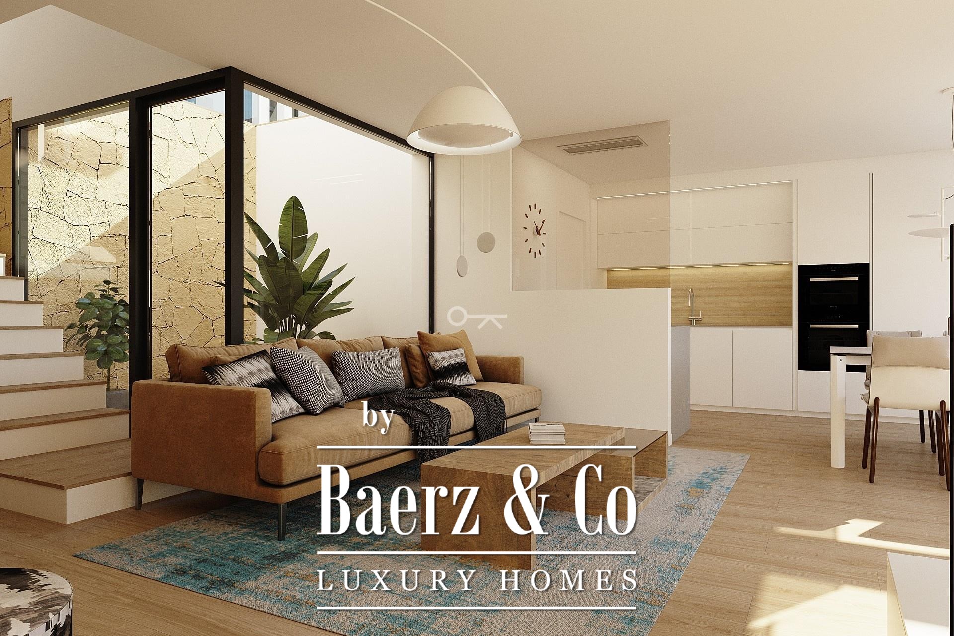 This semi detached house Monforte del Cid is positioned within an acclaimed 18-hole golf course, capturing radiant light and unobstructed views of both manicured greens and the distant mountains. With 303 m² of living area on a 334 m² plot, the residence is designed around a luminous central courtyard. The architectural layout gracefully delineates living and sleeping spaces, offering a seamless transition between interior volumes and sunlit terraces.