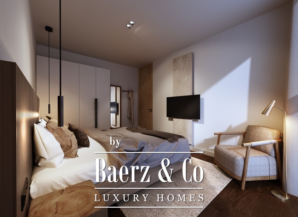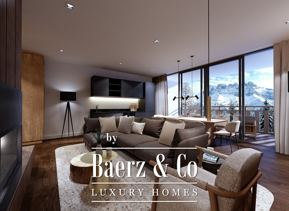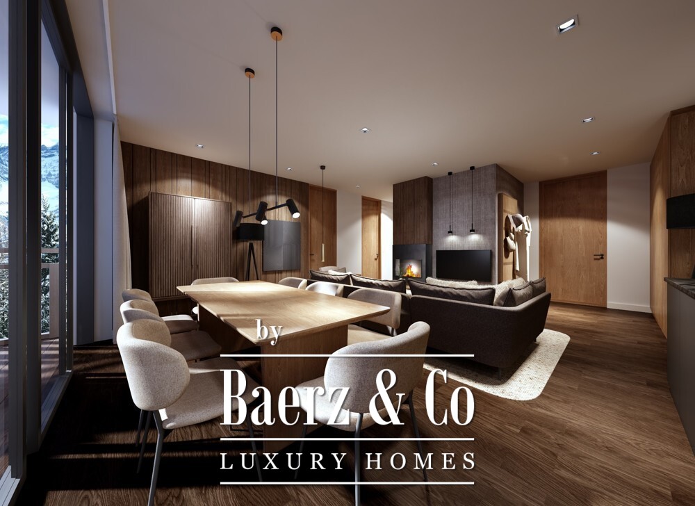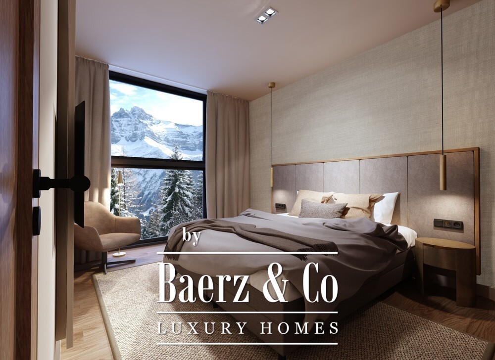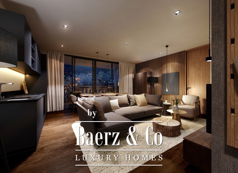 or «luxurious alpine» and experience great moments that you will never forget. The project includes three buildings, with different heights, which have an alpine-chalet-like appearance. They include a total of 33 hotel apartments. With many green spaces between the buildings, a friendly and cozy atmosphere is created, which underline the intended «nature feeling». Further, the arrangement of the buildings allows a fabulous view of the Alps and the village.