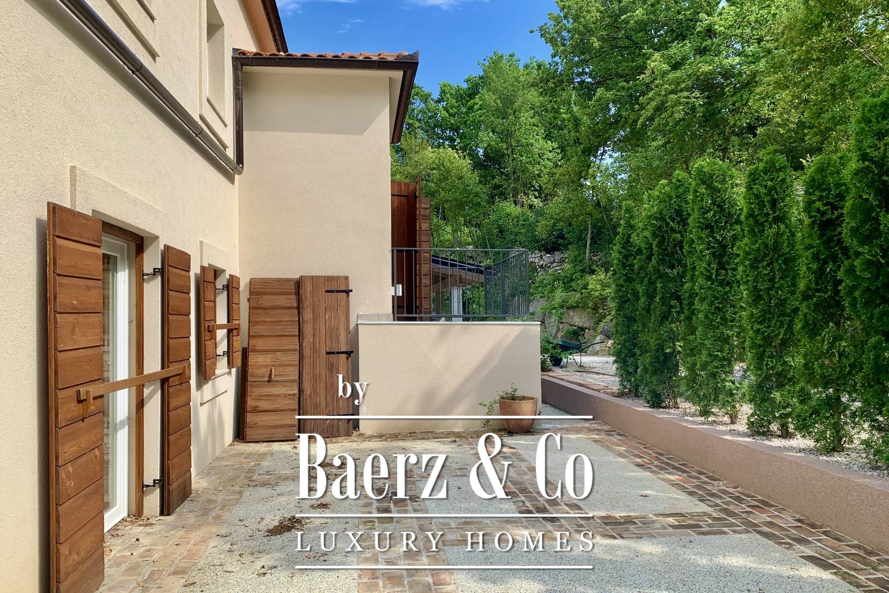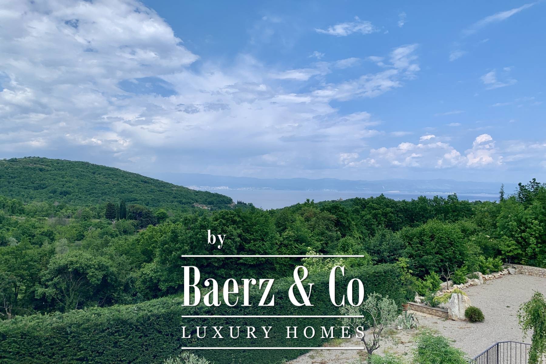 Villa Brseč with panoramic sea views presents a compelling invitation to life on the Adriatic coast. Situated in the medieval town of Brseč, perched 157 metres above the sea, this villa offers uninterrupted vistas of nature, the sea, and distant islands. The plot extends to 2,594 m², creating an atmosphere of tranquillity and seclusion rarely found along this storied coastline.