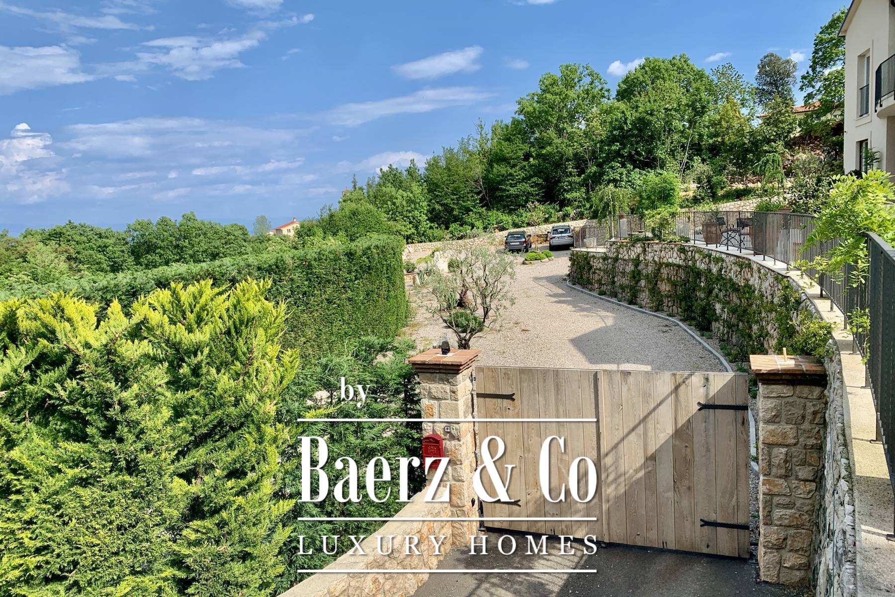 Upon arrival, a remote-controlled gate opens to reveal expansive grounds, accommodating over seven cars. The landscape, structured with thick hedges, mature citrus trees in terracotta vessels, and diverse Mediterranean flora, sets an elegant tone. Across its 430 m², the villa unfolds over four levels, anchored by bespoke elements and craft.