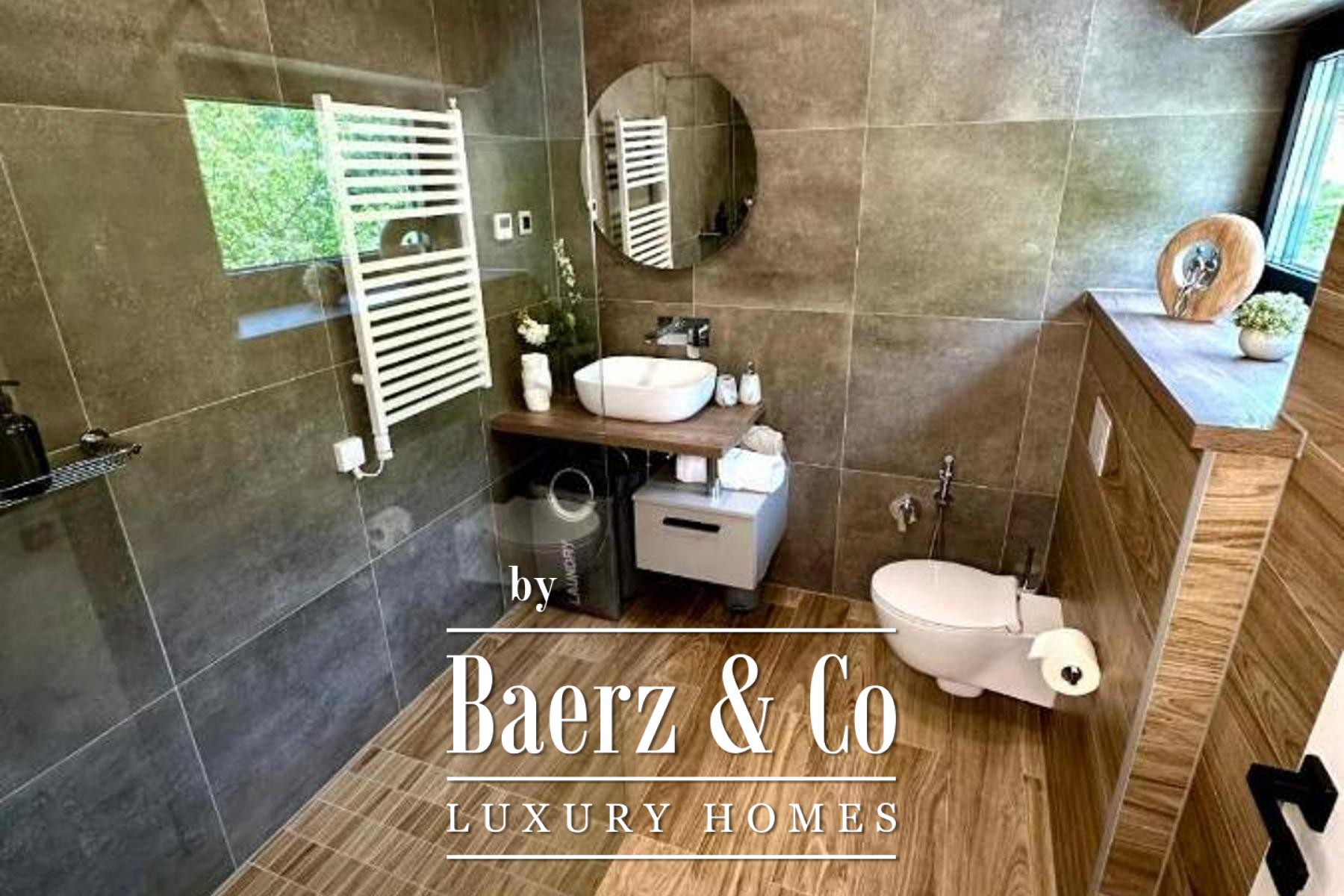Upstairs, four bedrooms each offer their own private bathroom, with two enjoying direct access to a generous balcony. Completed in 2024, this villa Mošćenička Draga presents quiet contemporary living for those seeking long-term discretion, refined quality, and the ease of proximity to the sea.