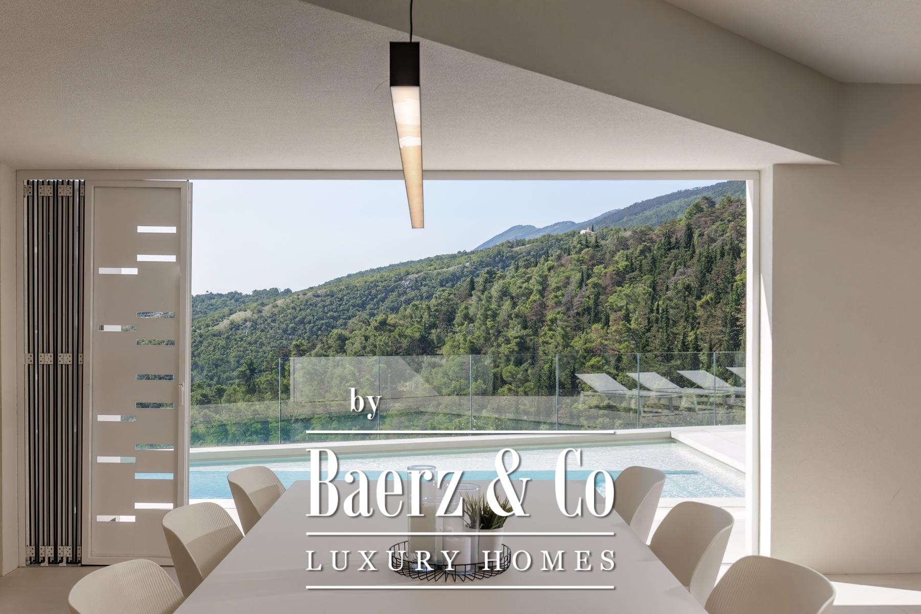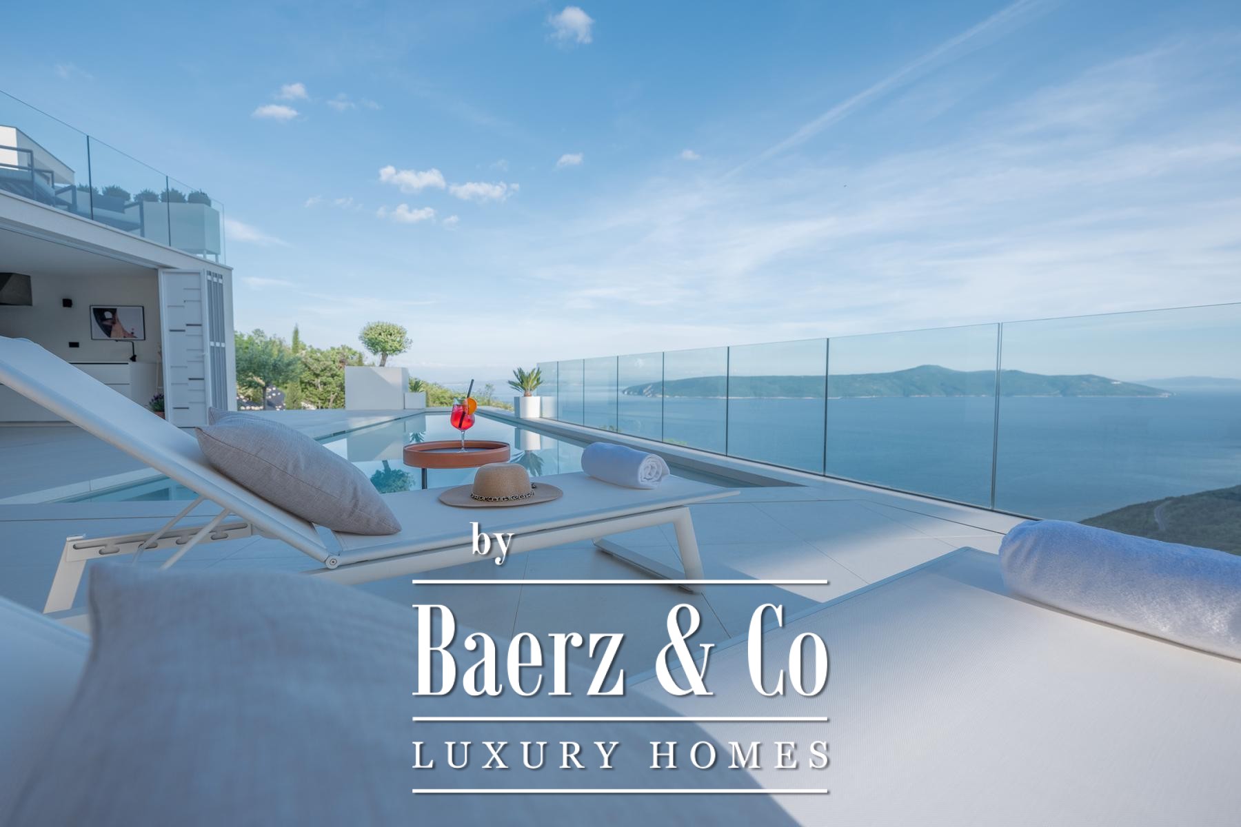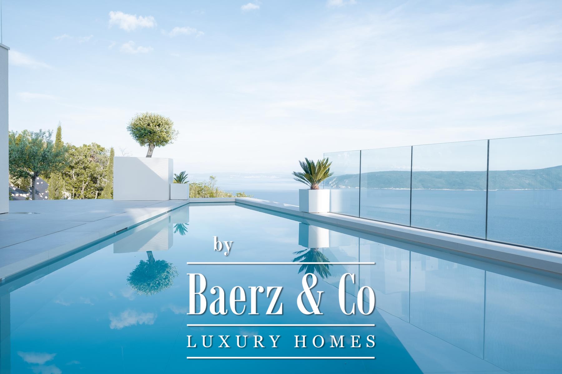 Discover a unique, newly built luxury villa in Mošćenice, above picturesque Mošćenička Draga. Completed in 2023 it offers panoramic views of the Kvarner Bay.This multi-story property, spanning 184 m2, is situated on a 917 m2 plot, perfectly blending modern design and functionality. It features four spacious rooms and four elegantly appointed bathrooms. Finished with meticulous attention to detail and premium materials, the villa includes an advanced smart home system and an elevator connecting all floors. This home is completely ready for immediate occupancy.The residence offers exceptional amenities for relaxation. Enjoy the outdoor swimming pool with sea views or the indoor swimming pool, available year-round. For ultimate wellness, a private sauna is also at your disposal.