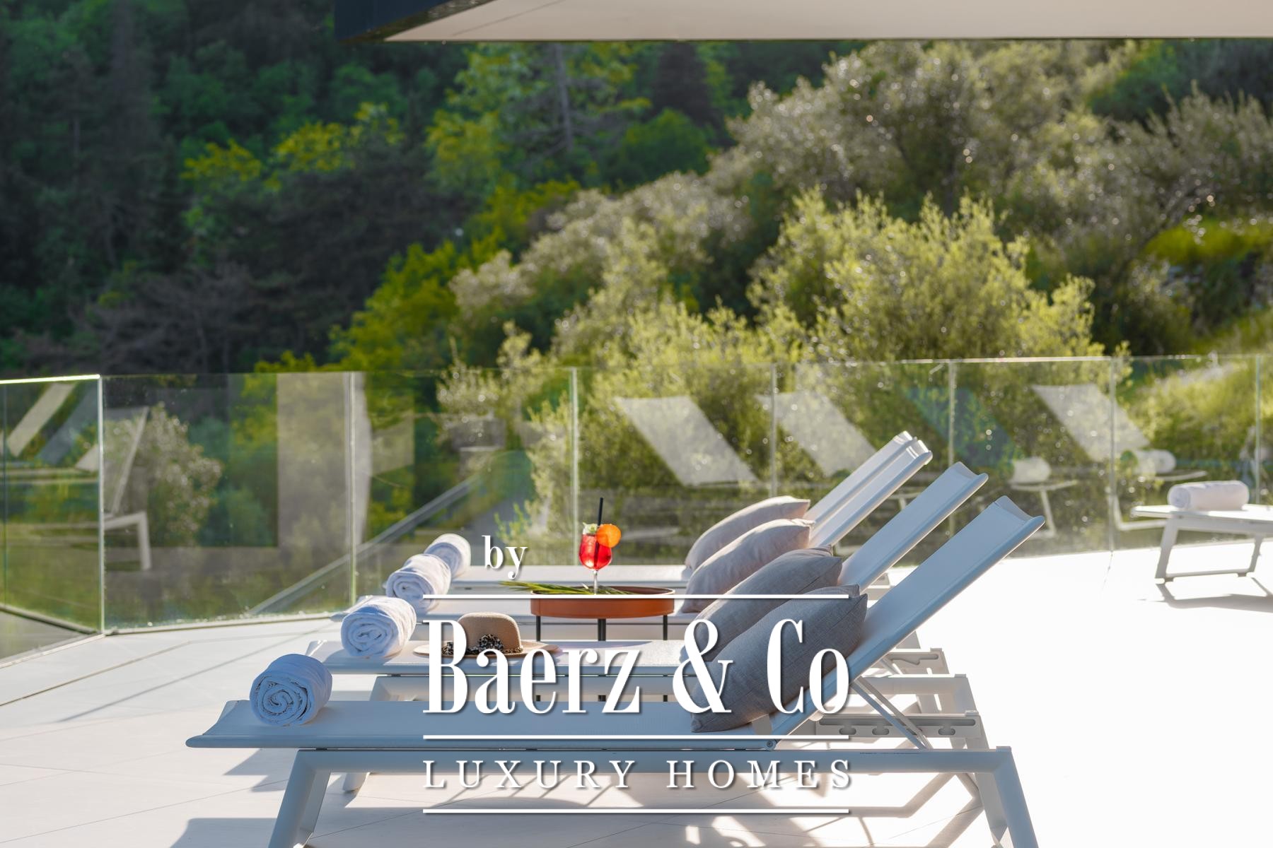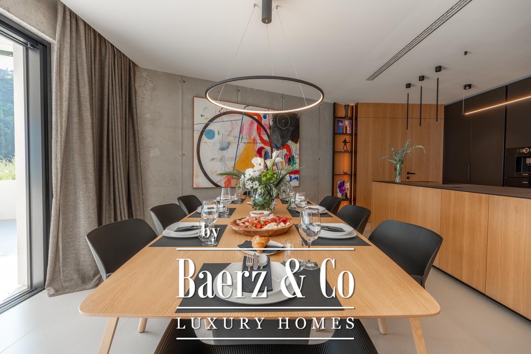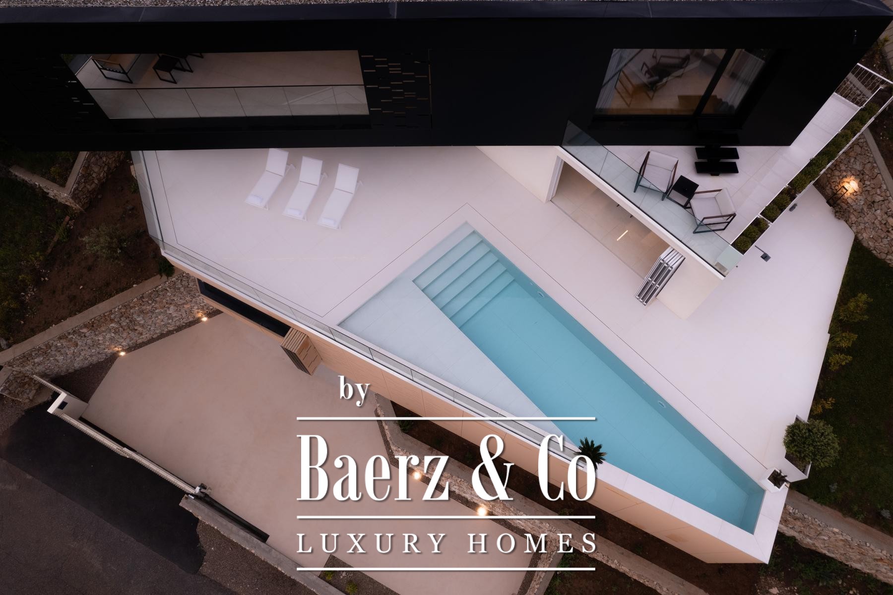Discover a unique, newly built luxury villa in Mošćenice, above picturesque Mošćenička Draga. Completed in 2023 it offers panoramic views of the Kvarner Bay.This multi-story property, spanning 184 m2, is situated on a 917 m2 plot, perfectly blending modern design and functionality. It features four spacious rooms and four elegantly appointed bathrooms. Finished with meticulous attention to detail and premium materials, the villa includes an advanced smart home system and an elevator connecting all floors. This home is completely ready for immediate occupancy.The residence offers exceptional amenities for relaxation. Enjoy the outdoor swimming pool with sea views or the indoor swimming pool, available year-round. For ultimate wellness, a private sauna is also at your disposal.